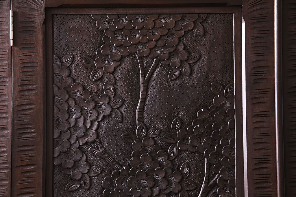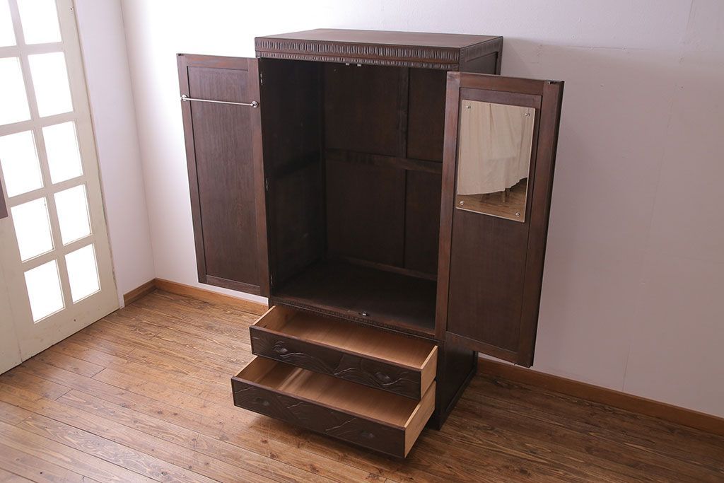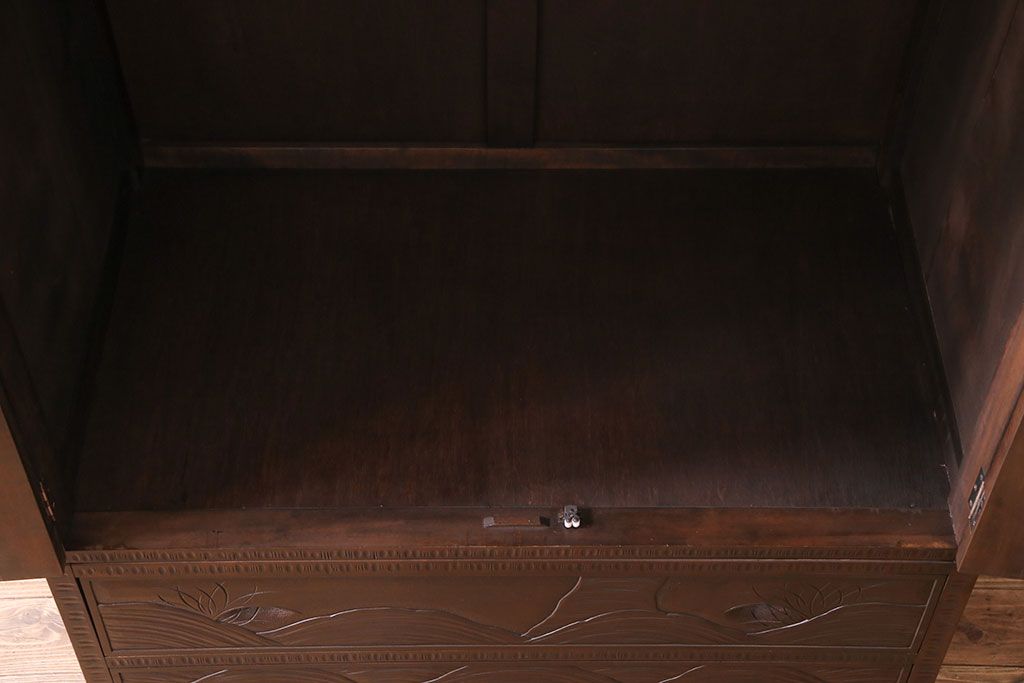 ラフジュ工房> ワードローブ・ロッカー> ワードローブ > 中古 伝統工芸 軽井沢彫り 迫力のある意匠が魅力のワードローブ(洋服タンス)