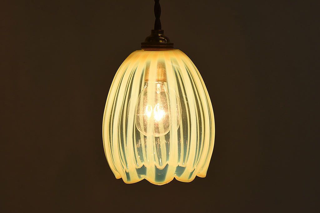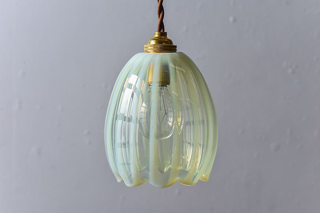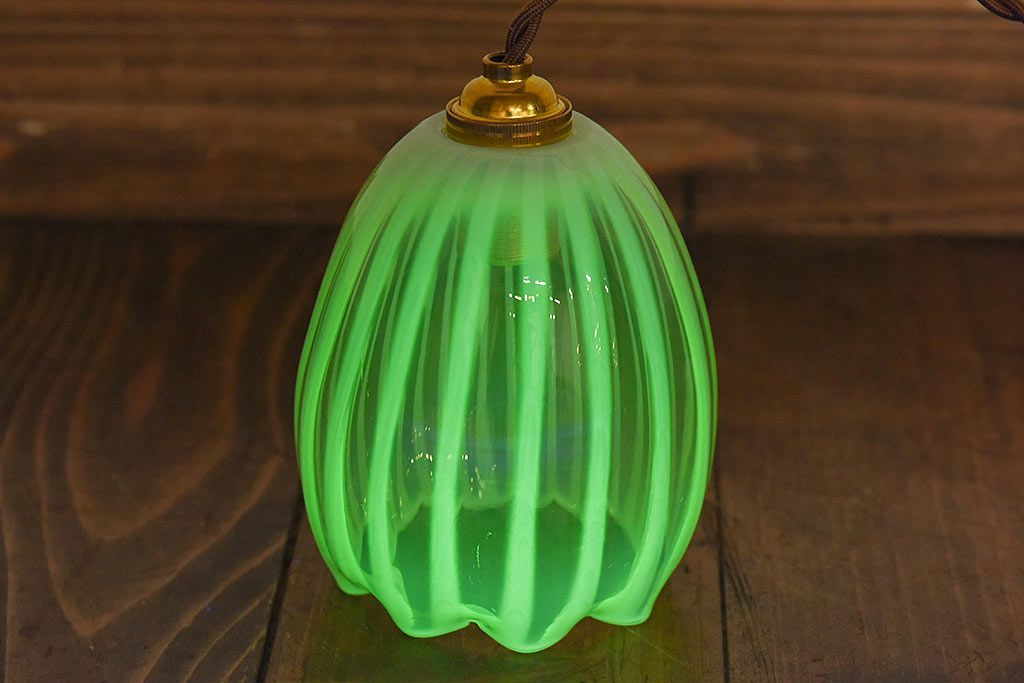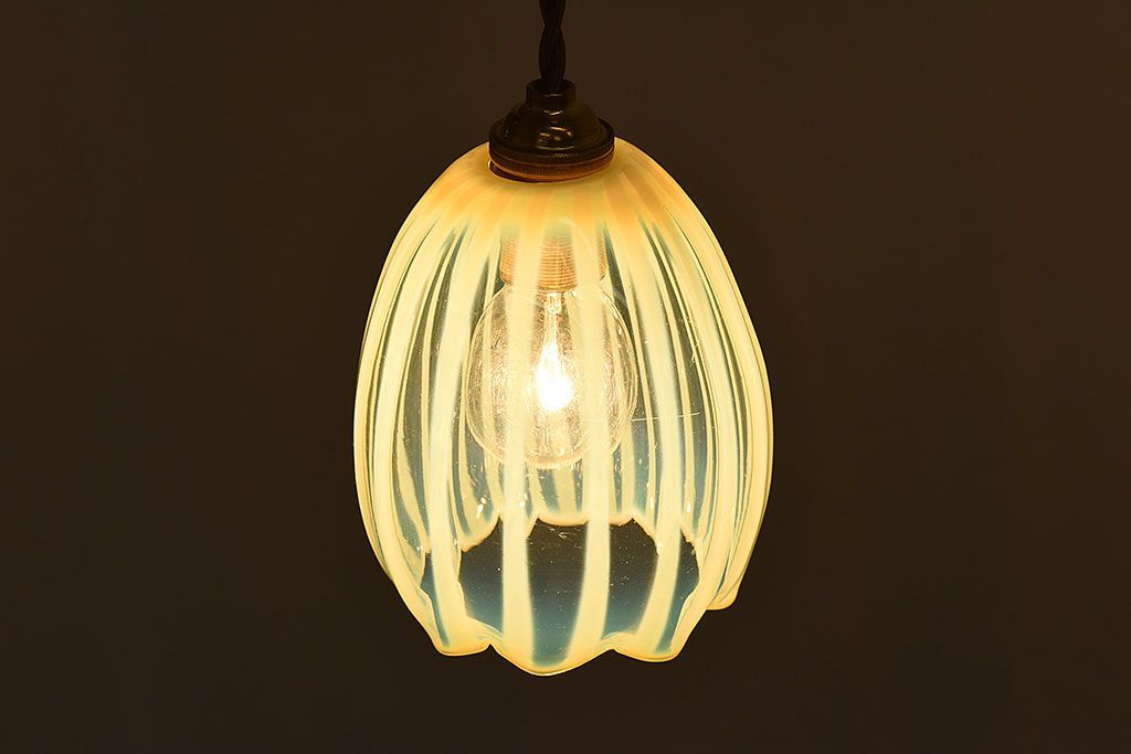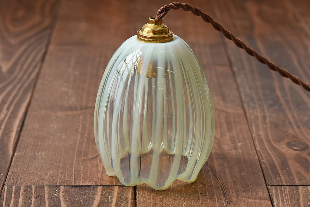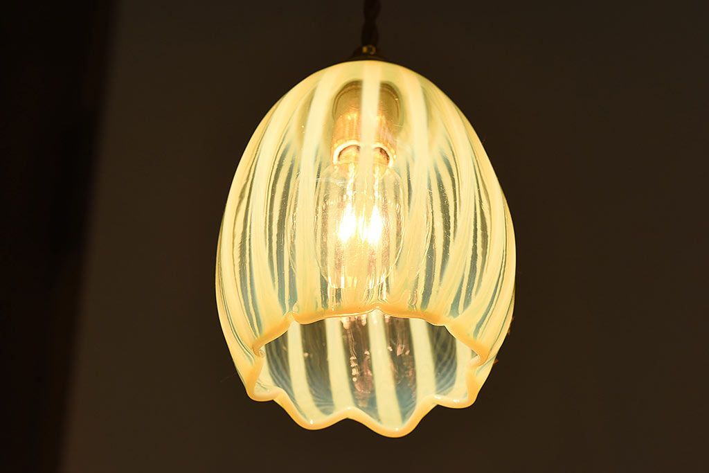 つぼみのようなデザインが可愛らしいウランガラス製シェード(電笠、天井照明)
