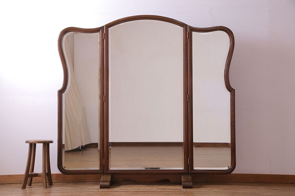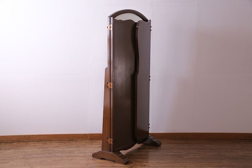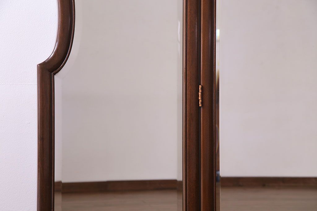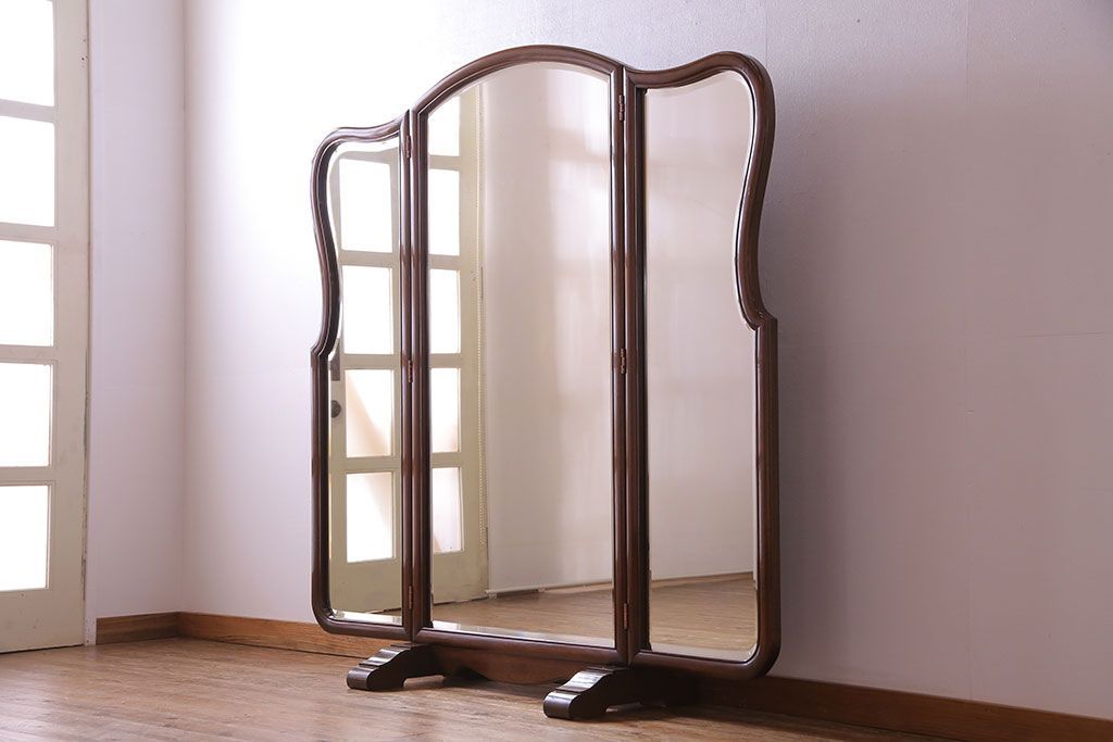 アンティーク雑貨 イギリスアンティーク デザイン性の高いユニークな大型三面ミラー(姿見、鏡)