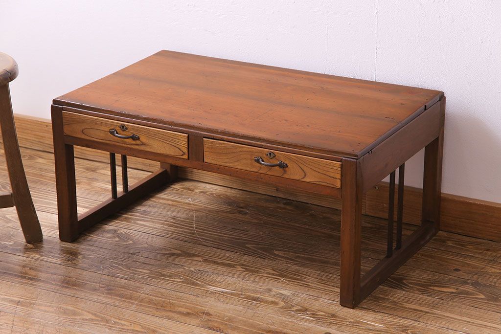 和製アンティーク 2色づかいが愛らしい小振りの文机(センターテーブル)です。