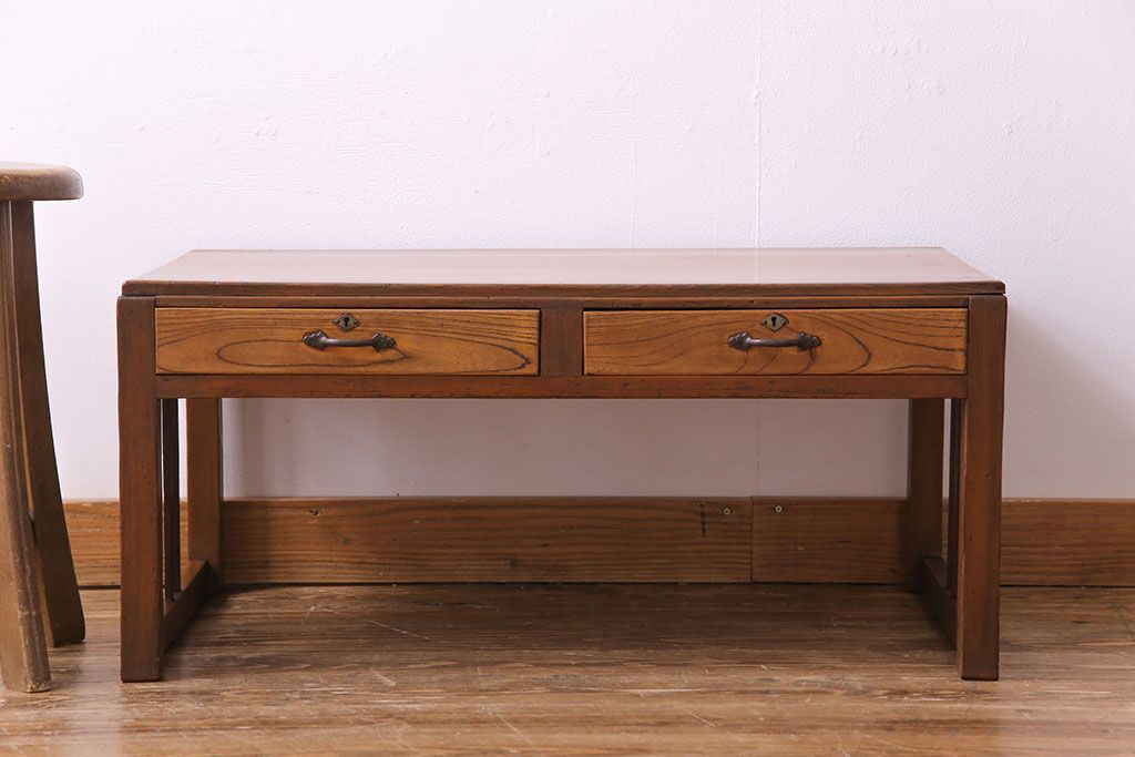 【S様ご成約分】和製アンティーク 2色づかいが愛らしい小振りの文机(センターテーブル)