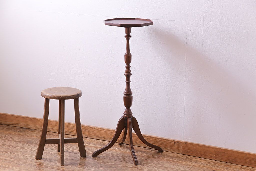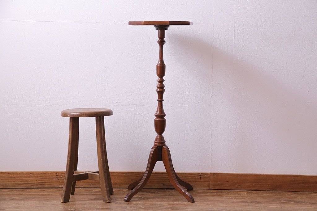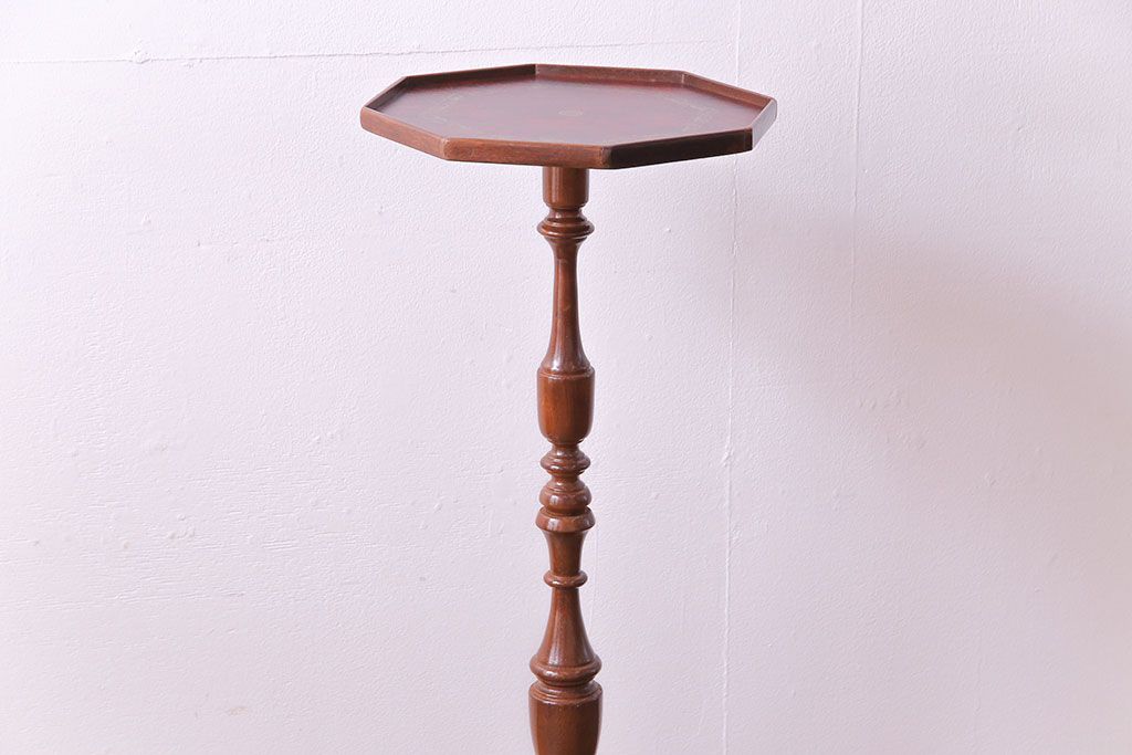 ラフジュ工房> 花台・飾り台 > アンティーク雑貨 イギリスビンテージ レザートップが魅力の上品なワインテーブル(サイドテーブル、花台)