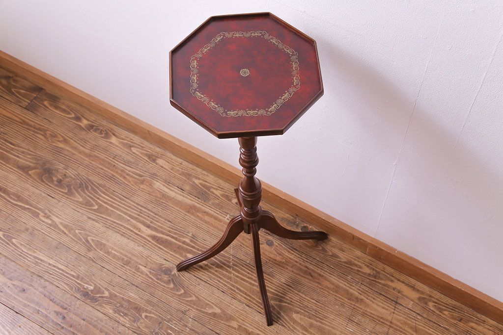 アンティーク雑貨 イギリスビンテージ レザートップが魅力の上品なワインテーブル(サイドテーブル、花台)