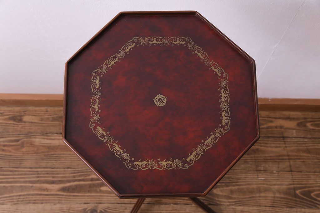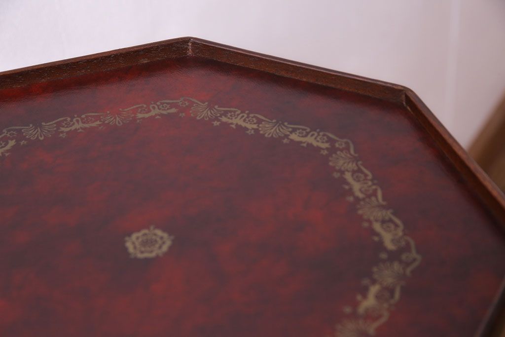 ラフジュ工房> テーブル> サイドテーブル > アンティーク雑貨 イギリスビンテージ レザートップが魅力の上品なワインテーブル(サイドテーブル、花台)