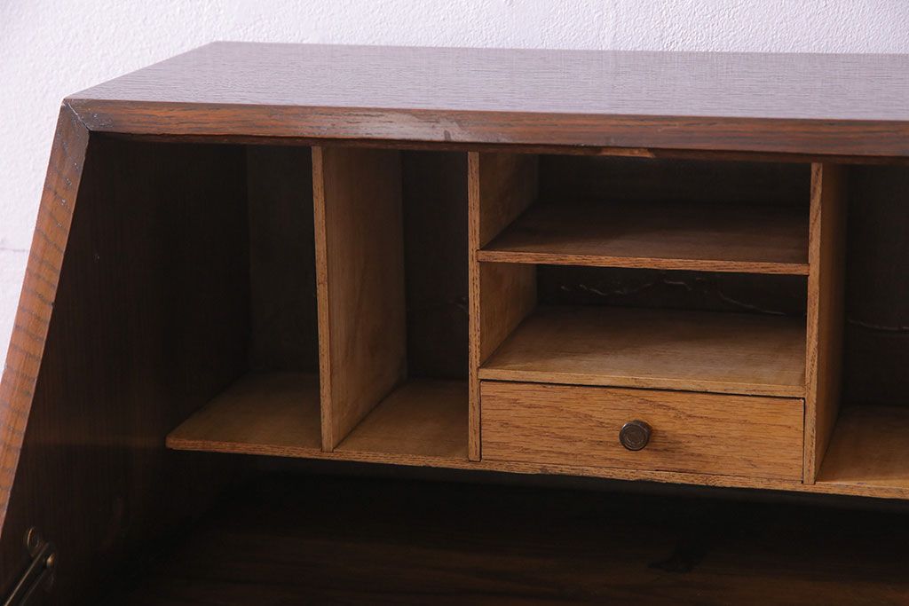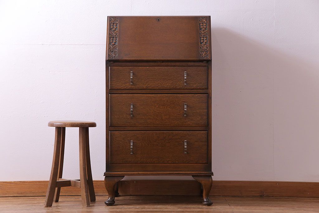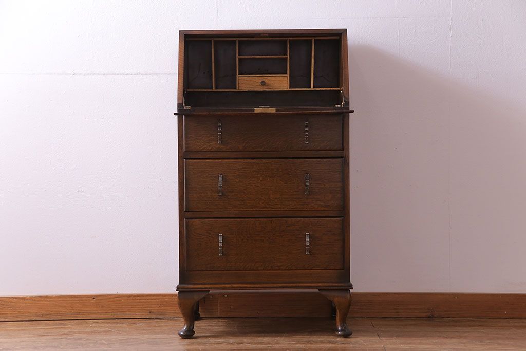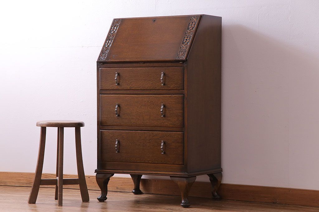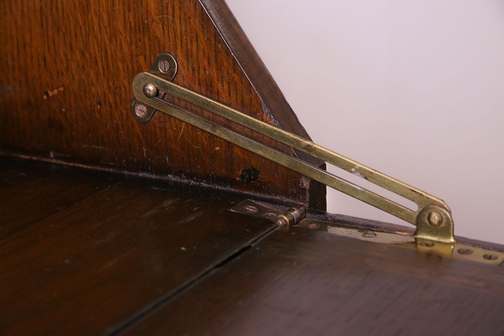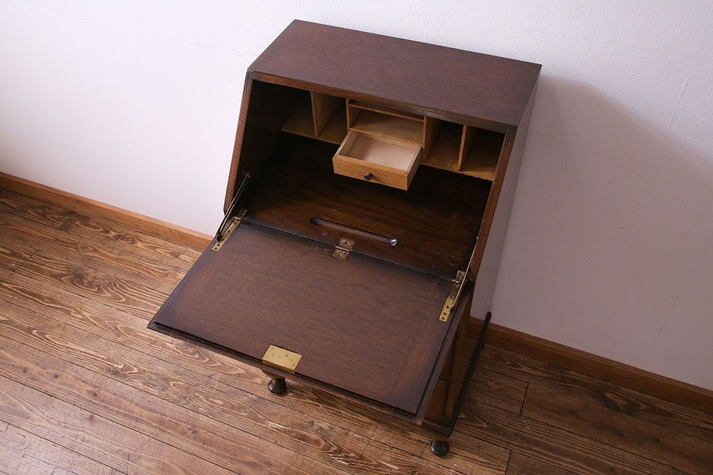 アンティーク家具 イギリスアンティーク オーク材 小振りのサイズがうれしいライティングビューロー(デスク、ワークデスク、サイドチェスト)