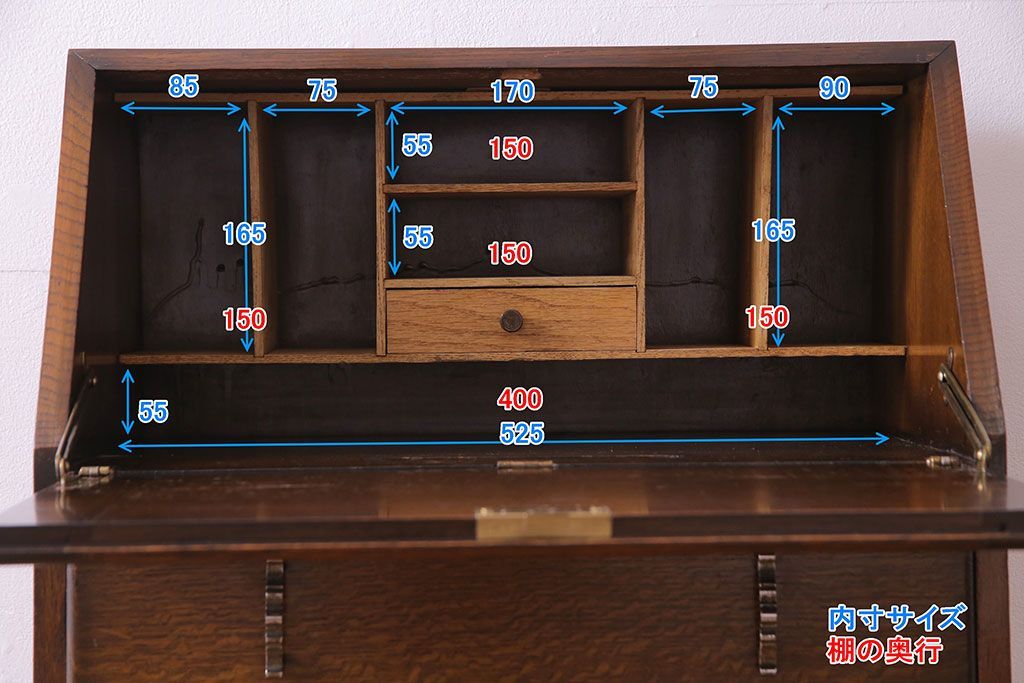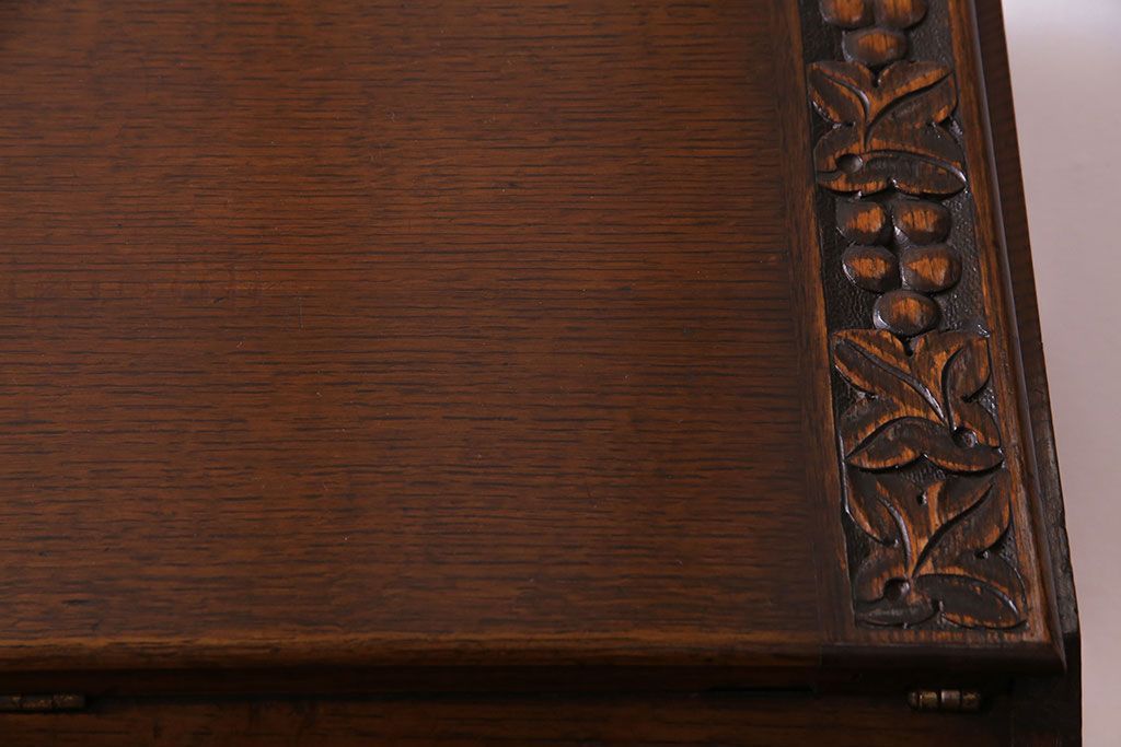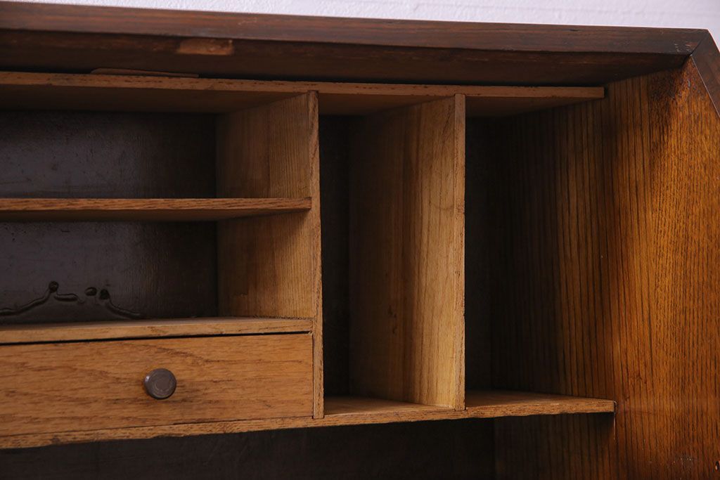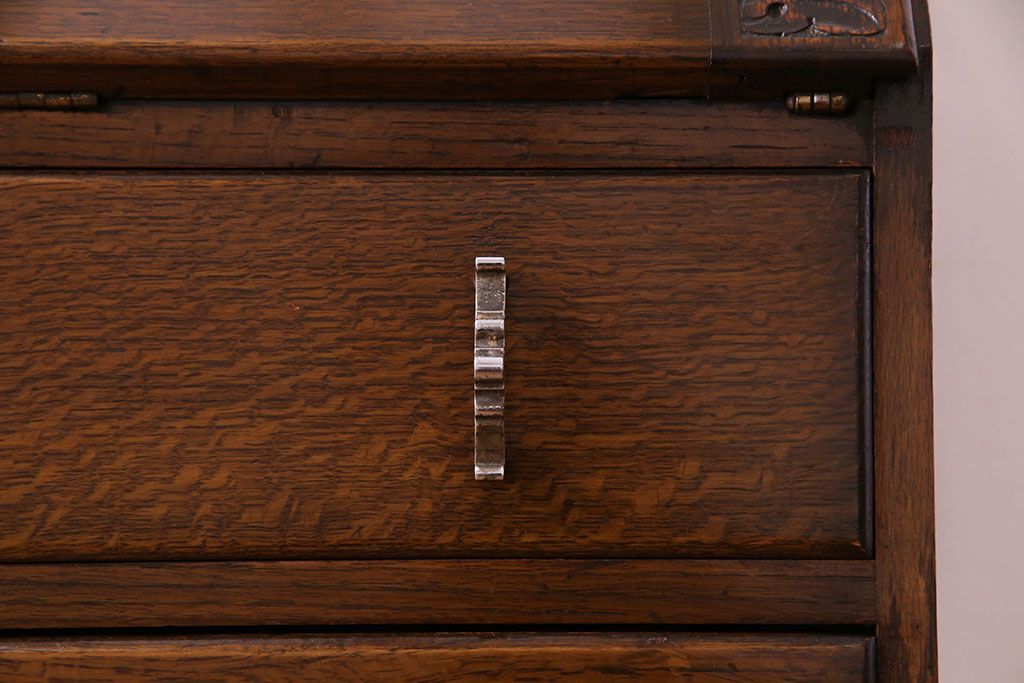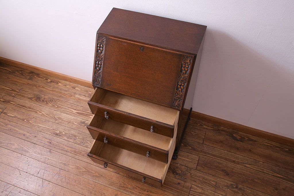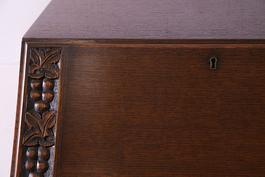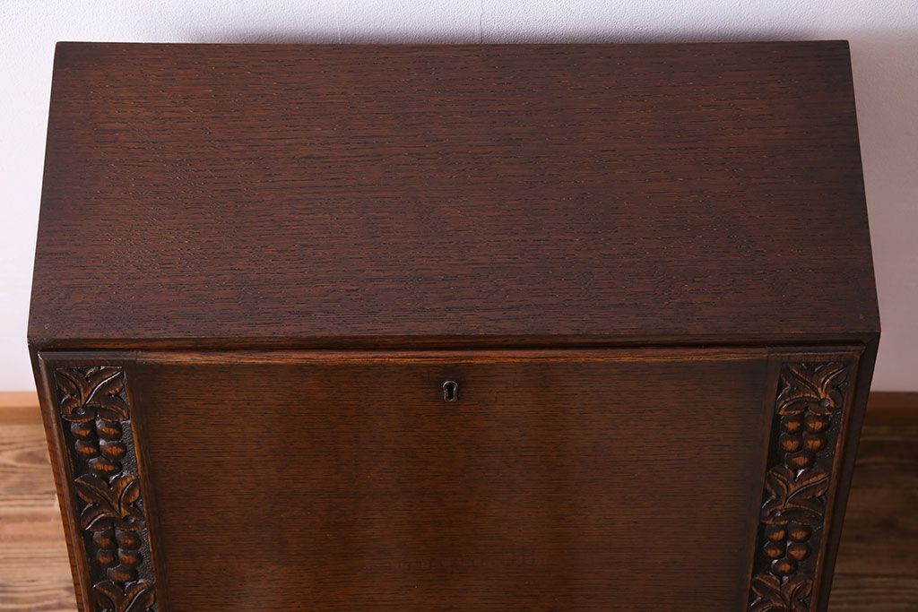 アンティーク家具 イギリスアンティーク オーク材 小振りのサイズがうれしいライティングビューロー(デスク、ワークデスク、サイドチェスト)