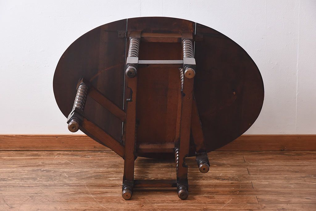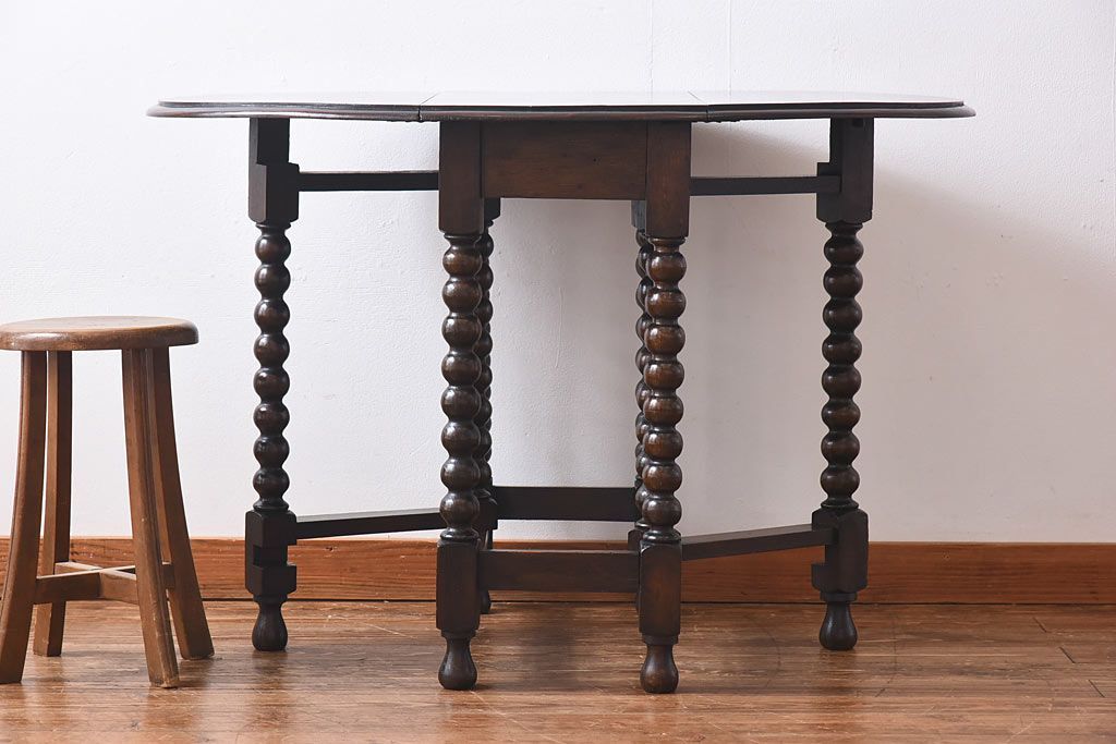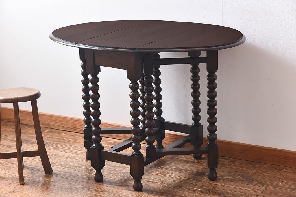 アンティーク家具 イギリスアンティーク 脚のデザインが目を引くバタフライテーブル(ダイニングテーブル、エクステンションテーブル)
