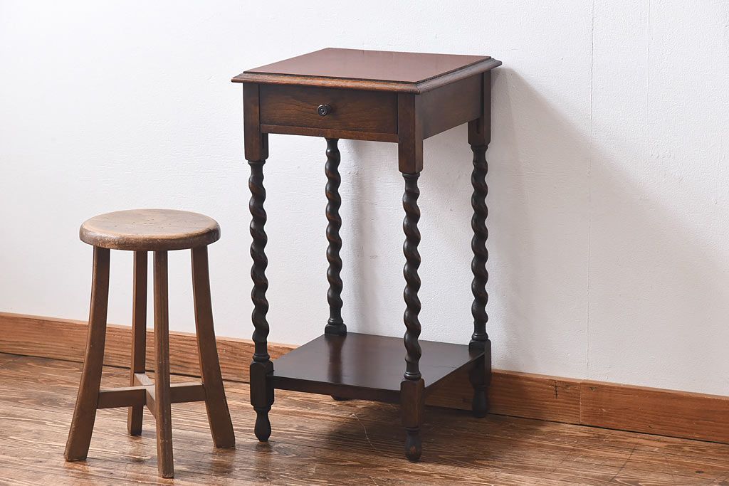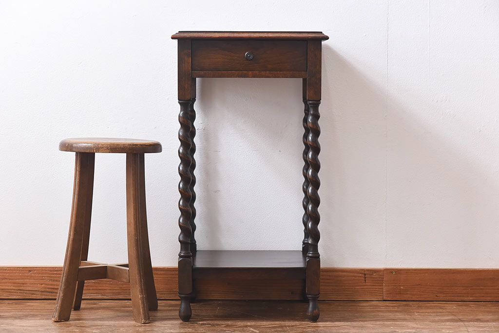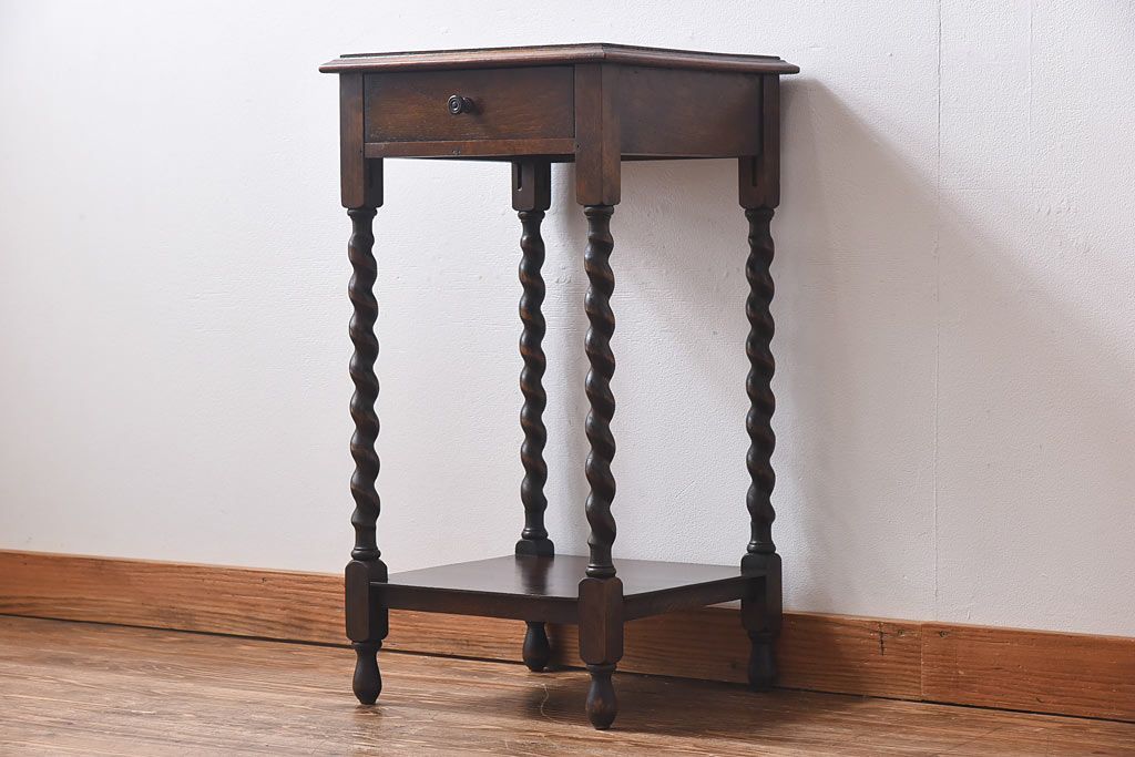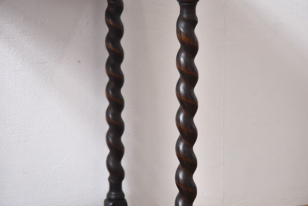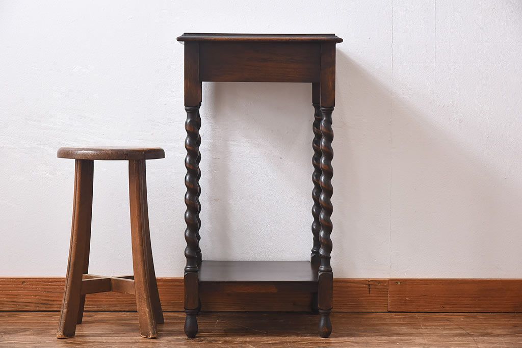 ラフジュ工房> 花台・飾り台 > アンティーク雑貨 イギリスアンティーク ツイストレッグが上品なオーク材のサイドテーブル(花台)