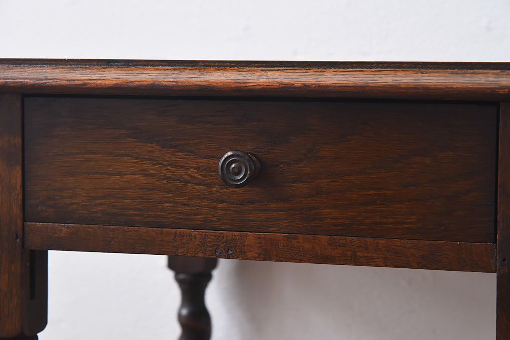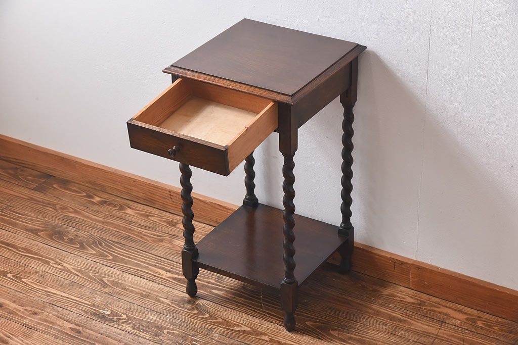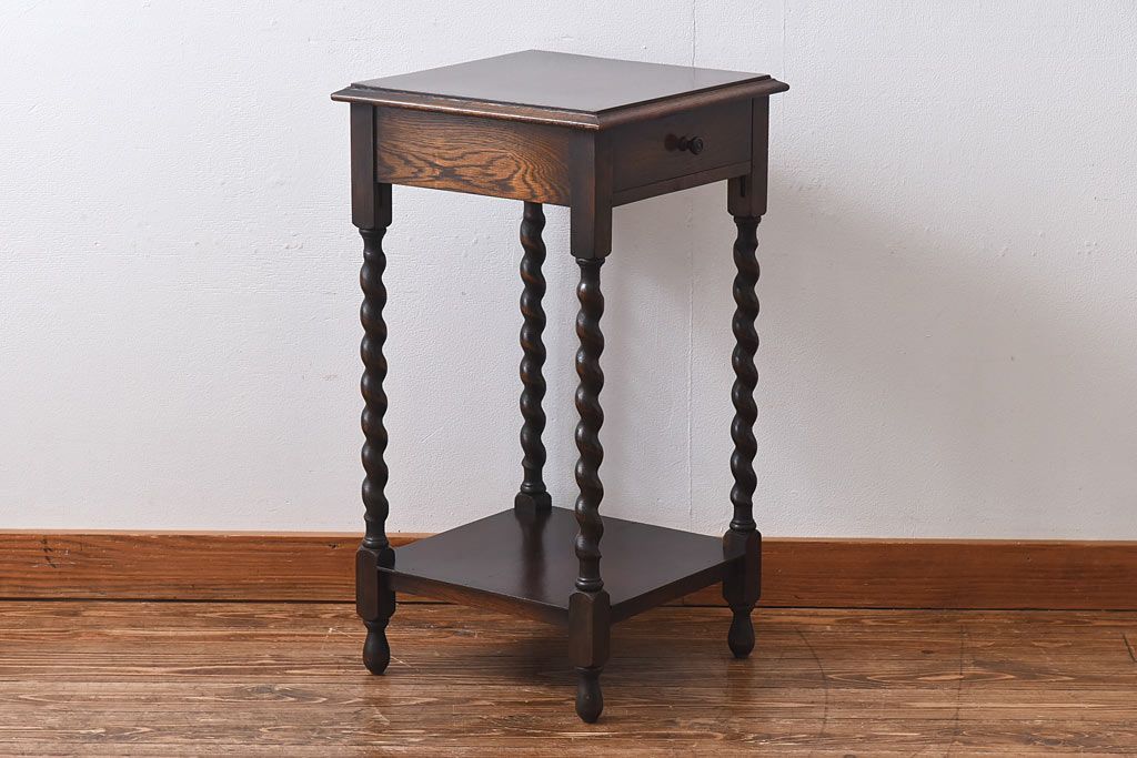 アンティーク雑貨 イギリスアンティーク ツイストレッグが上品なオーク材のサイドテーブル(花台)