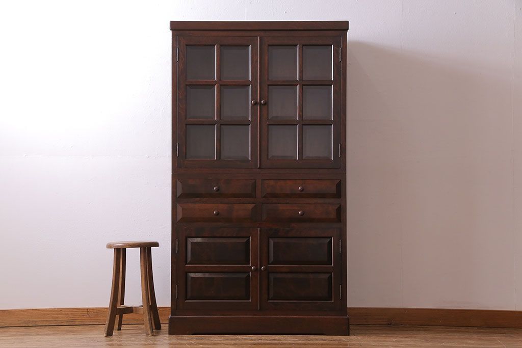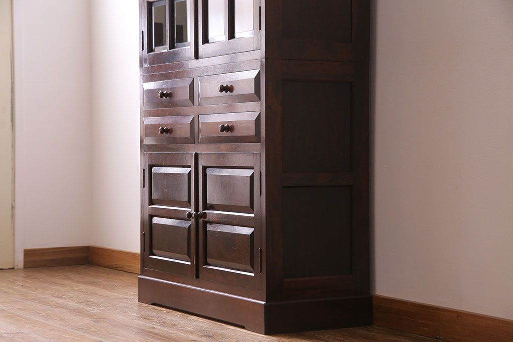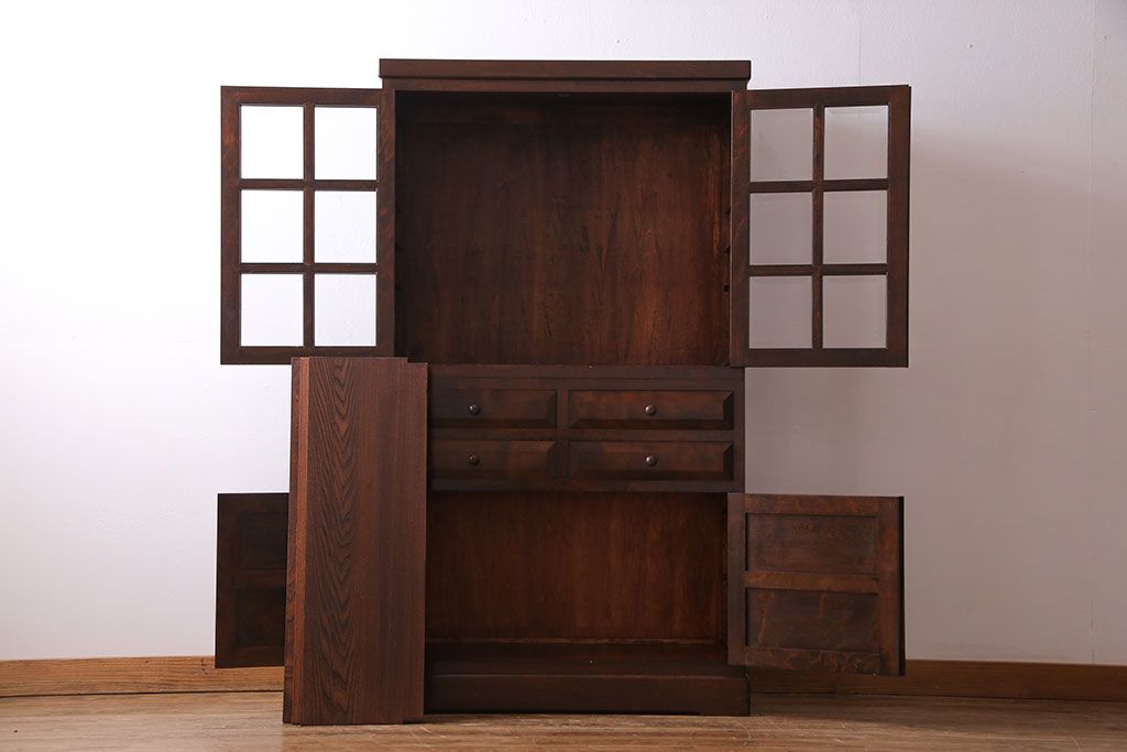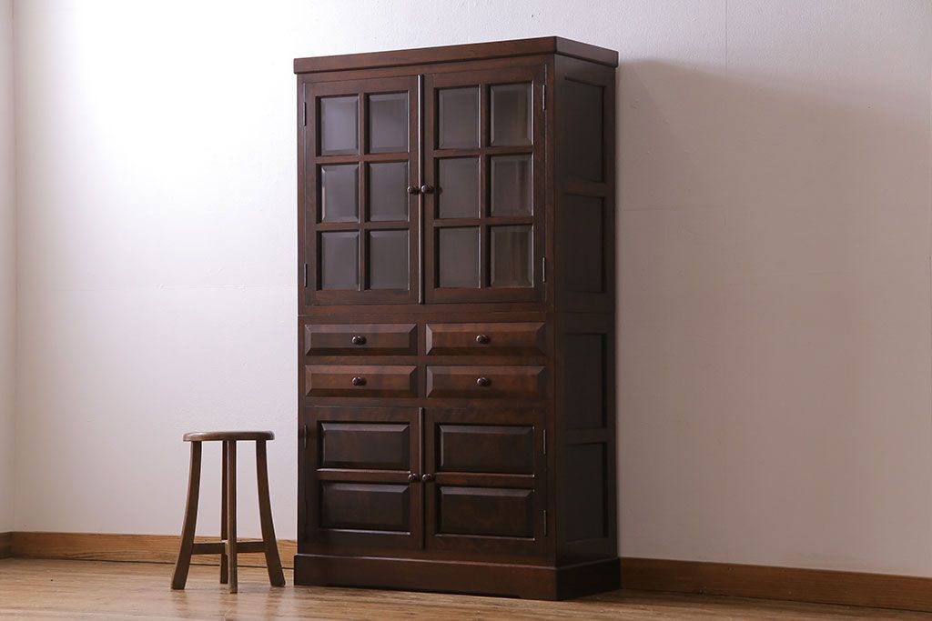ラフジュ工房> キャビネット・戸棚> 食器棚・カップボード > 中古 松本民芸家具 G-1型 面取りカップボード(食器棚、本棚)(定価約41万4千円)