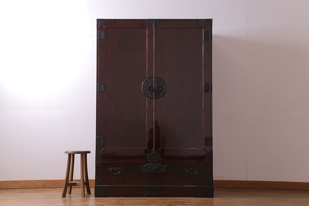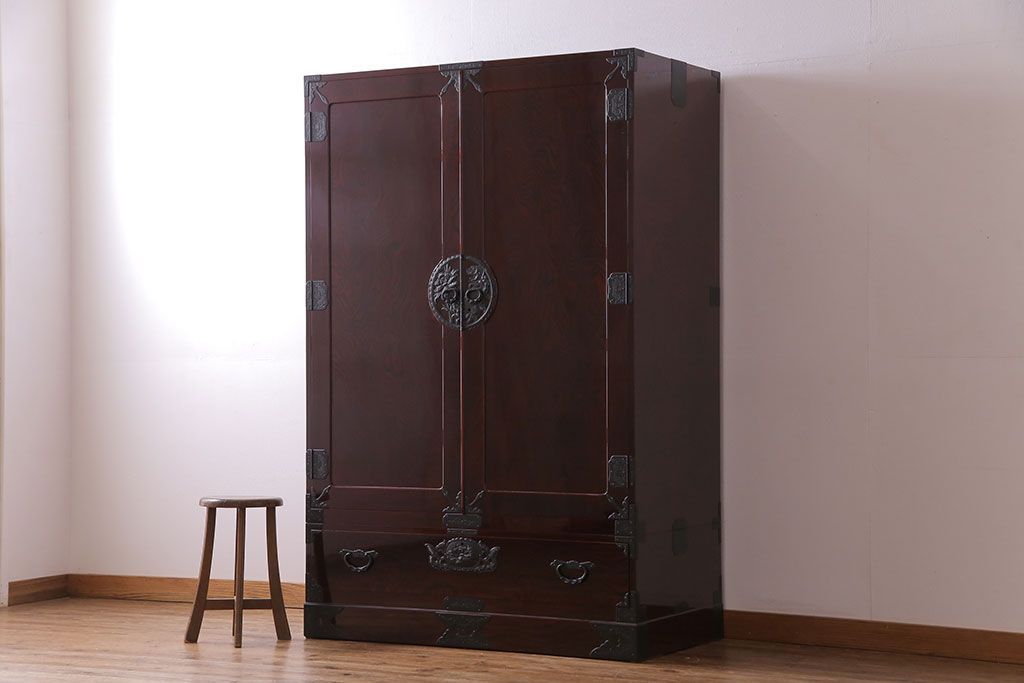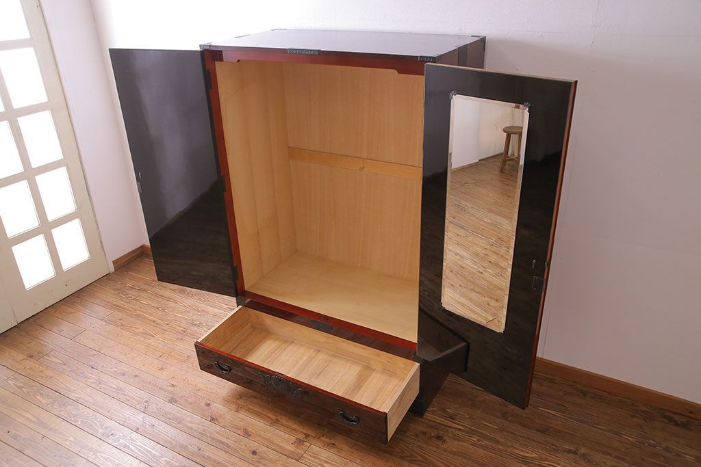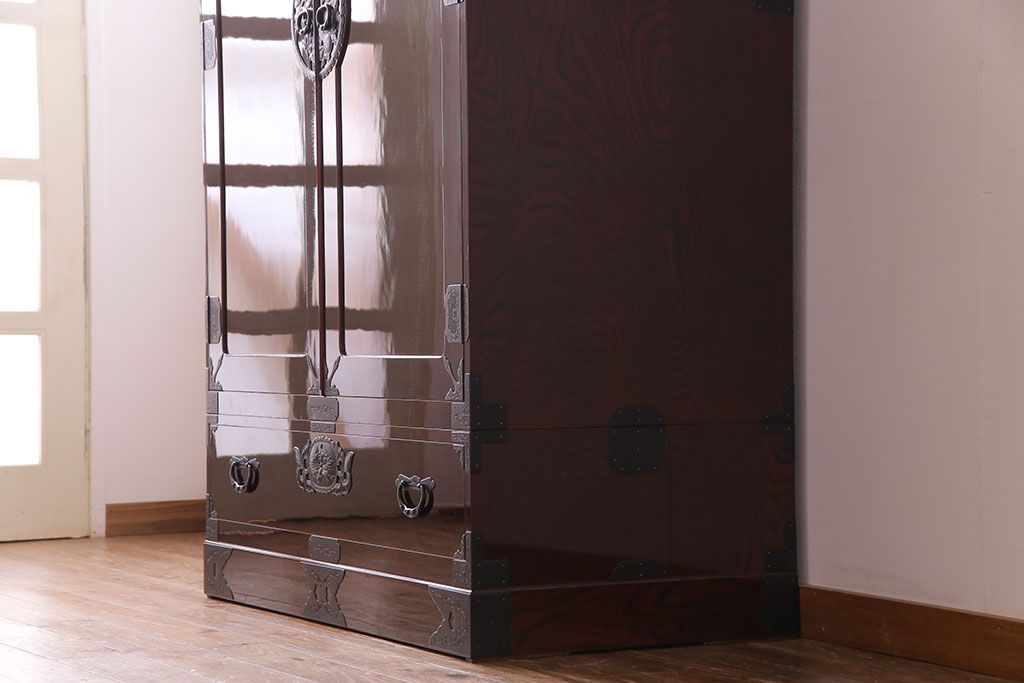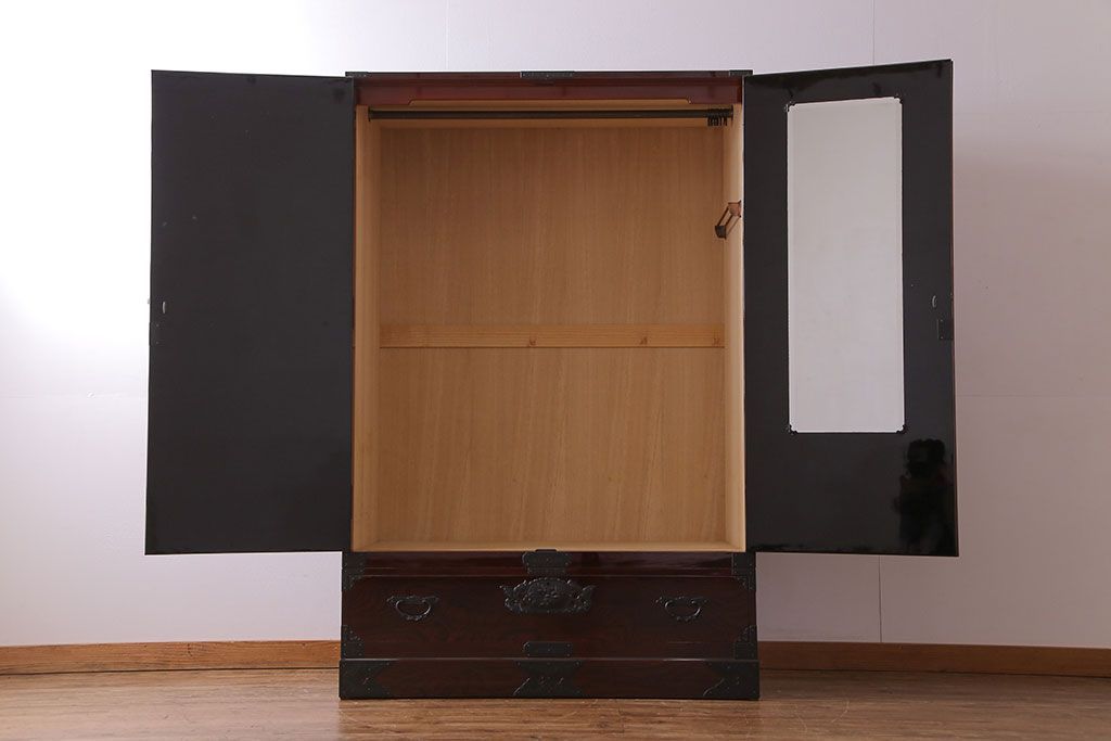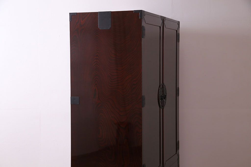 仙台箪笥 渡辺家具店 鏡のような木地呂塗りの上品なワードローブ(洋服ダンス、キャビネット)(定価110万)