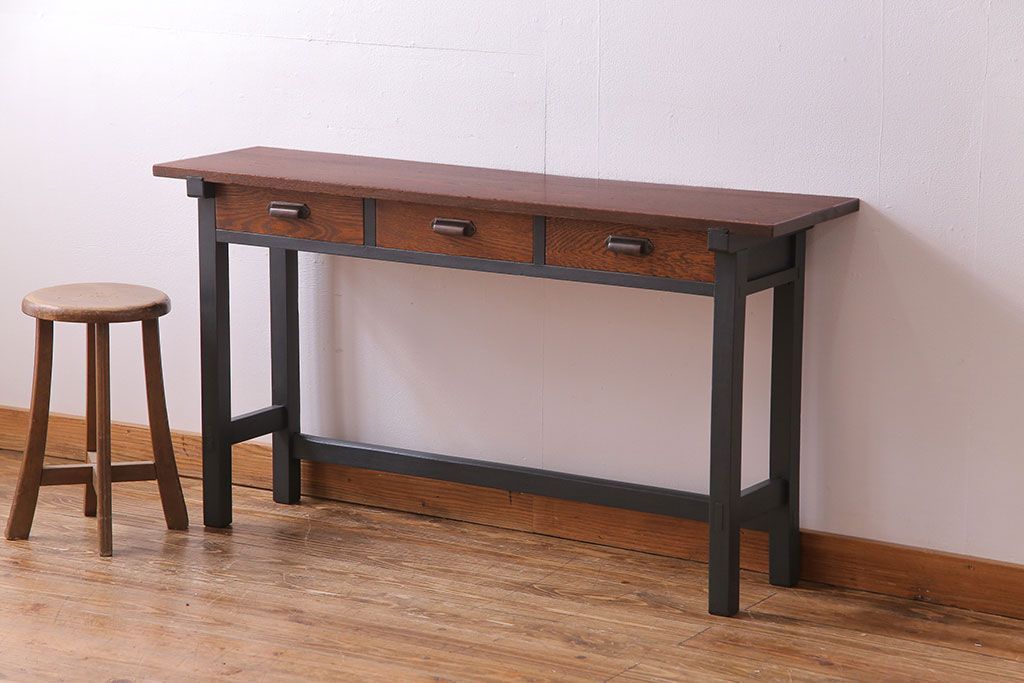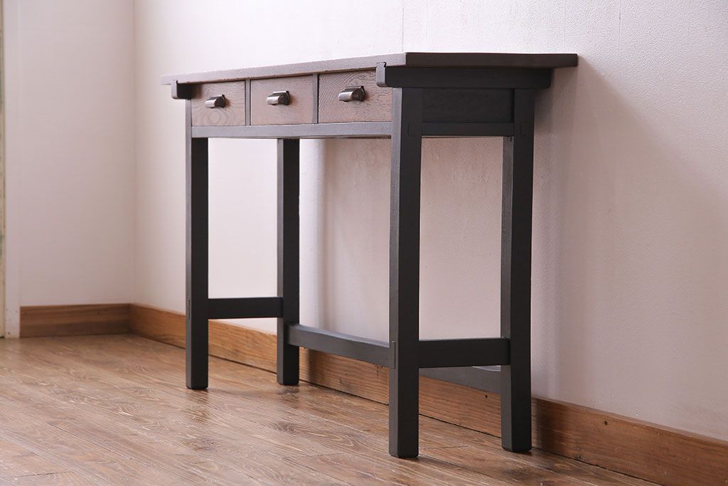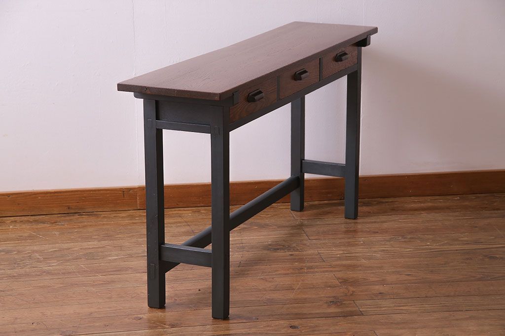 昭和レトロ ナラ材・ブナ材 味わいのある木味が魅力の薄型の平机(コンソールテーブル、サイドテーブル)(3)です。