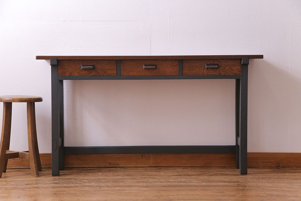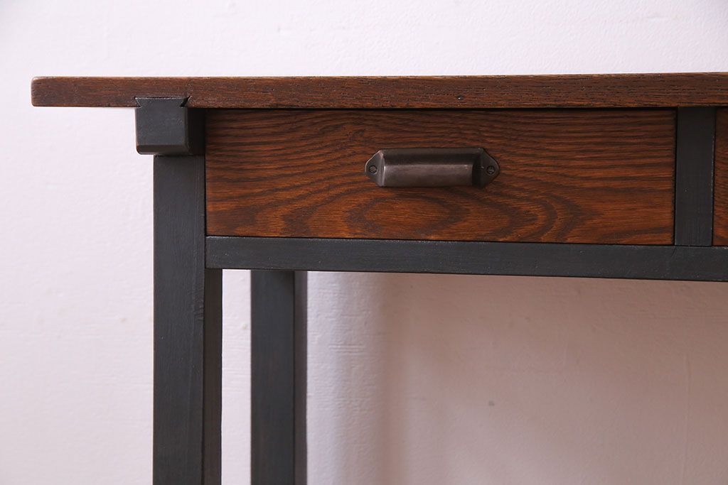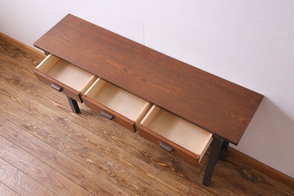 デスク> 平机 > レトロ家具 昭和レトロ ナラ材・ブナ材 味わいのある木味が魅力の薄型の平机(コンソールテーブル、サイドテーブル)(3)