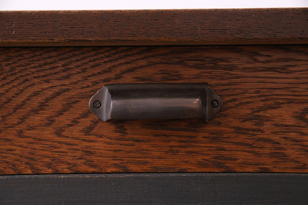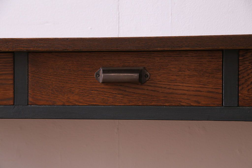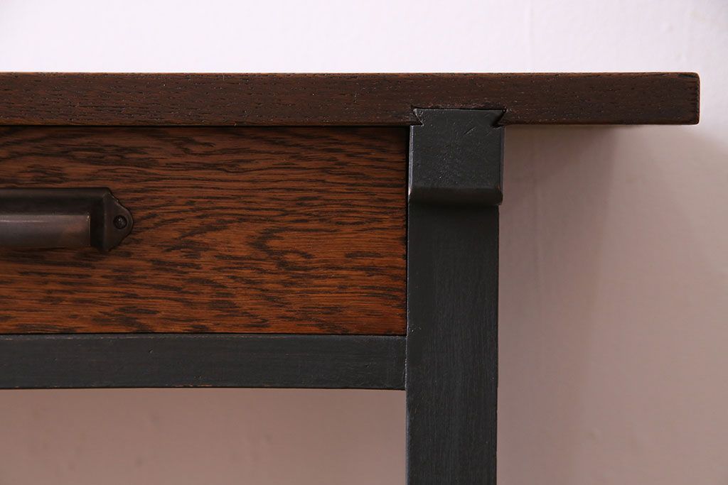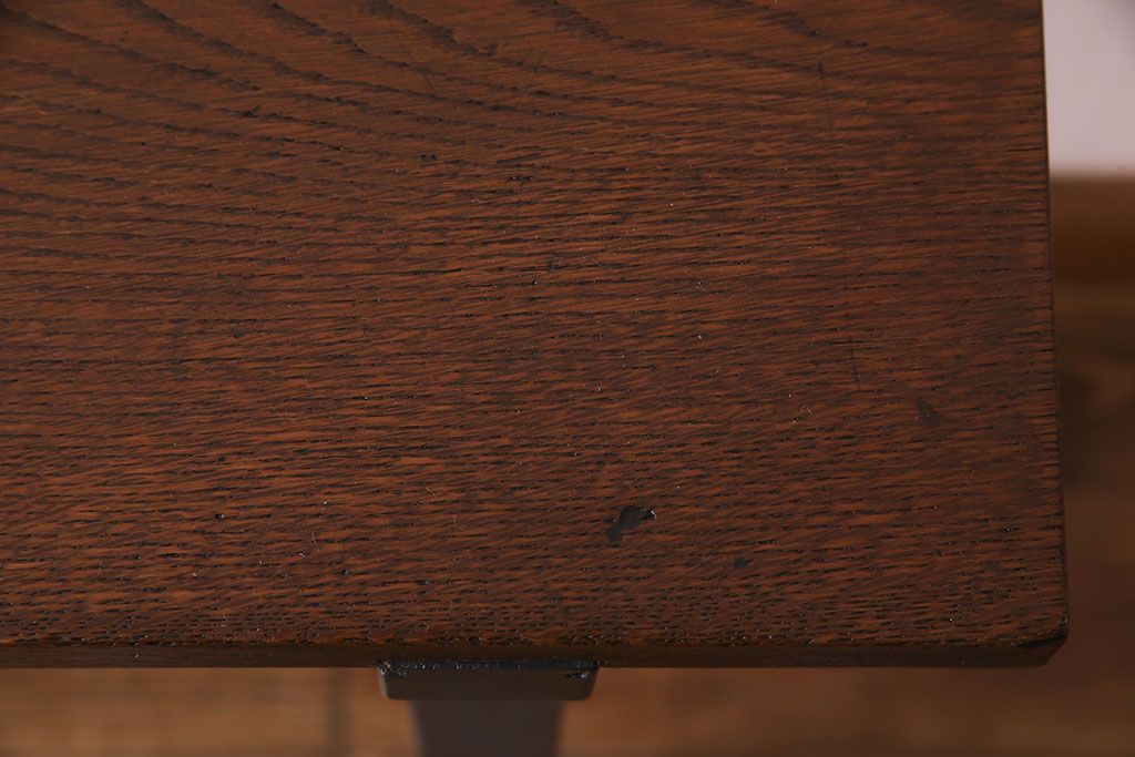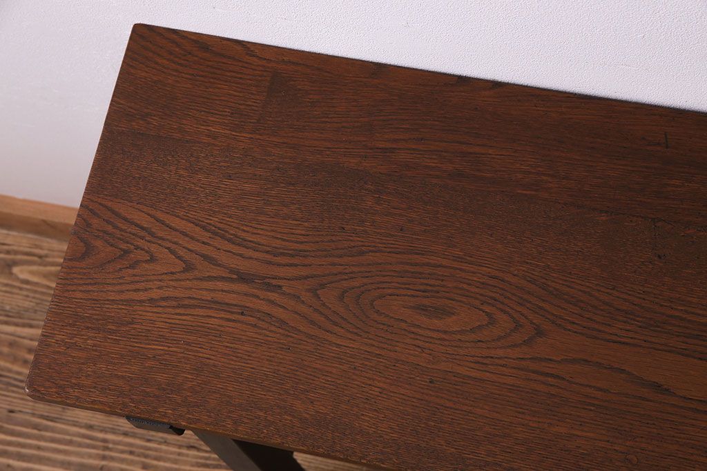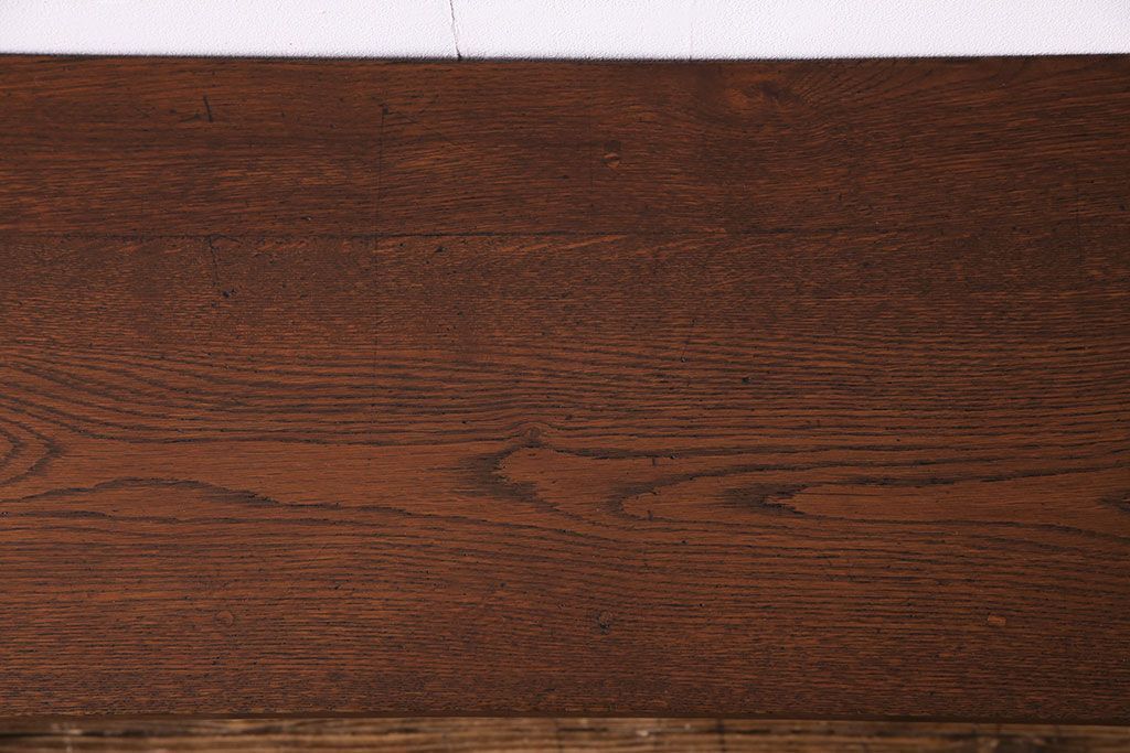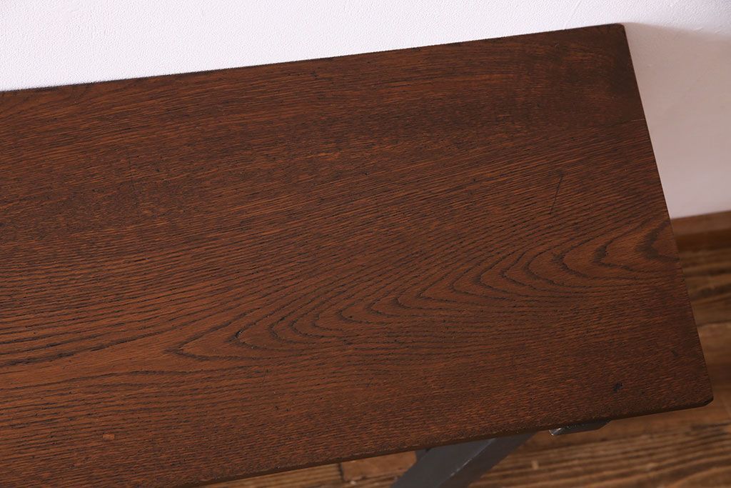 テーブル> カウンターテーブル > レトロ家具 昭和レトロ ナラ材・ブナ材 味わいのある木味が魅力の薄型の平机(コンソールテーブル、サイドテーブル)(3)