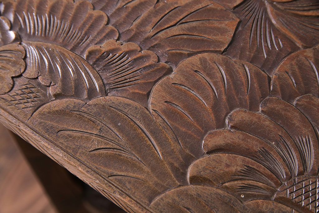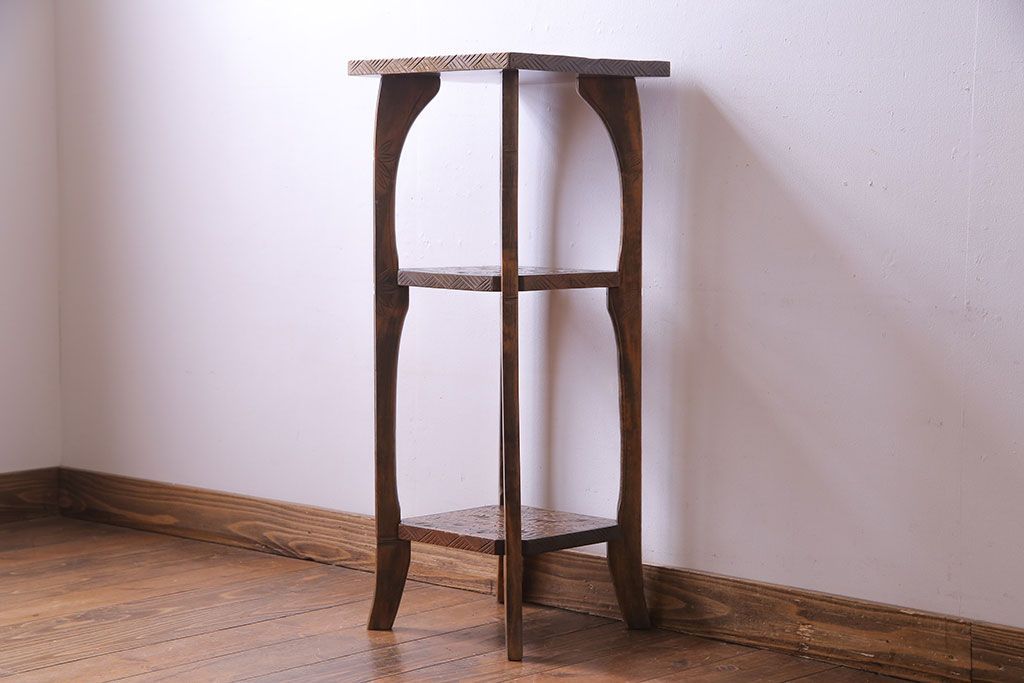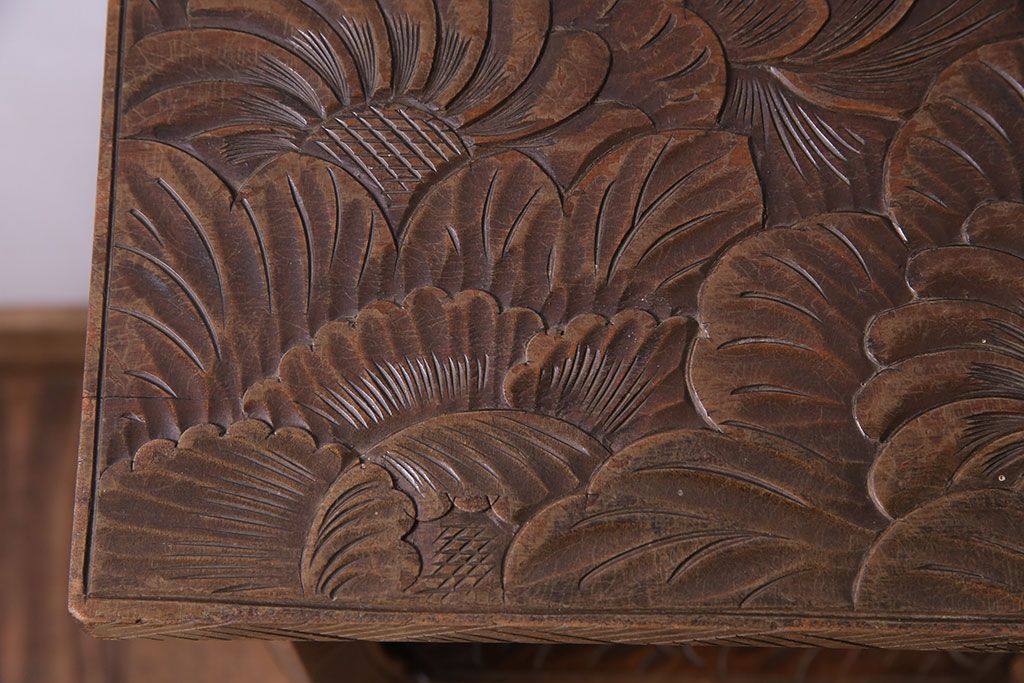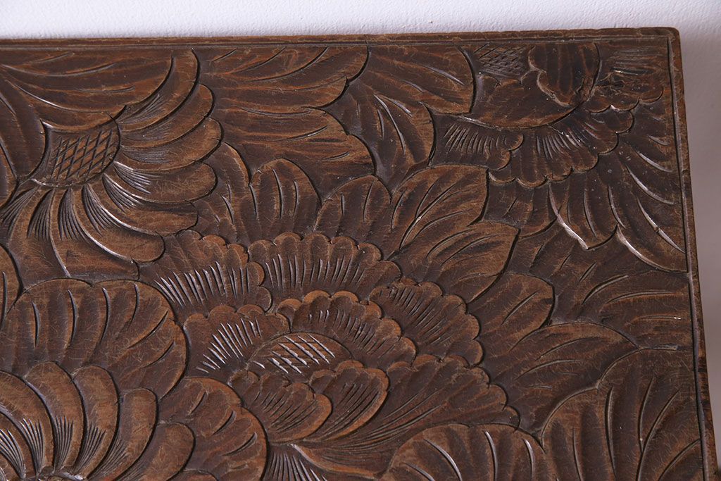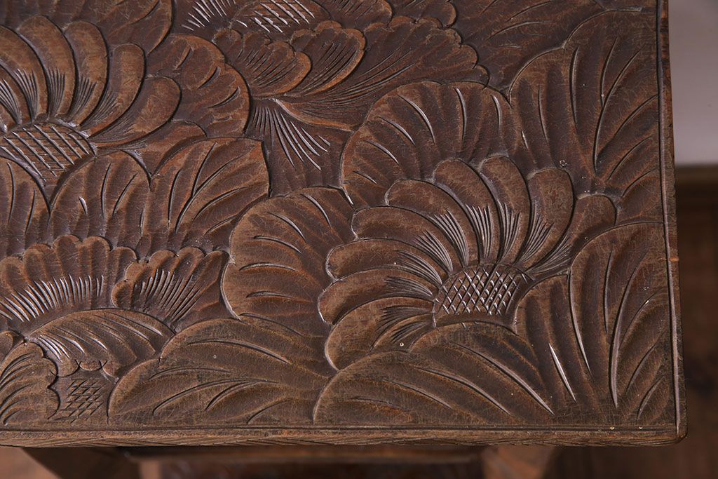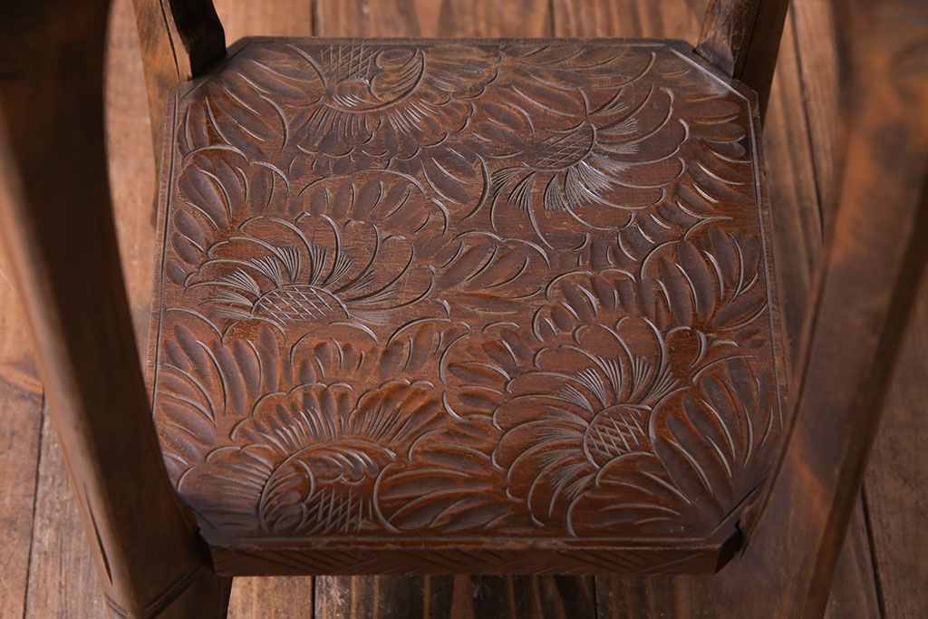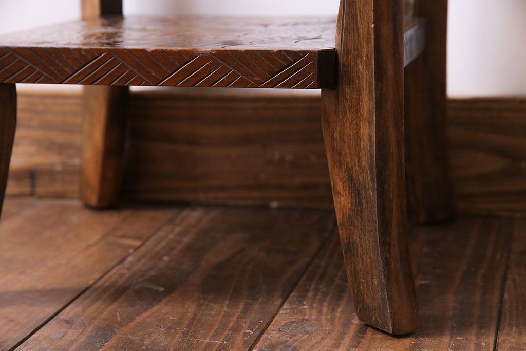 アンティーク雑貨 中古 伝統工芸 日光彫り 大胆な花の彫りが魅力的な飾り棚(花台)