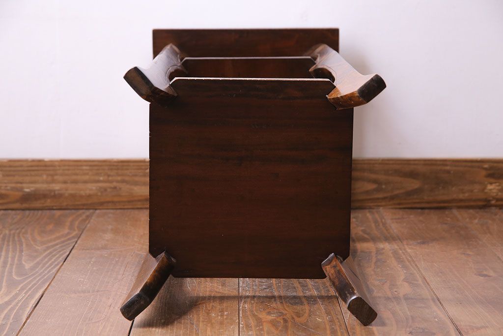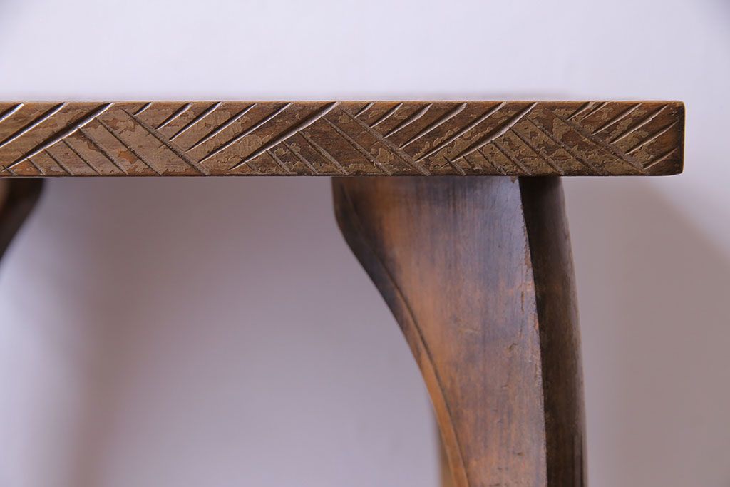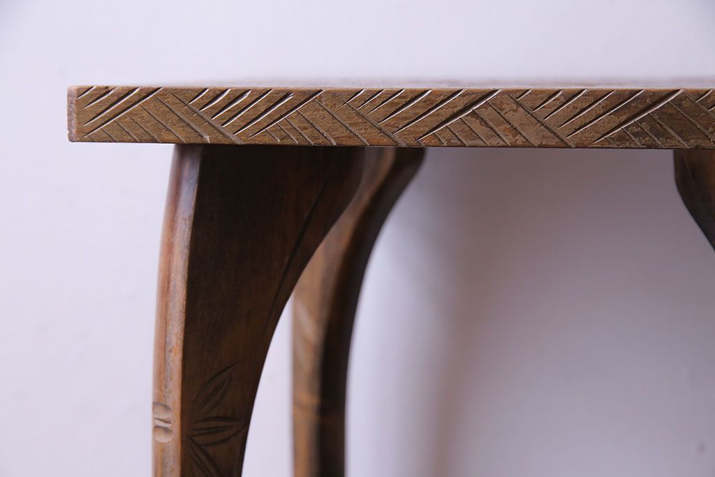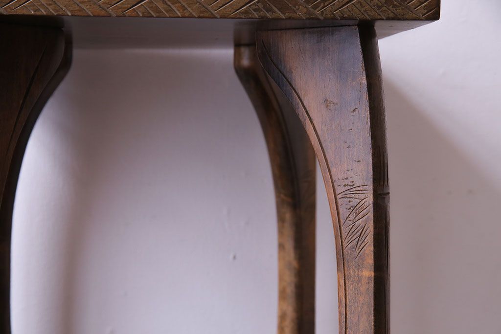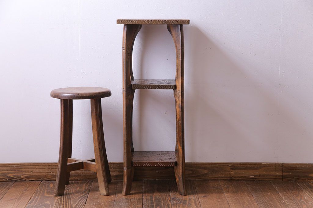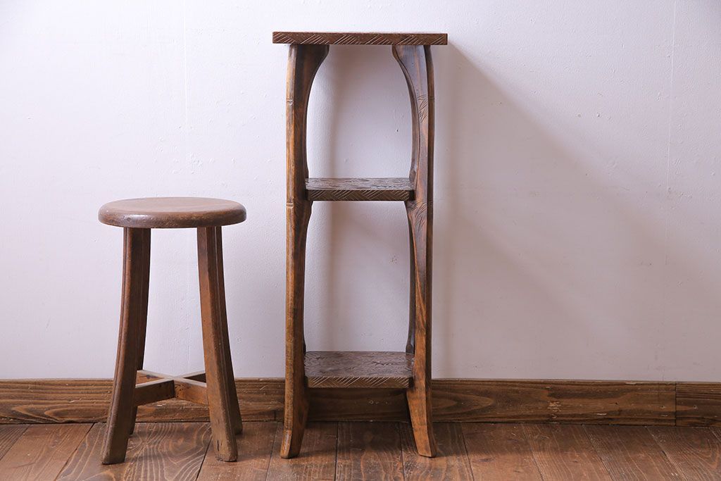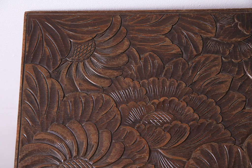 アンティーク雑貨 中古 伝統工芸 日光彫り 大胆な花の彫りが魅力的な飾り棚(花台)