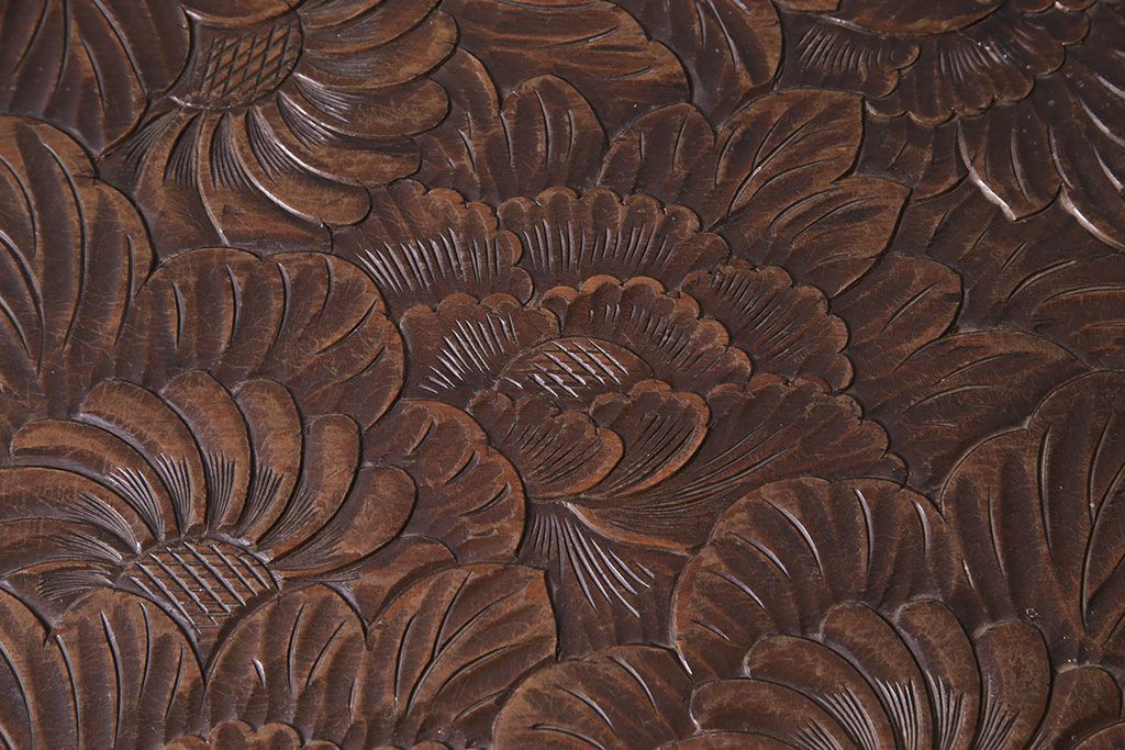 中古 伝統工芸 日光彫り 大胆な花の彫りが魅力的な飾り棚(花台)です。
