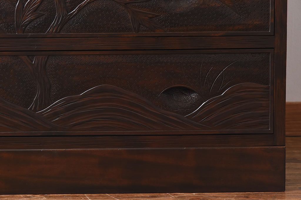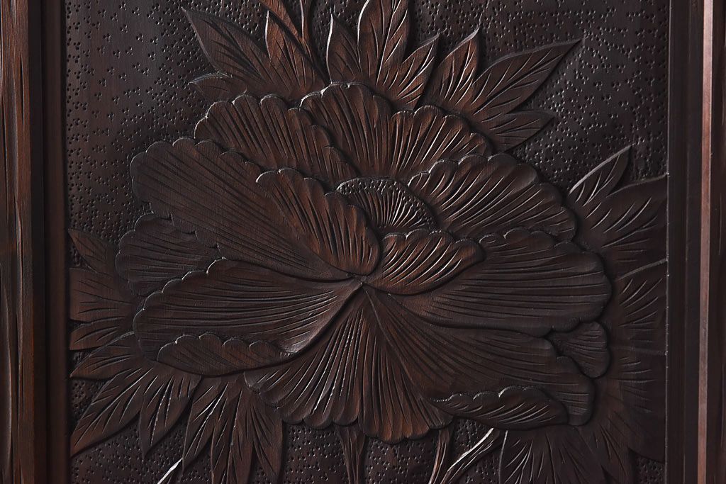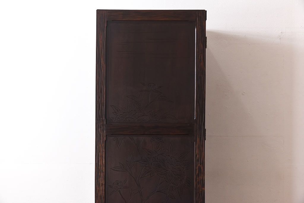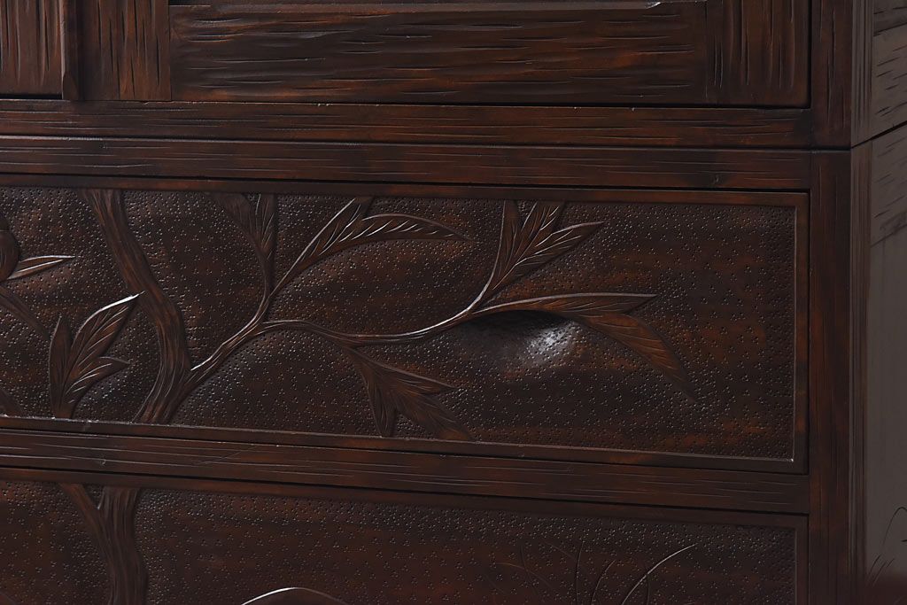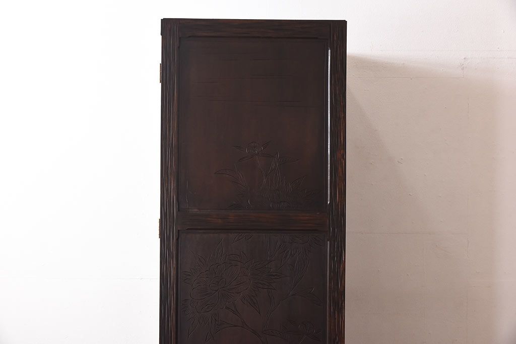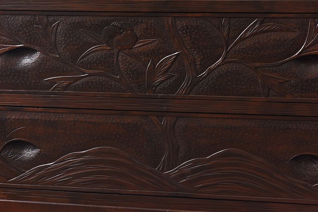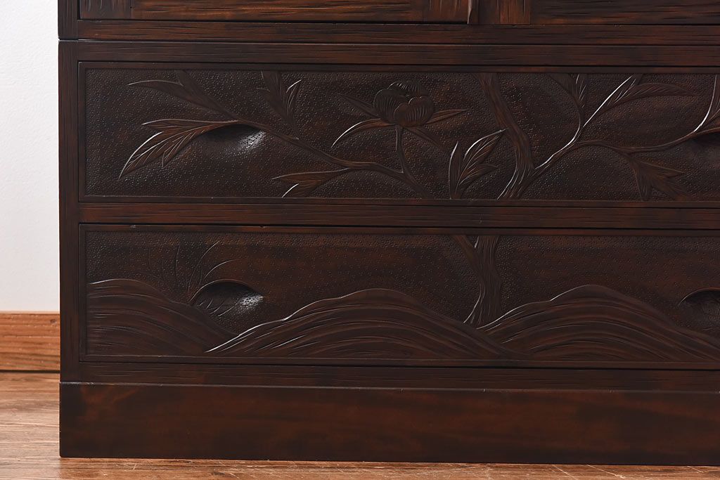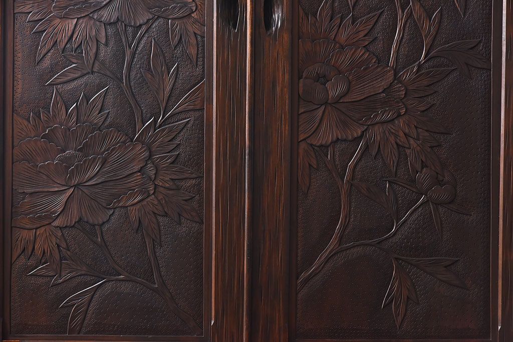 中古 伝統工芸 軽井沢彫り 牡丹の意匠が目を引くワードローブ(洋服タンス)
