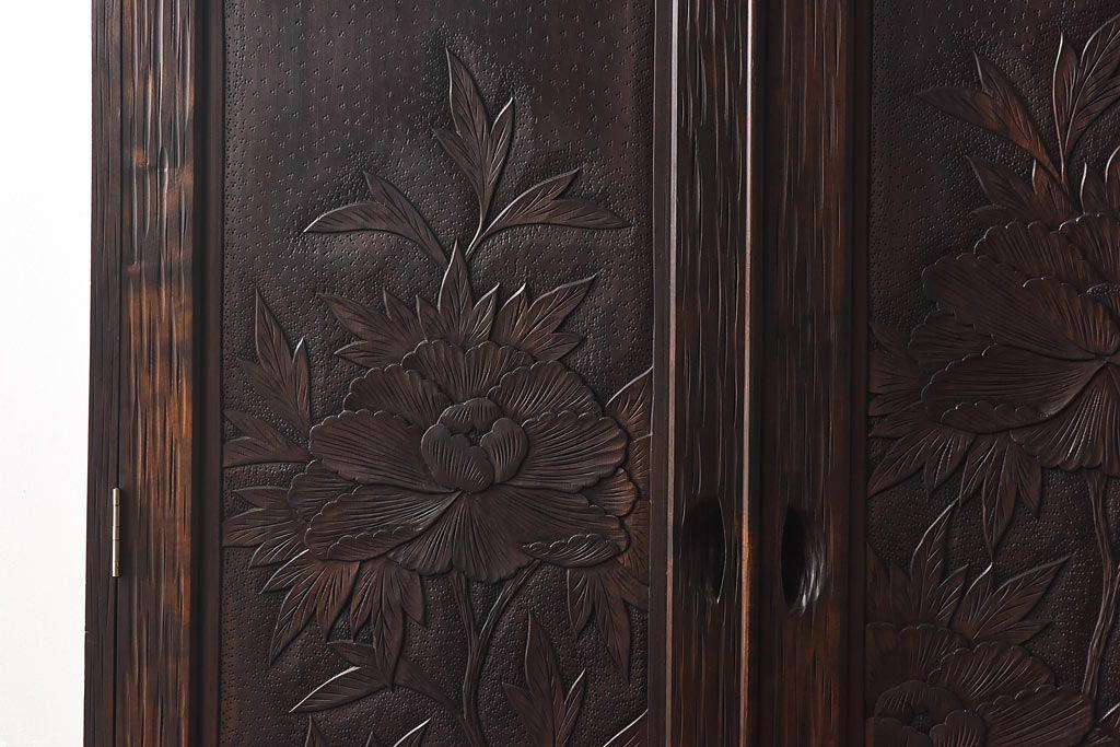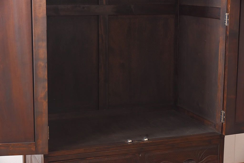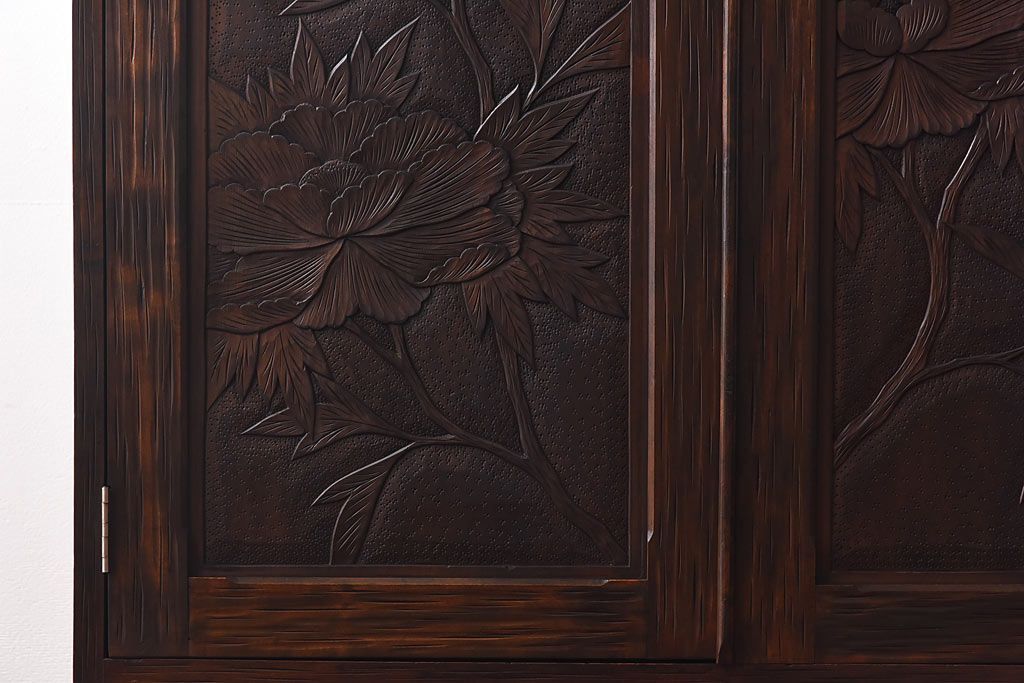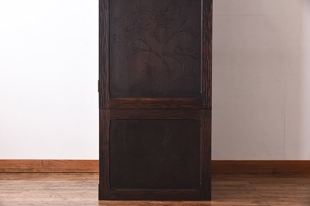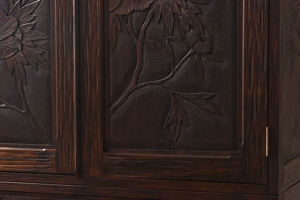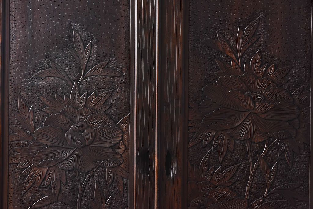 ラフジュ工房> ワードローブ・ロッカー> ワードローブ > 中古 伝統工芸 軽井沢彫り 牡丹の意匠が目を引くワードローブ(洋服タンス)