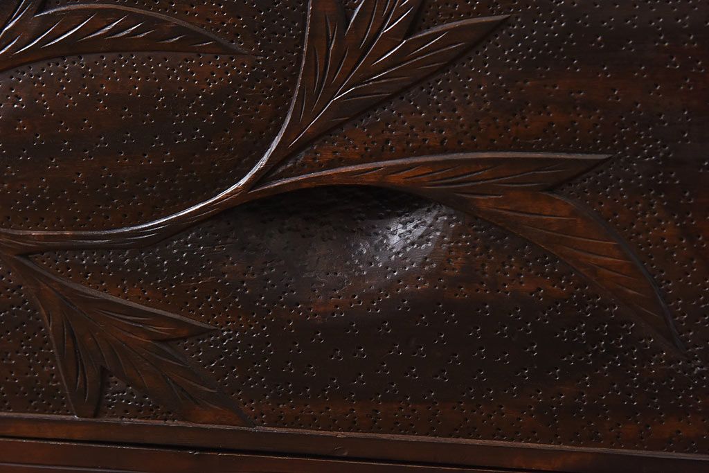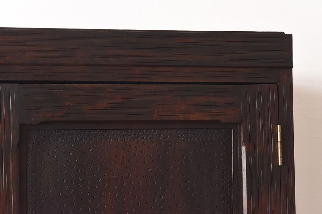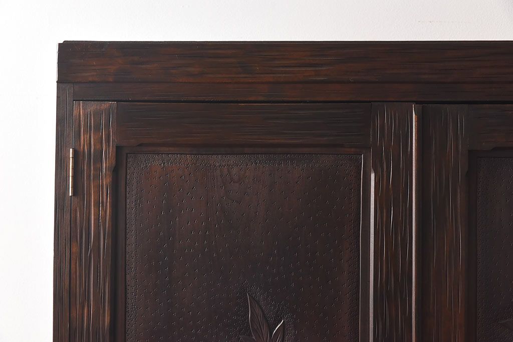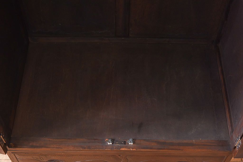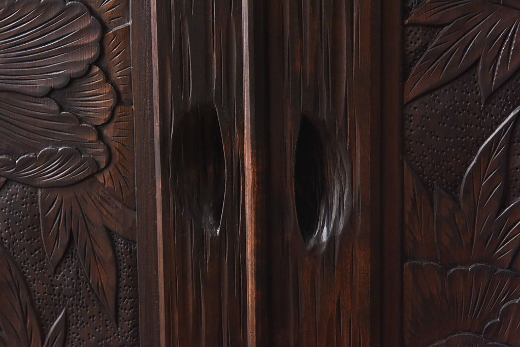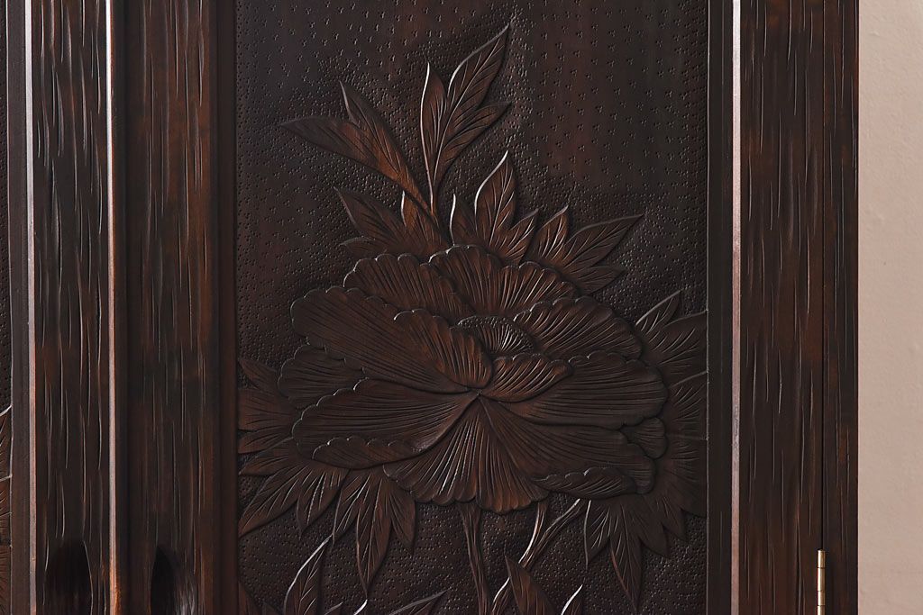 ラフジュ工房> ワードローブ・ロッカー> ワードローブ > 中古 伝統工芸 軽井沢彫り 牡丹の意匠が目を引くワードローブ(洋服タンス)