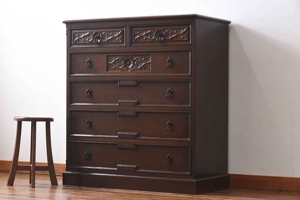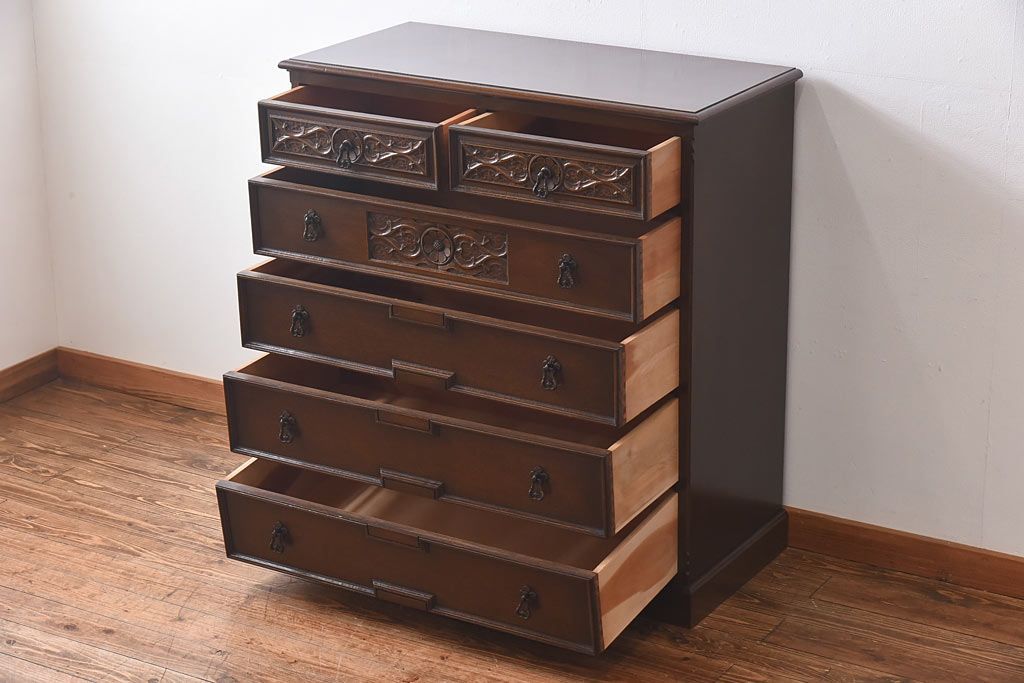ビンテージ 神戸洋家具老舗たかねや製 上品な雰囲気漂うオーク材のチェスト(引き出し)(永田良介)