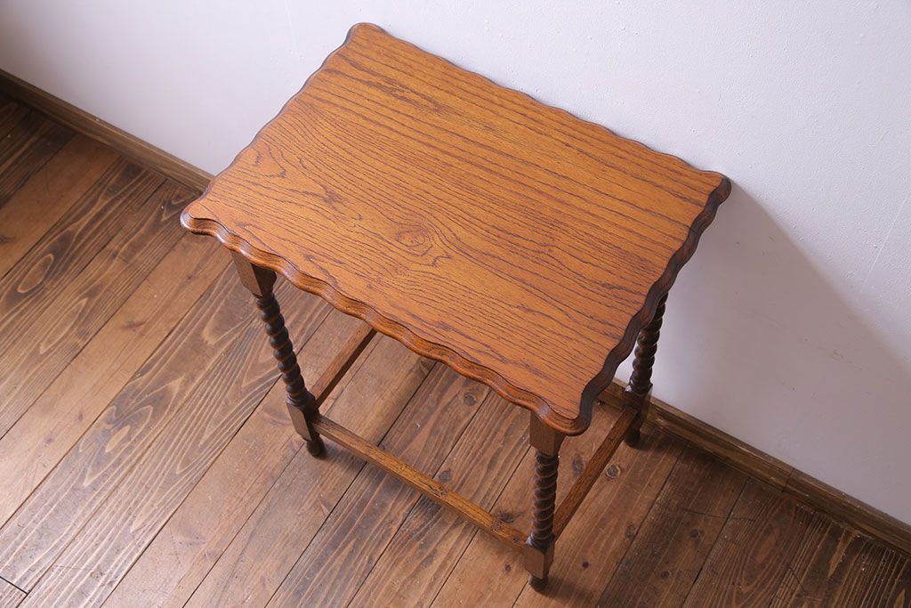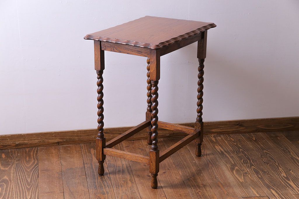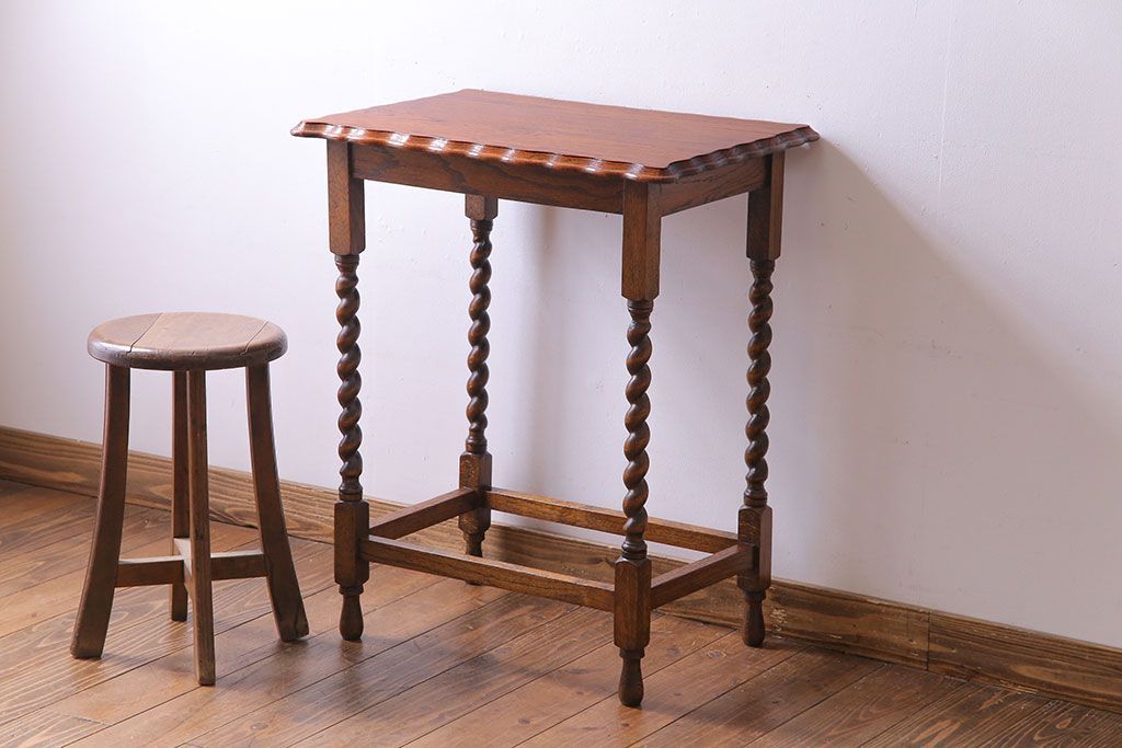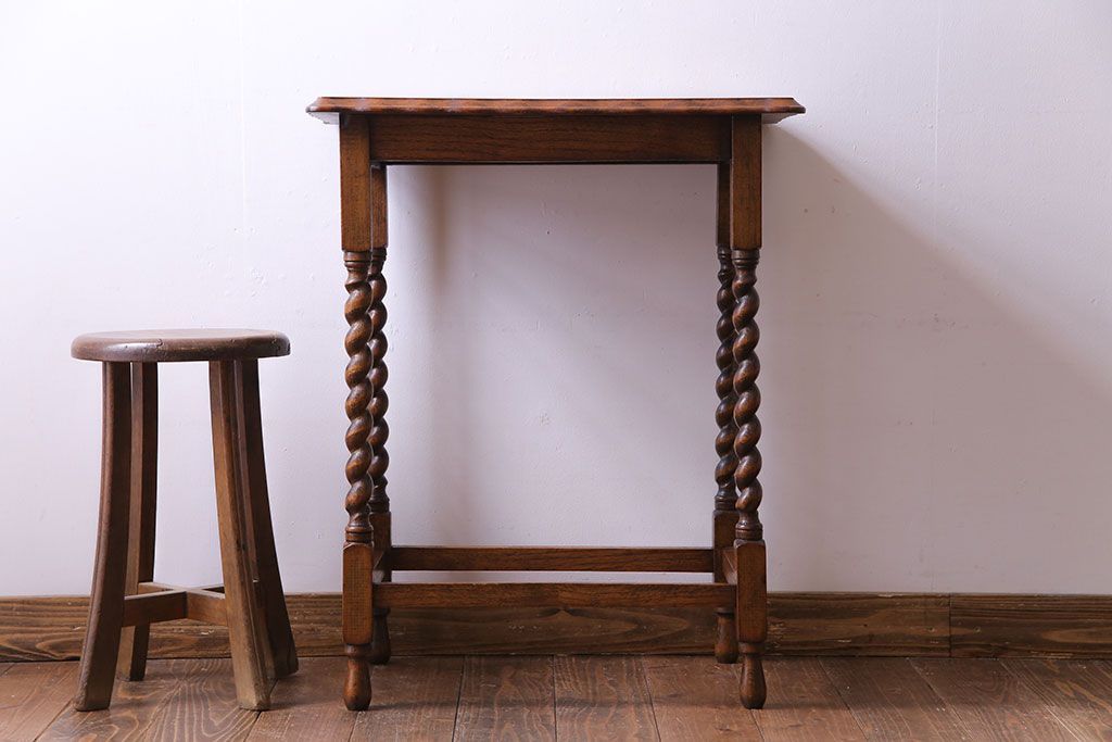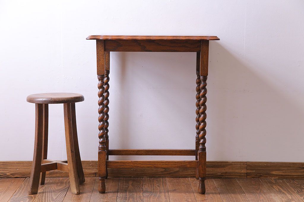 テーブル> サイドテーブル > アンティーク雑貨 イギリスアンティーク 飴細工のようなツイストレッグが美しいオケージョナルテーブル(サイドテーブル、カフェテーブル、花台)