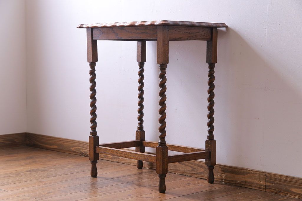 テーブル> カフェテーブル・コーヒーテーブル > アンティーク雑貨 イギリスアンティーク 飴細工のようなツイストレッグが美しいオケージョナルテーブル(サイドテーブル、カフェテーブル、花台)
