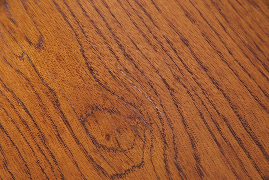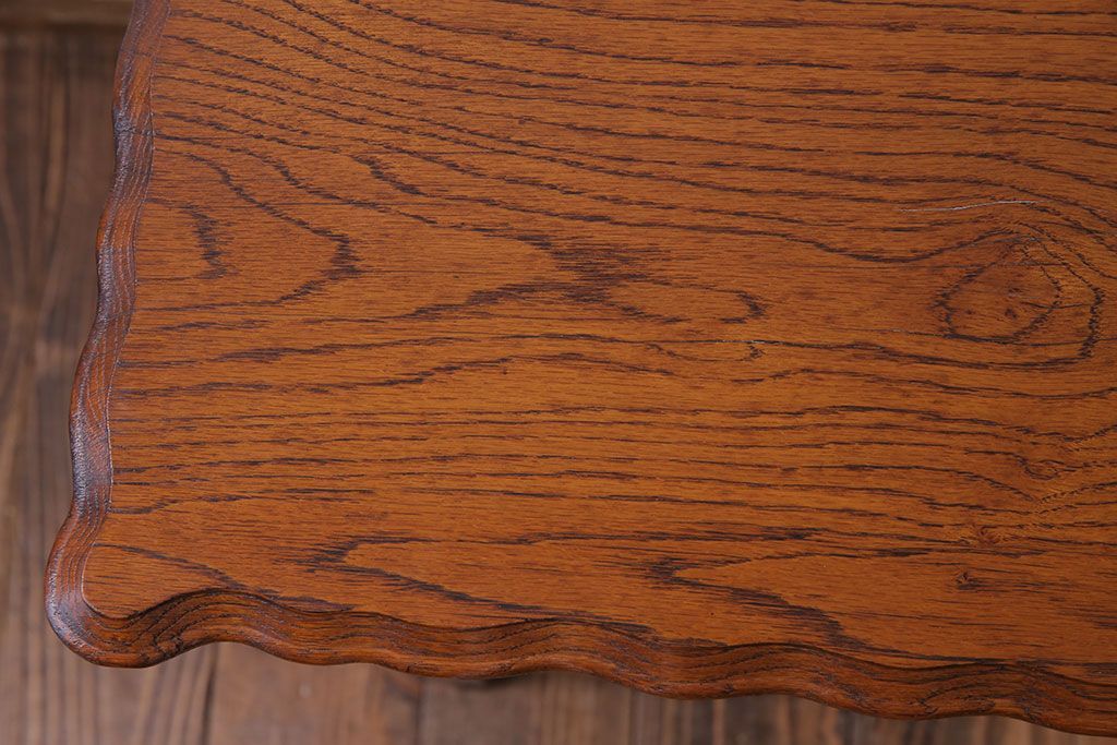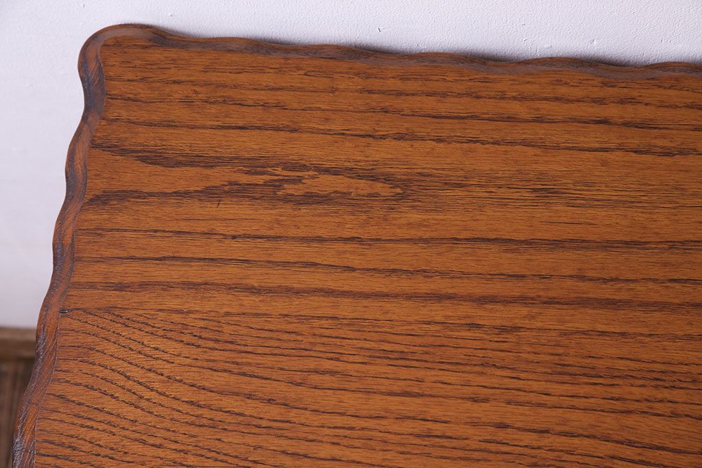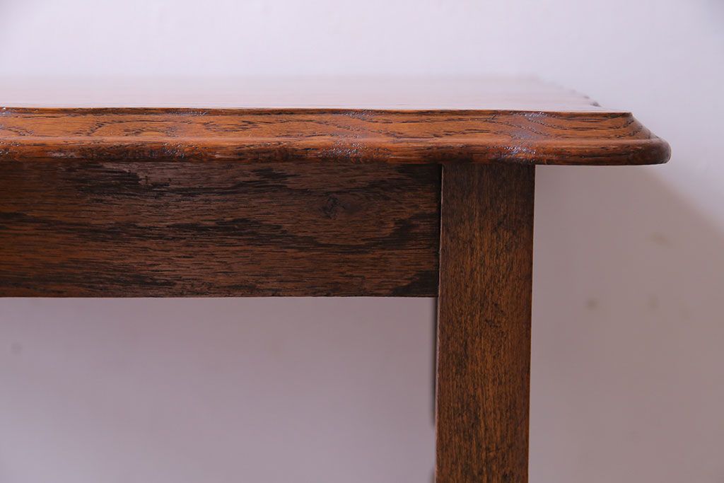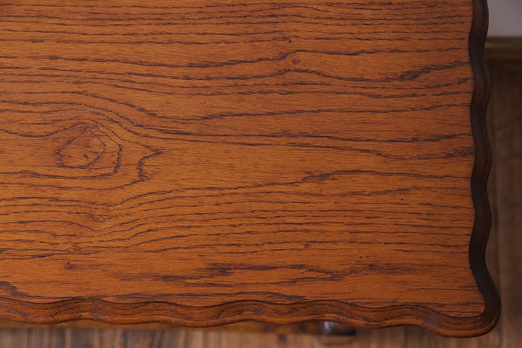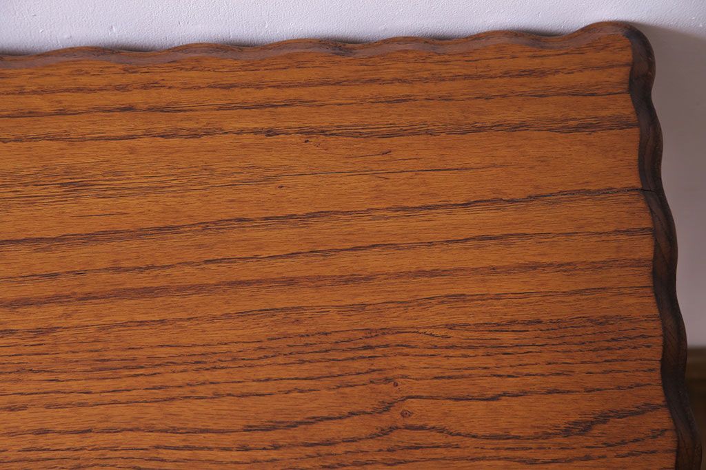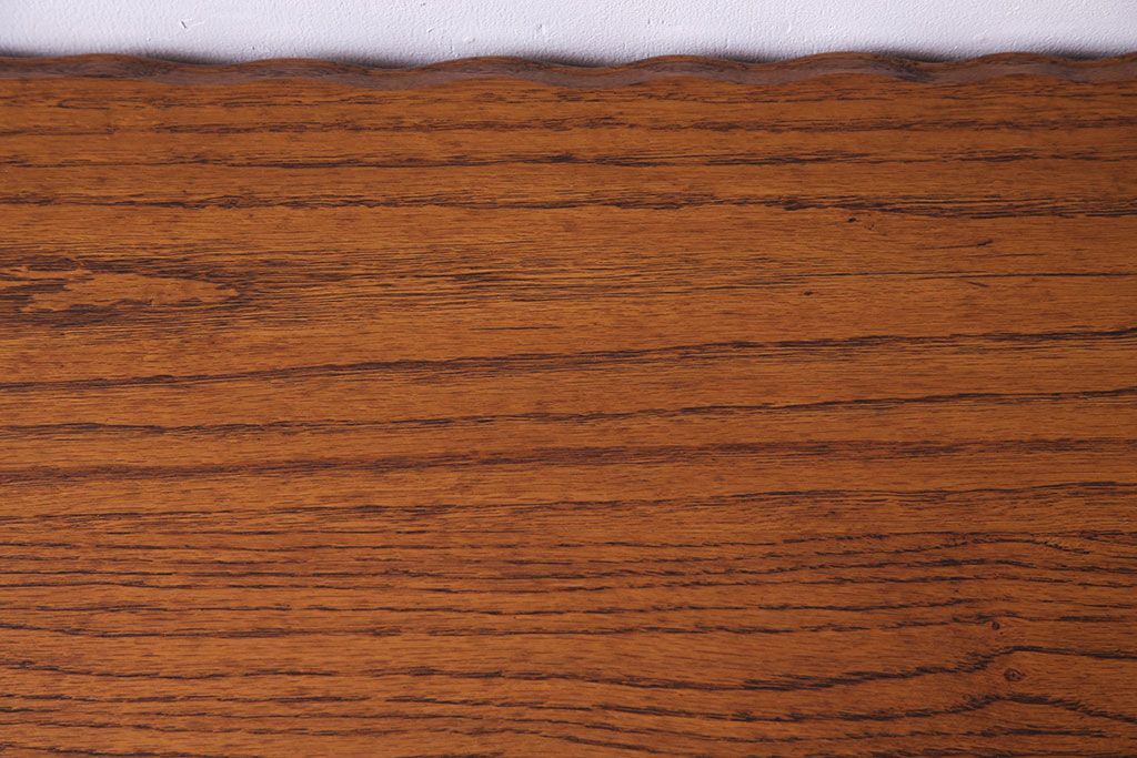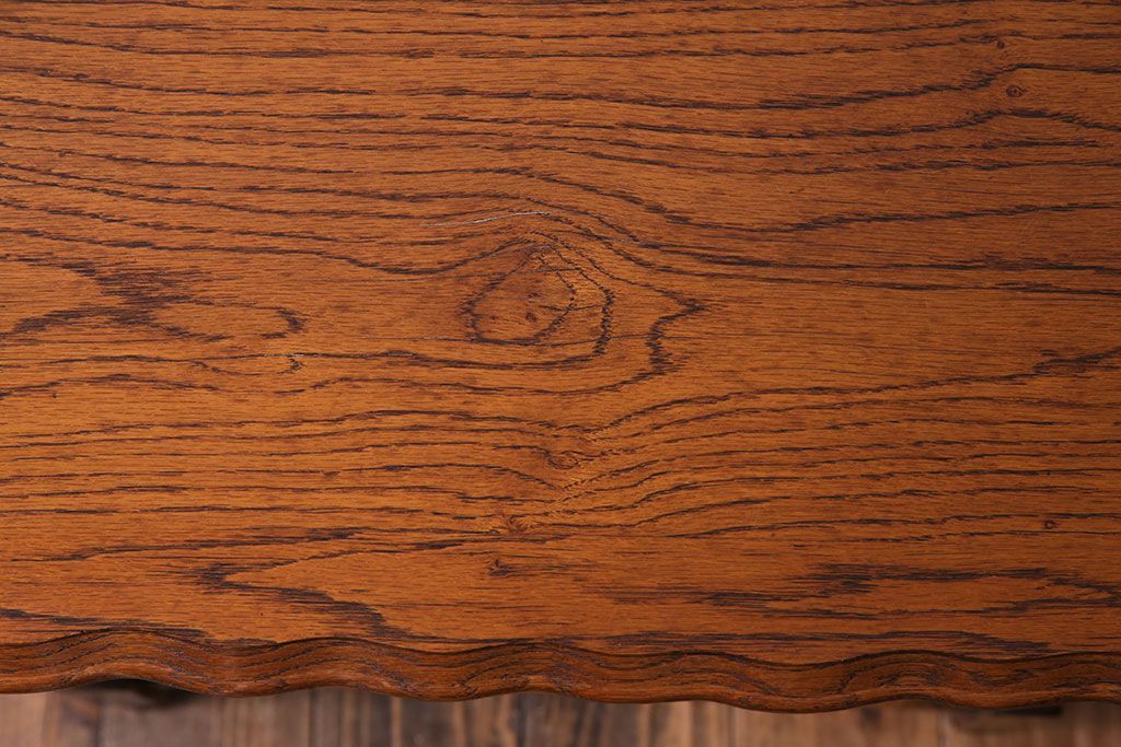 天板の縁にはオーク材の美しい杢目を引き立てる