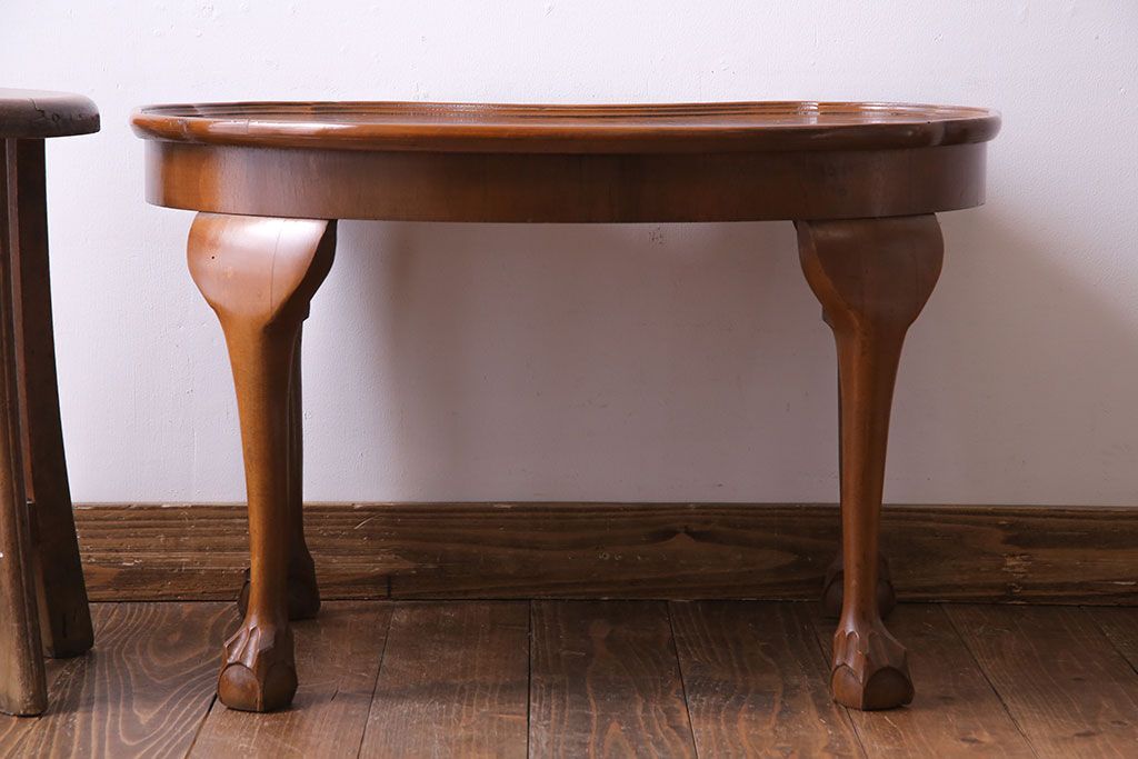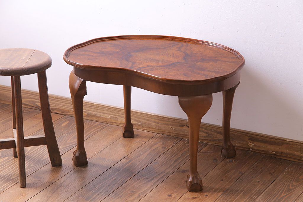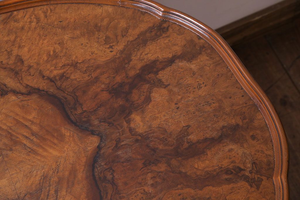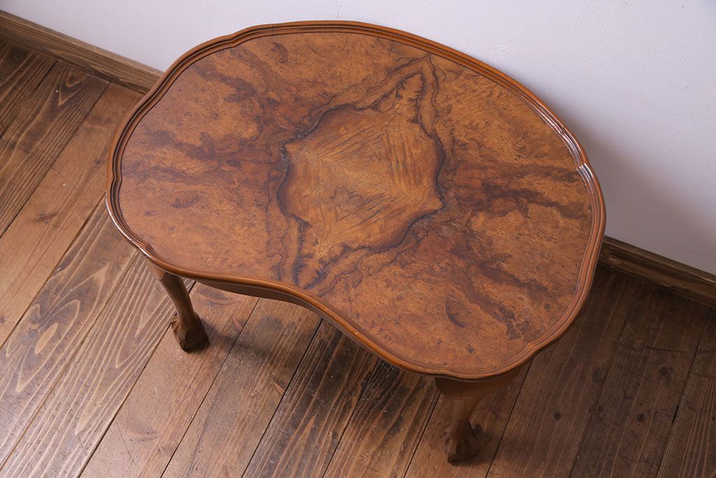 ヴィンテージ家具 イギリスビンテージ 大胆な杢目づかいが美しいローテーブル(リビングテーブル、センターテーブル、サイドテーブル)