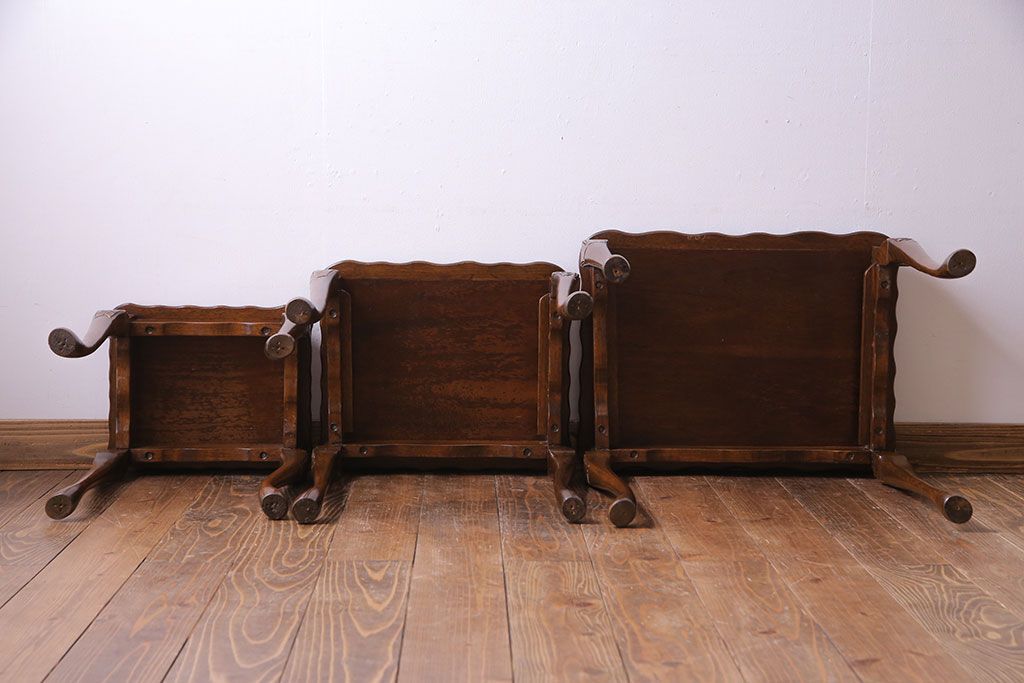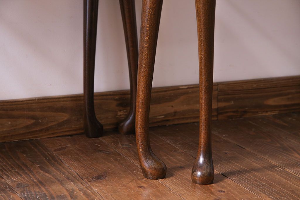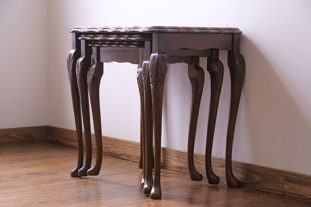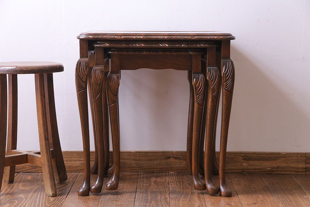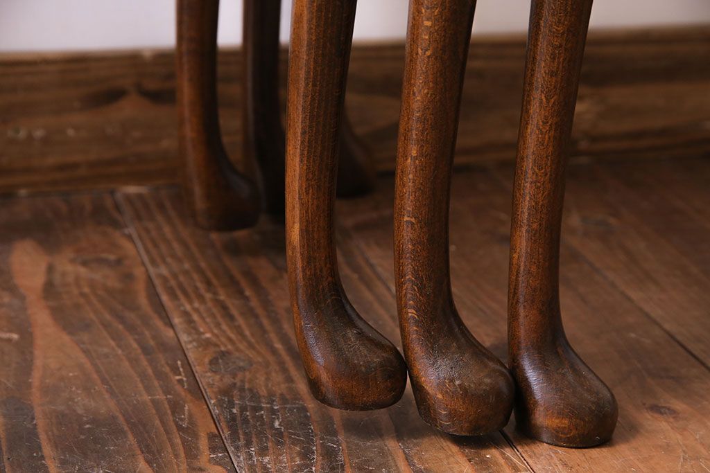 ラフジュ工房> テーブル> ネストテーブル > アンティーク雑貨 イギリスビンテージ 流れるような曲線の猫脚が美しいネストテーブル(サイドテーブル、カフェテーブル、花台)