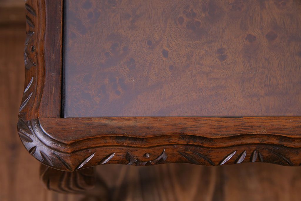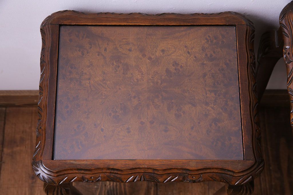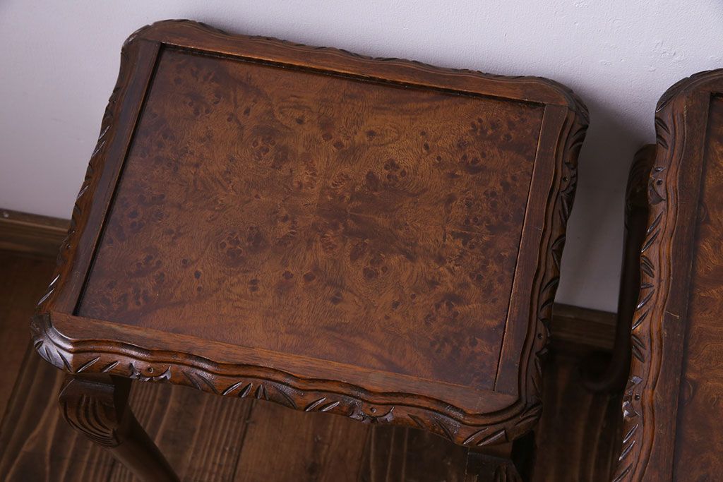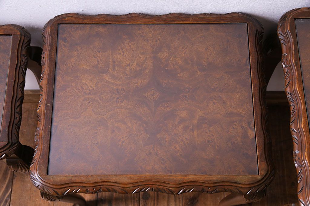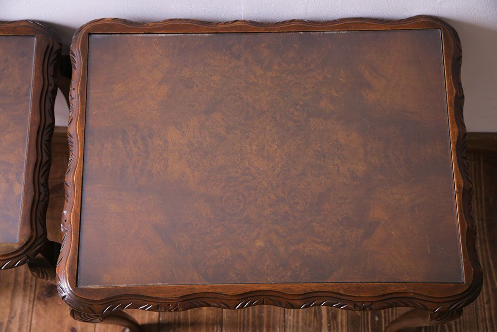 ラフジュ工房> テーブル> カフェテーブル・コーヒーテーブル > アンティーク雑貨 イギリスビンテージ 流れるような曲線の猫脚が美しいネストテーブル(サイドテーブル、カフェテーブル、花台)