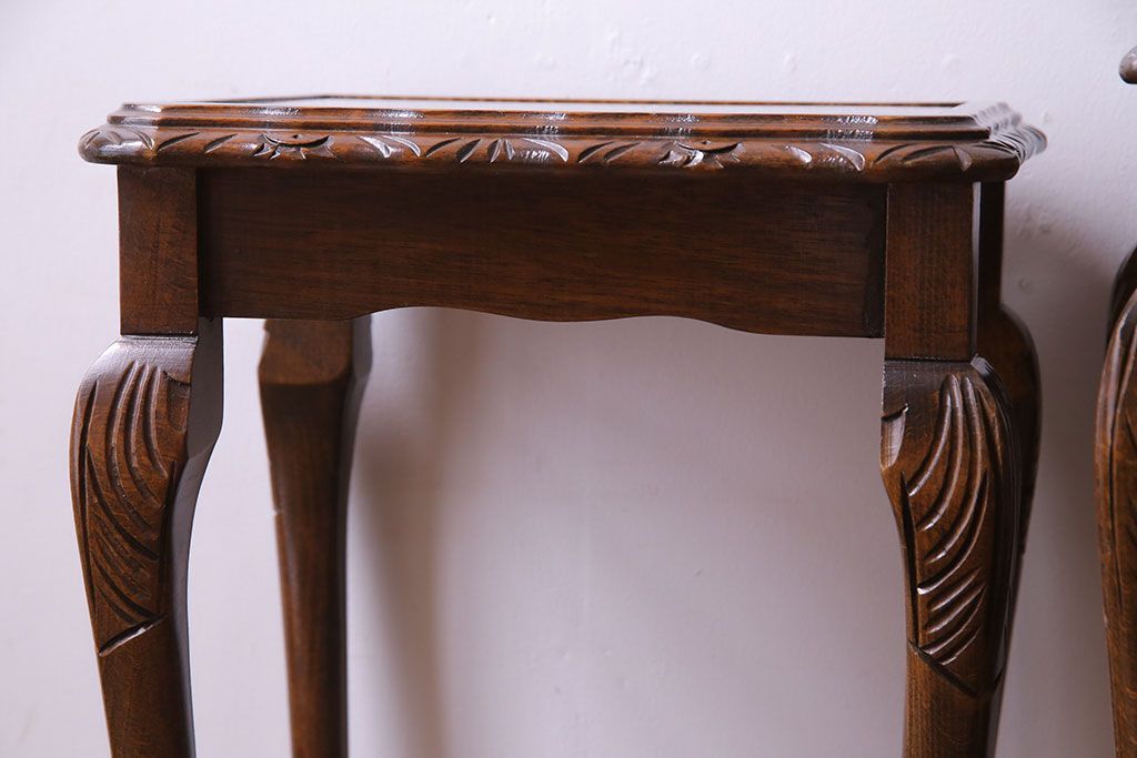 ラフジュ工房> 花台・飾り台 > アンティーク雑貨 イギリスビンテージ 流れるような曲線の猫脚が美しいネストテーブル(サイドテーブル、カフェテーブル、花台)