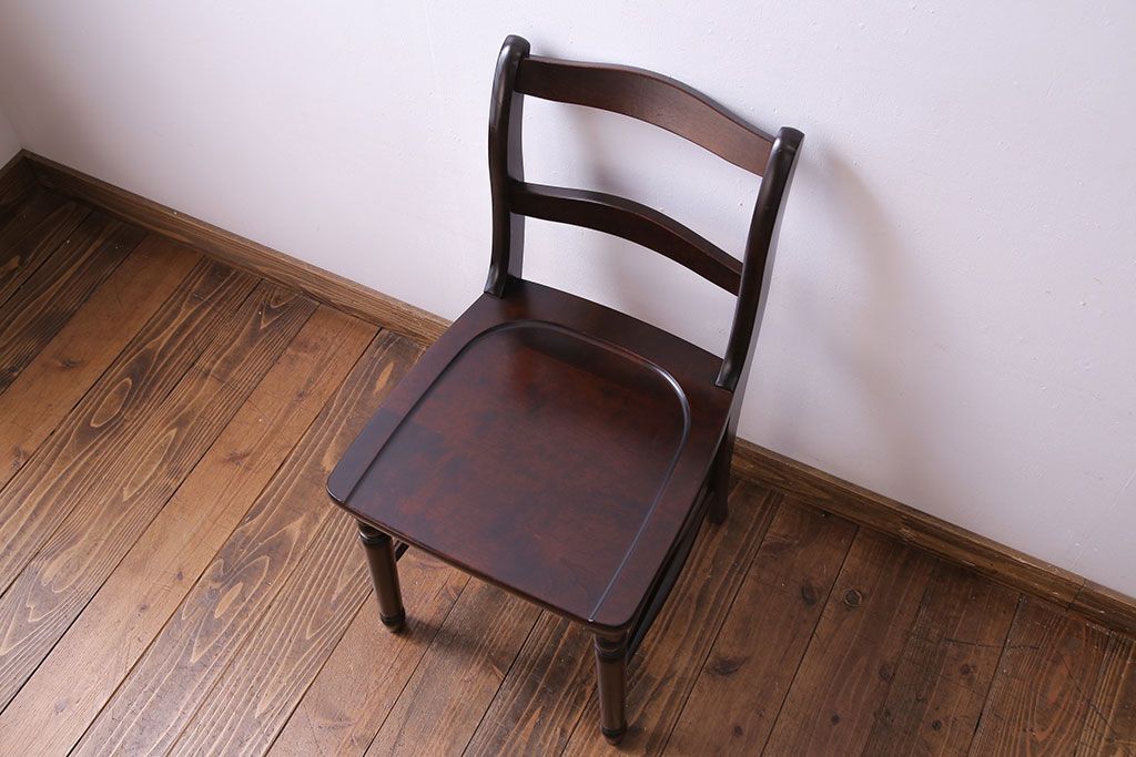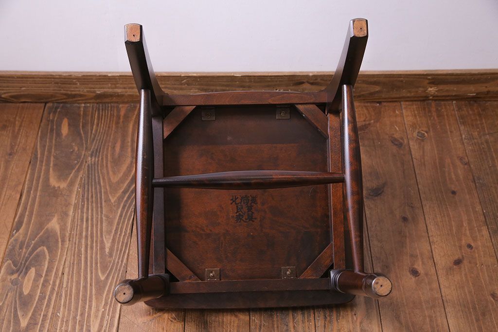 中古美品 北海道民芸家具 HM686 シンプルな小振りのチェア(ダイニングチェア、椅子、板座チェア)(定価約6万円)