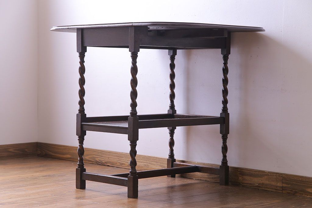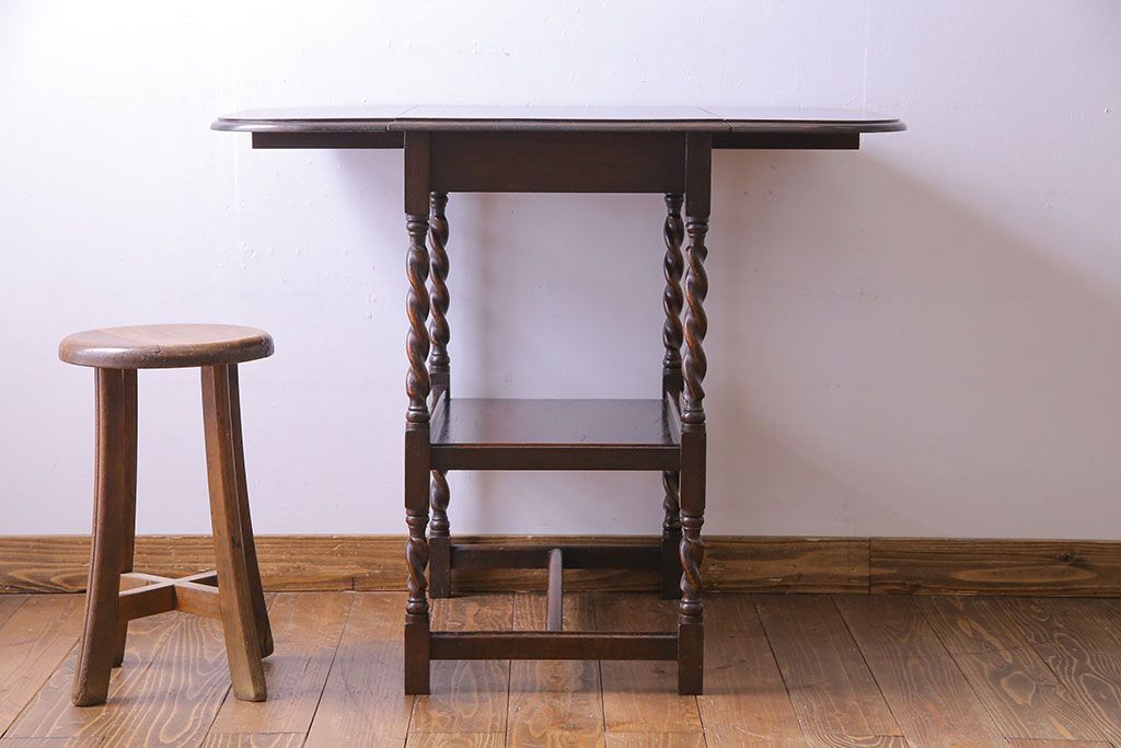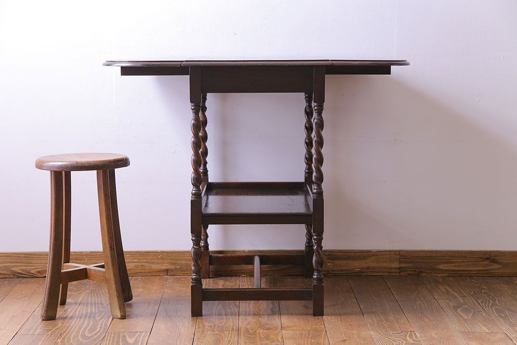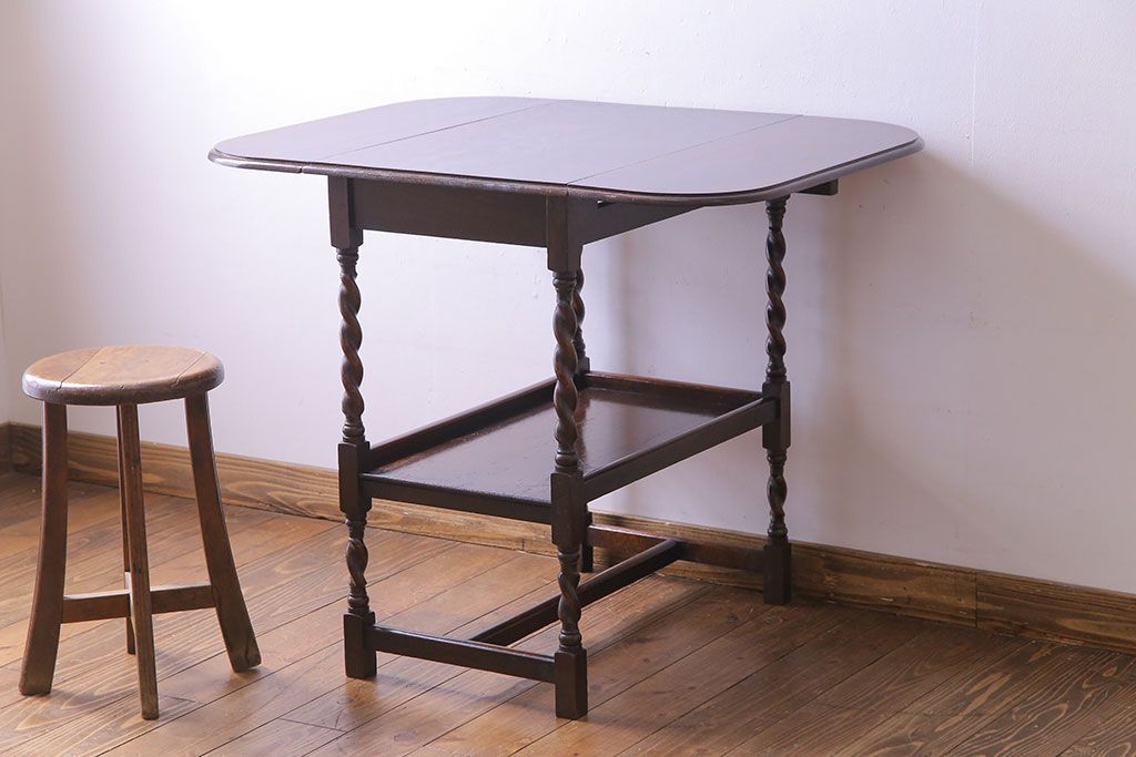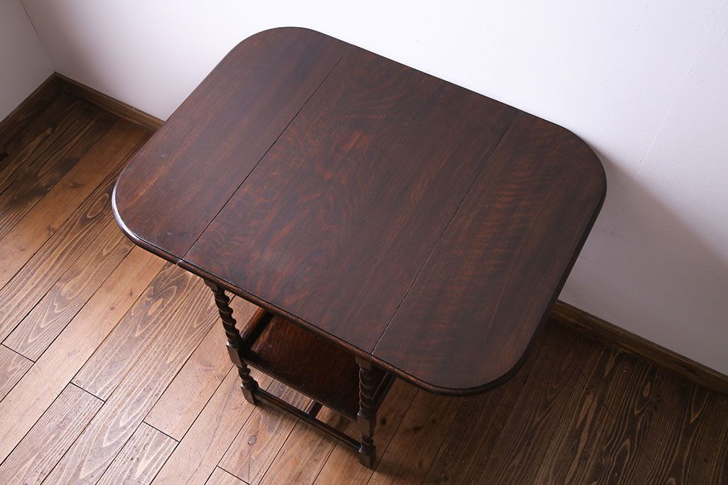 アンティーク家具 イギリスアンティーク 棚付きが珍しい!小振りのバタフライテーブル(カフェテーブル、サイドテーブル、エクステンションテーブル)