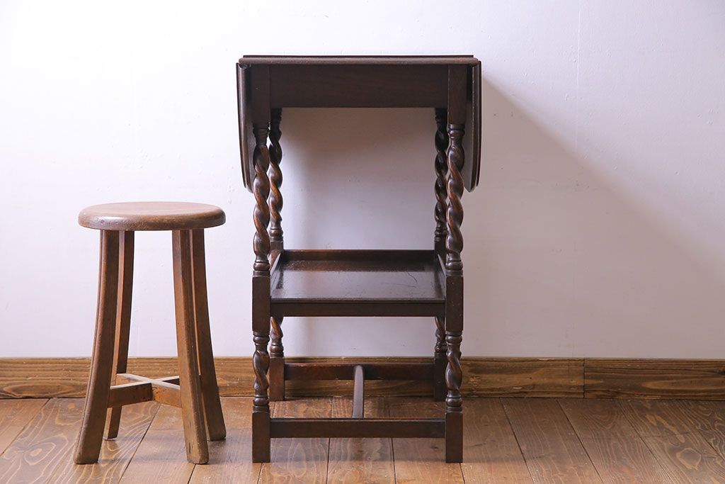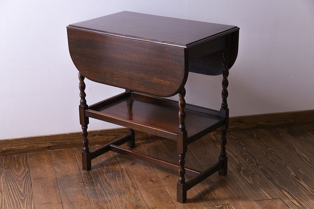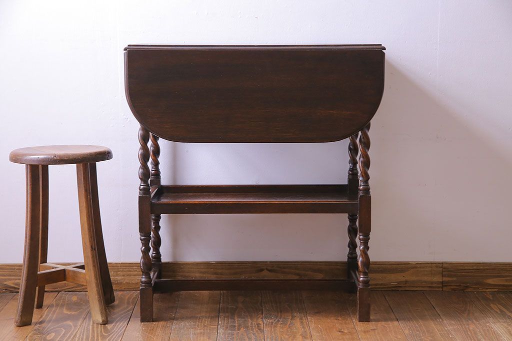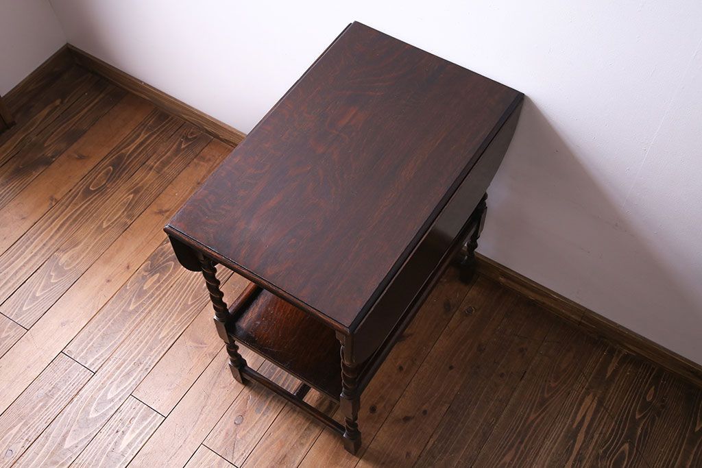 ラフジュ工房> テーブル> サイドテーブル > アンティーク家具 イギリスアンティーク 棚付きが珍しい!小振りのバタフライテーブル(カフェテーブル、サイドテーブル、エクステンションテーブル)