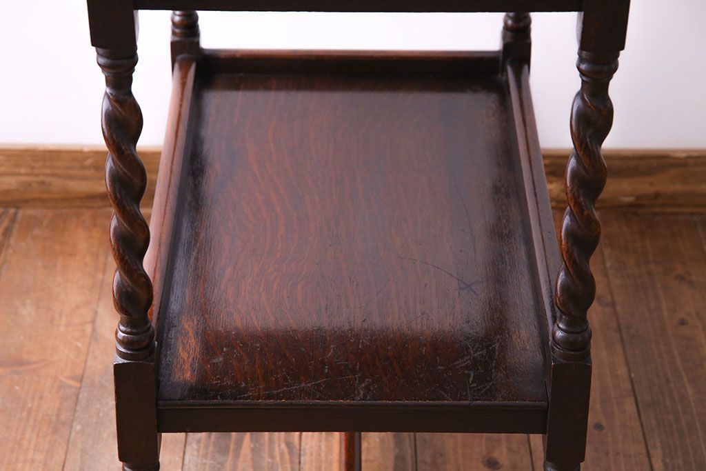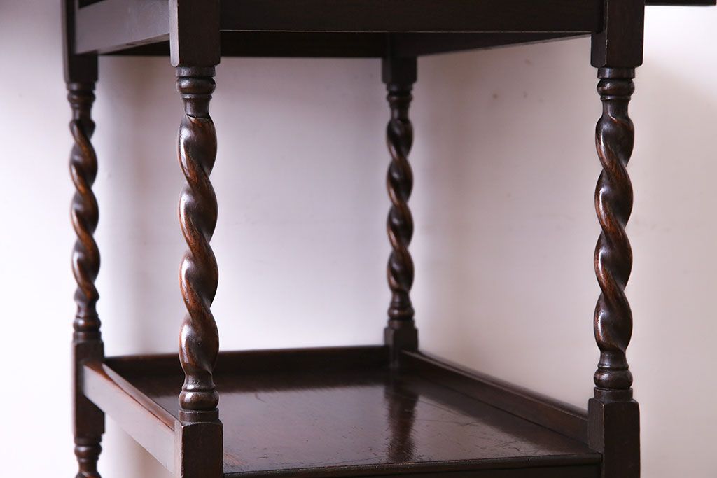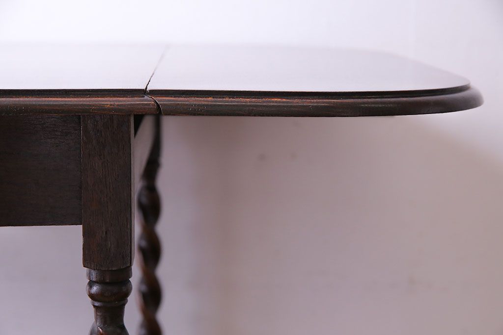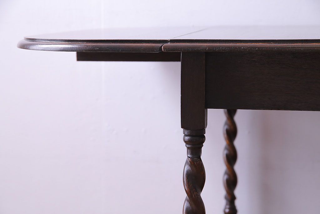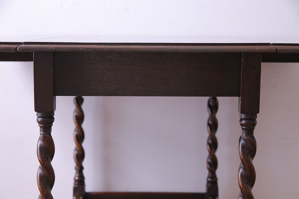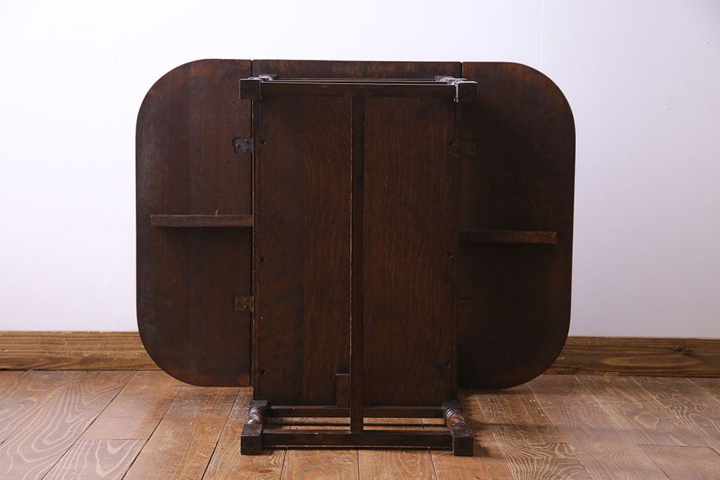 ラフジュ工房> テーブル> エクステンションテーブル > アンティーク家具 イギリスアンティーク 棚付きが珍しい!小振りのバタフライテーブル(カフェテーブル、サイドテーブル、エクステンションテーブル)