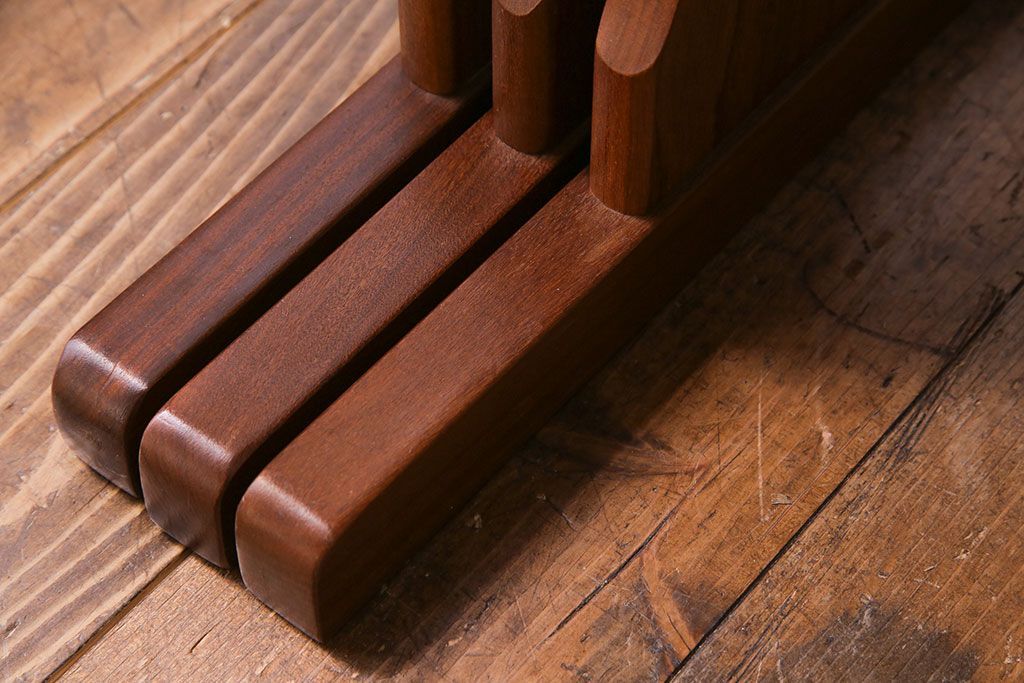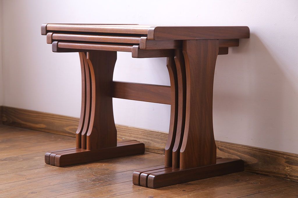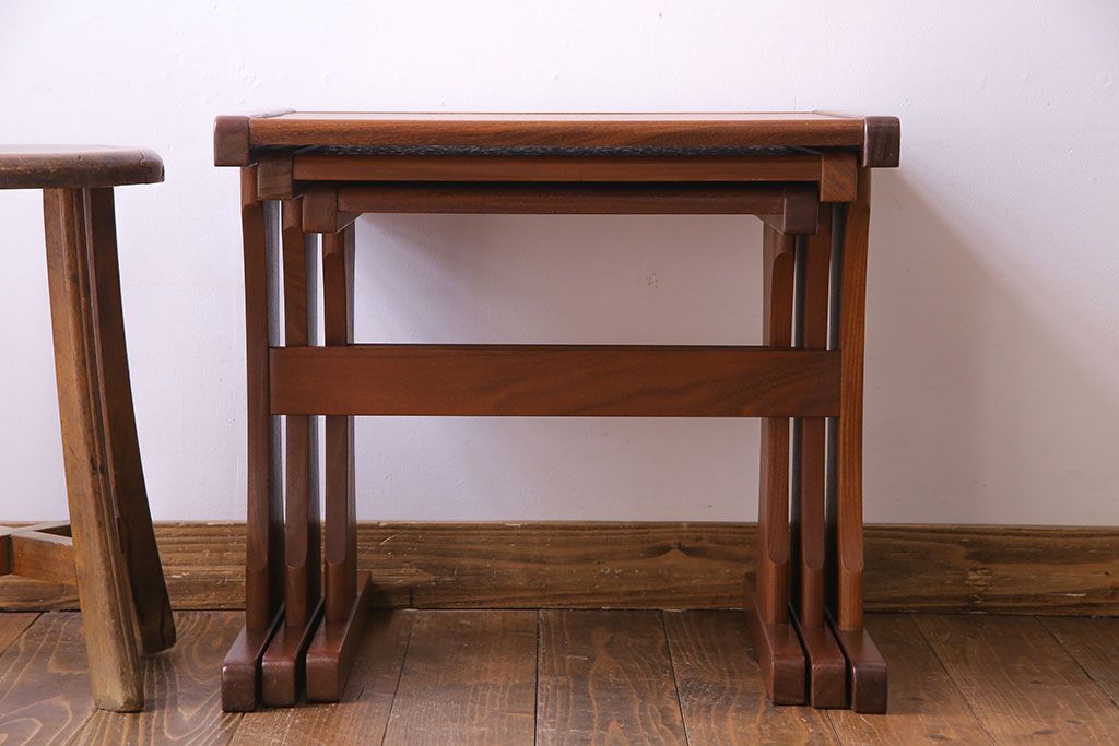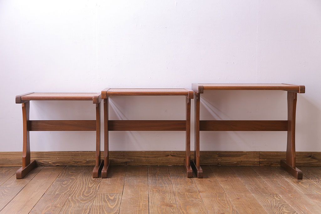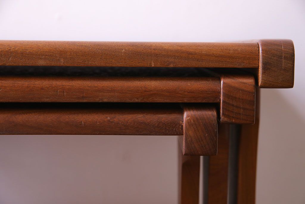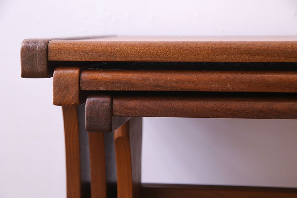 ラフジュ工房> テーブル> ネストテーブル > アンティーク雑貨 イギリスビンテージ チーク材 銅製の天板が個性的なネストテーブル(サイドテーブル、カフェテーブル、花台)