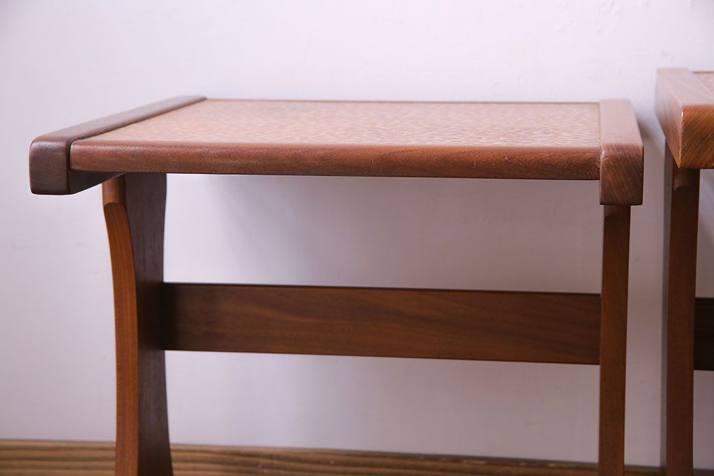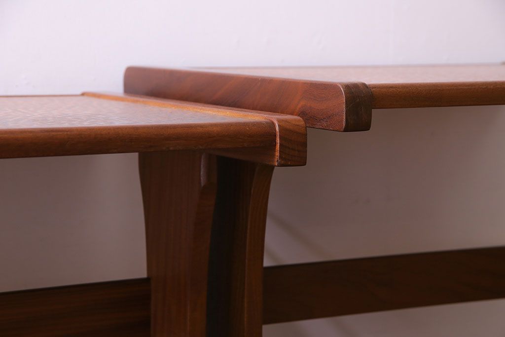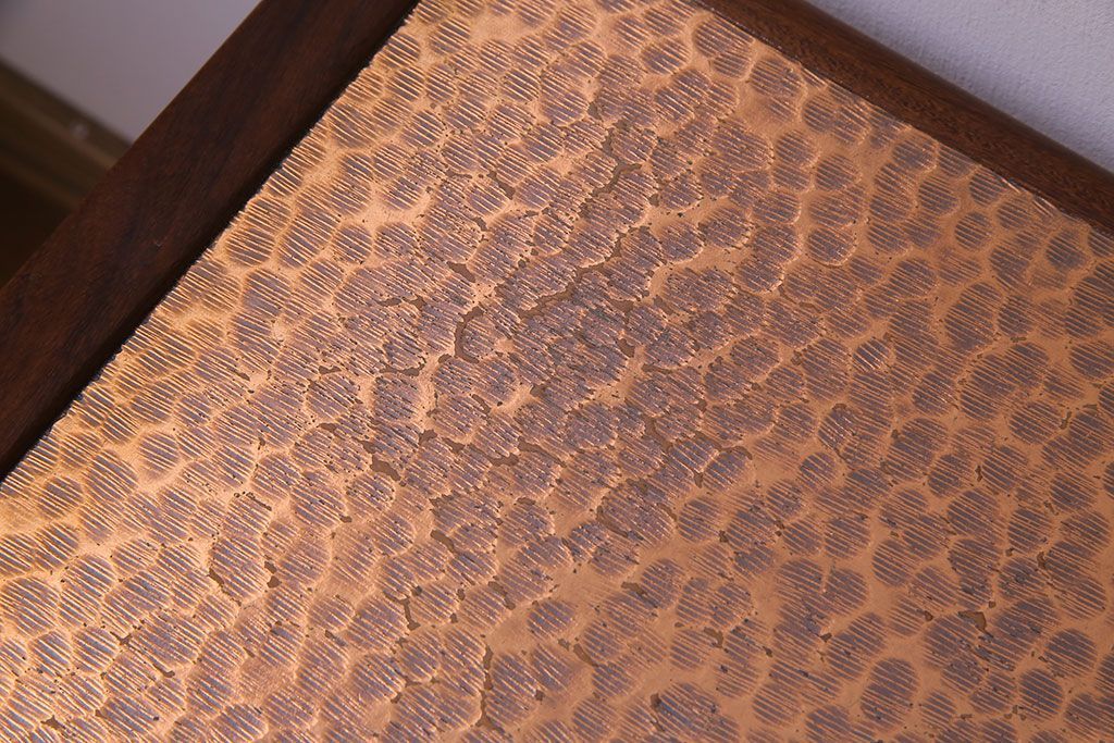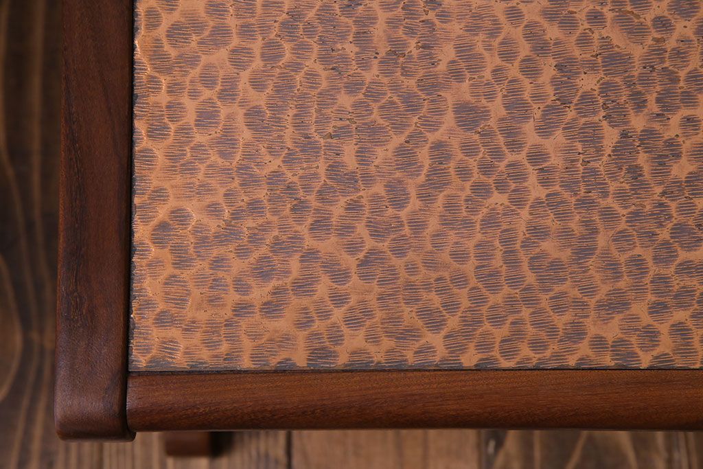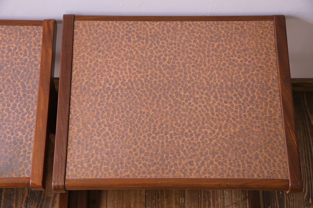 ラフジュ工房> テーブル> カフェテーブル・コーヒーテーブル > アンティーク雑貨 イギリスビンテージ チーク材 銅製の天板が個性的なネストテーブル(サイドテーブル、カフェテーブル、花台)