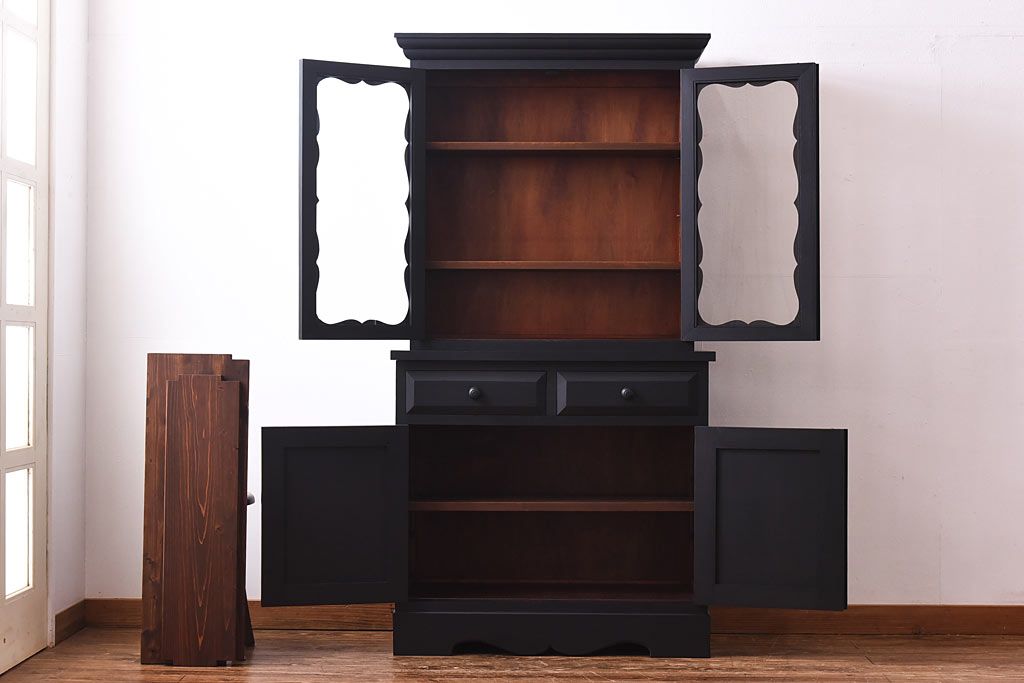 ビンテージ 松本民芸家具 スタイリッシュなリペイントカップボード(食器棚、収納棚)です。