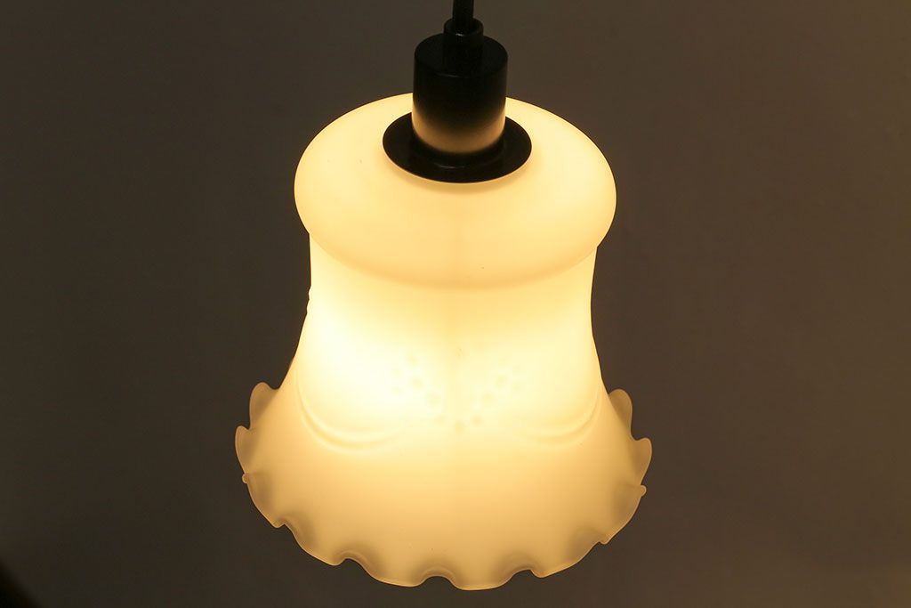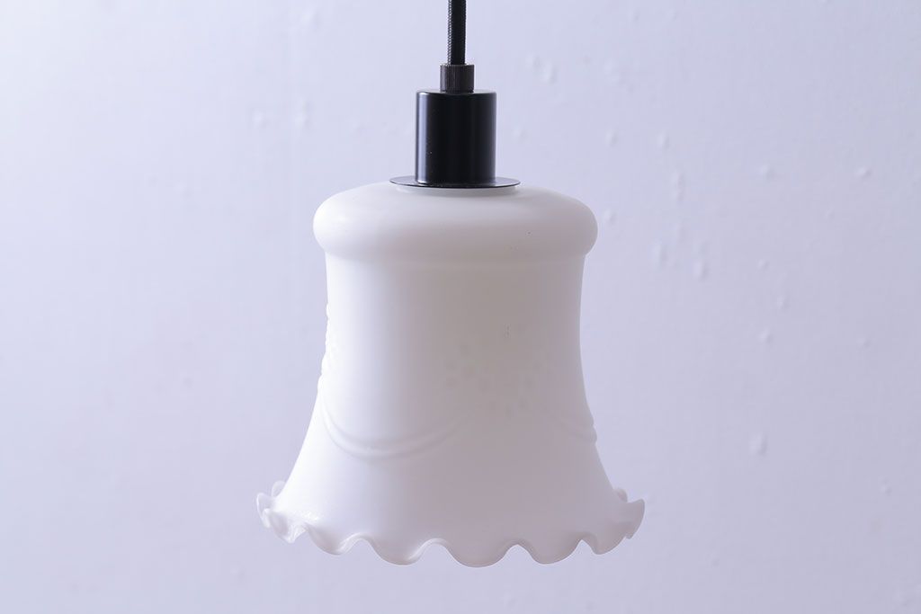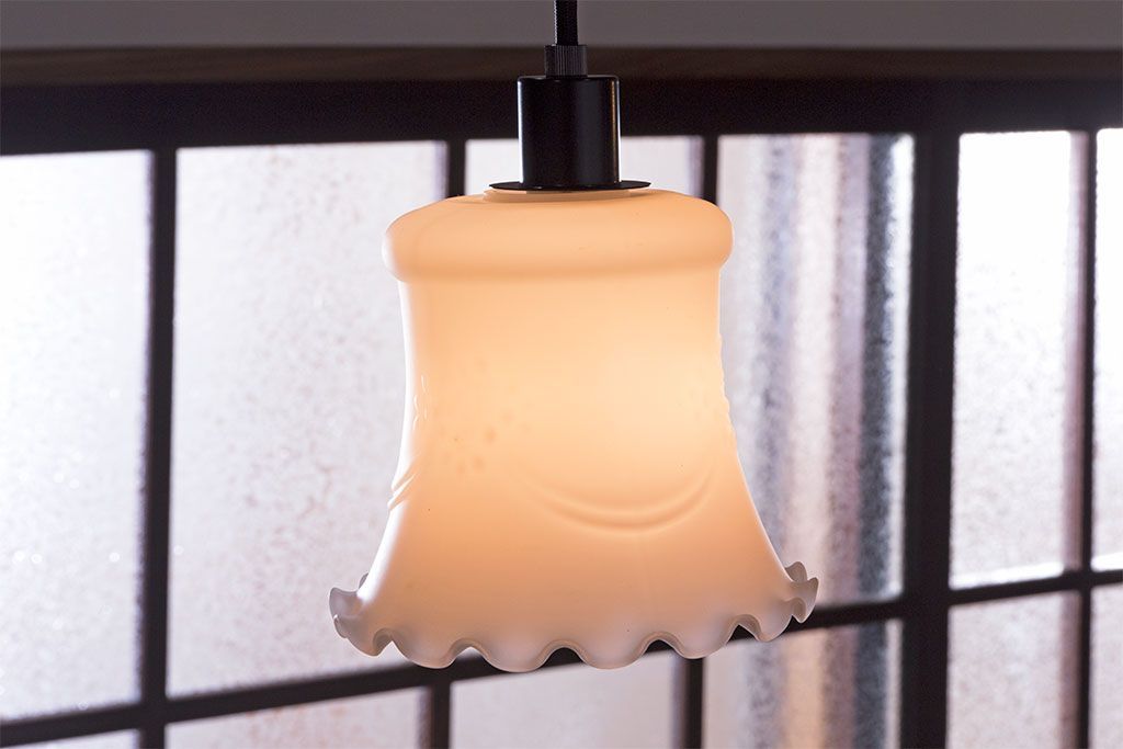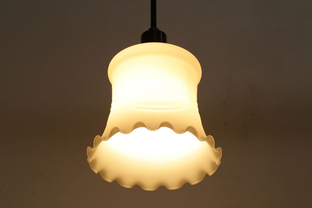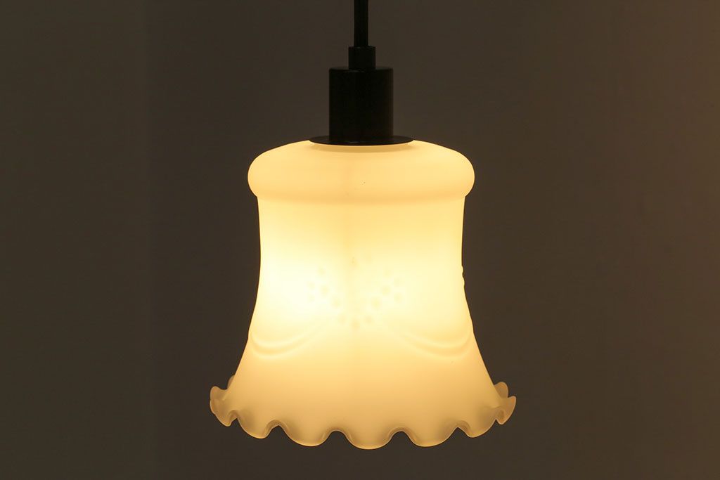 昭和レトロ 薔薇のモチーフが上品なフリルシェード(吊り下げ照明、ペンダントライト、電笠、天井照明)(R-028605)