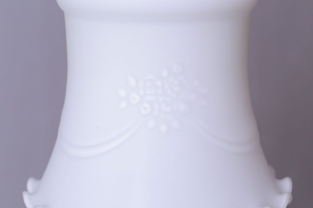 真っ白なガラスに薔薇のデザインが上品な