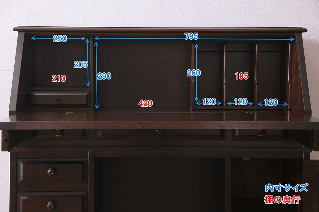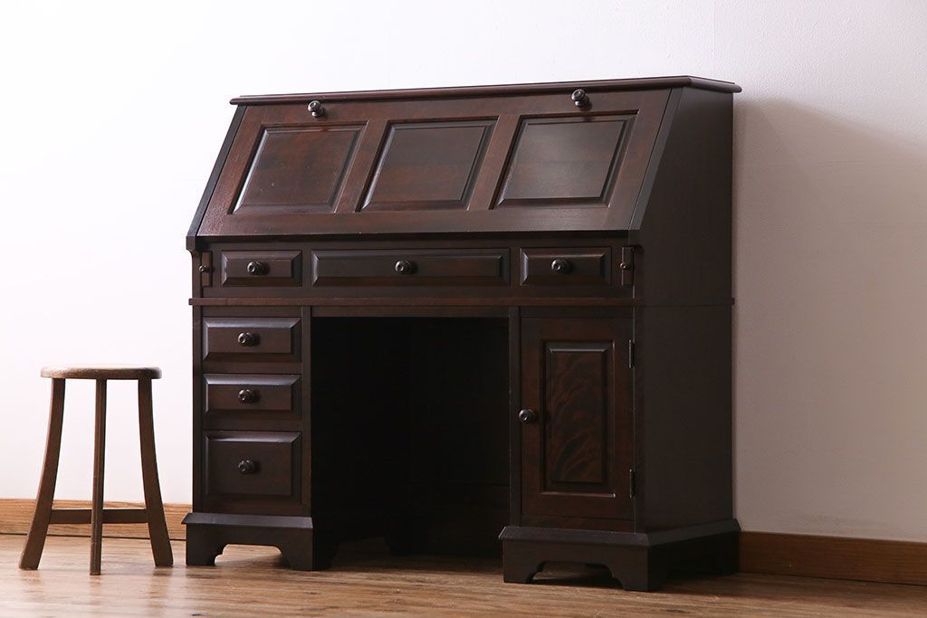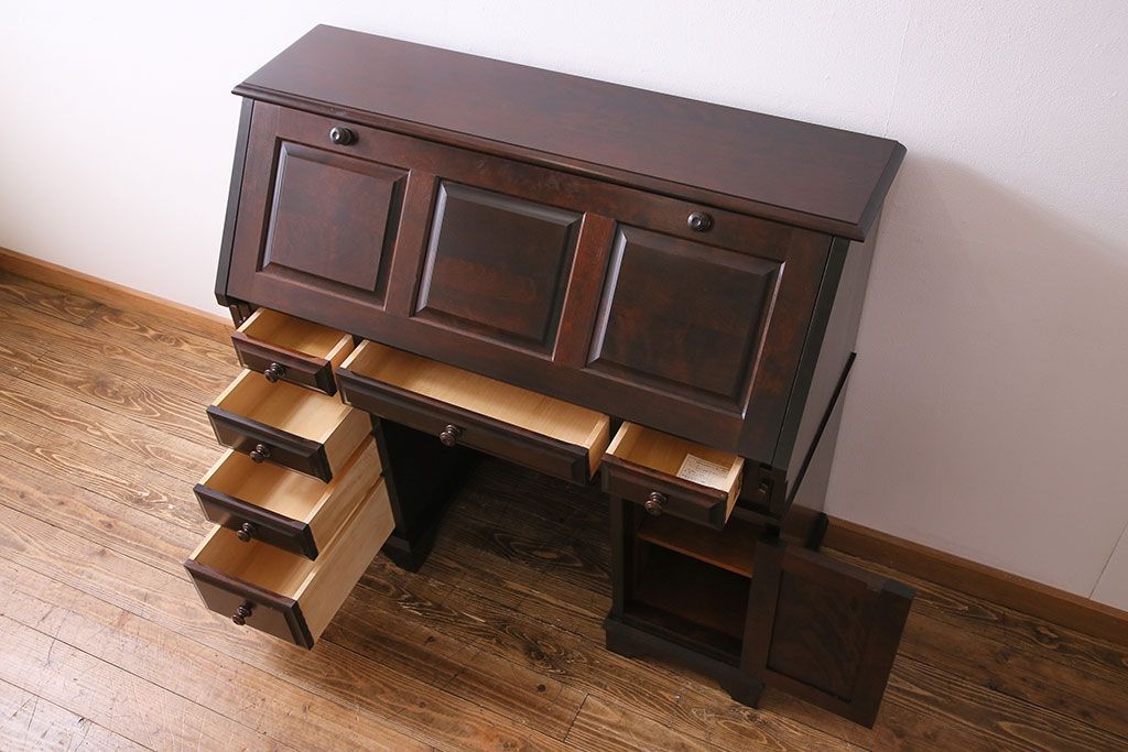 ラフジュ工房> デスク> ワークデスク > ビンテージ 北海道民芸家具 絶版品!両袖ビューロー(ライティングビューロー、デスク、在宅ワーク、在宅用、簿記机)