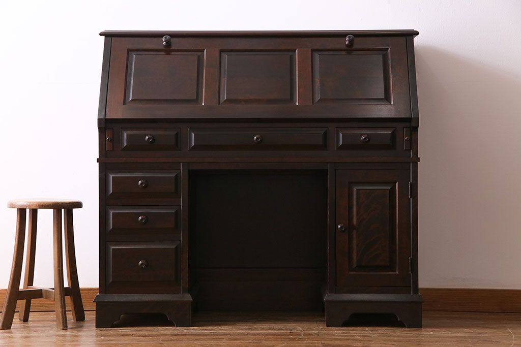 ビンテージ 北海道民芸家具 絶版品!両袖ビューロー(ライティングビューロー、デスク、在宅ワーク、在宅用、簿記机)