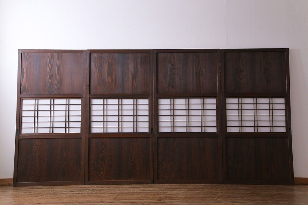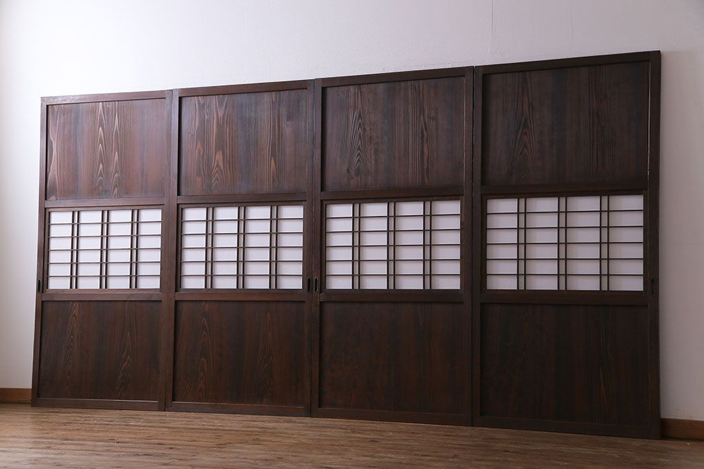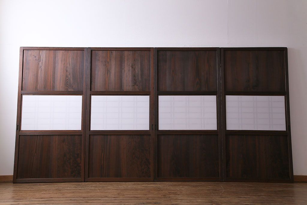 昭和初期 美品 杉材 味わい深い風合いが魅力の障子戸(引き戸、建具)4枚セット(2)