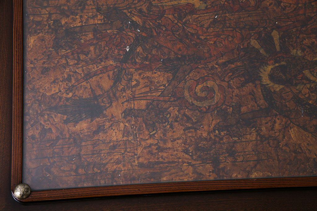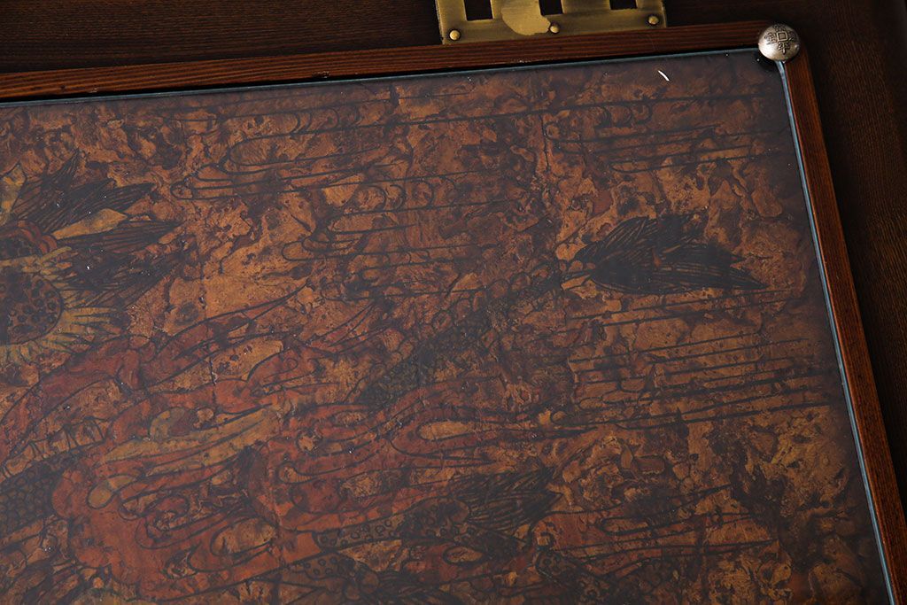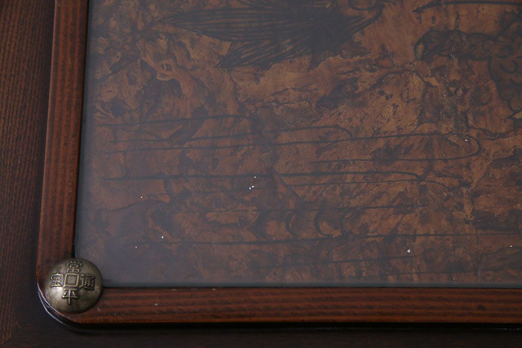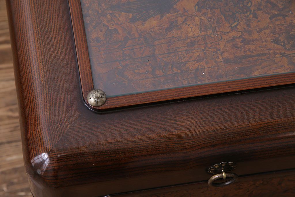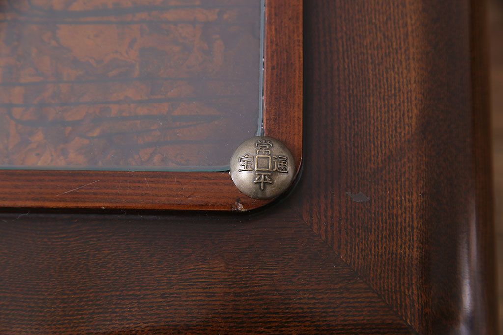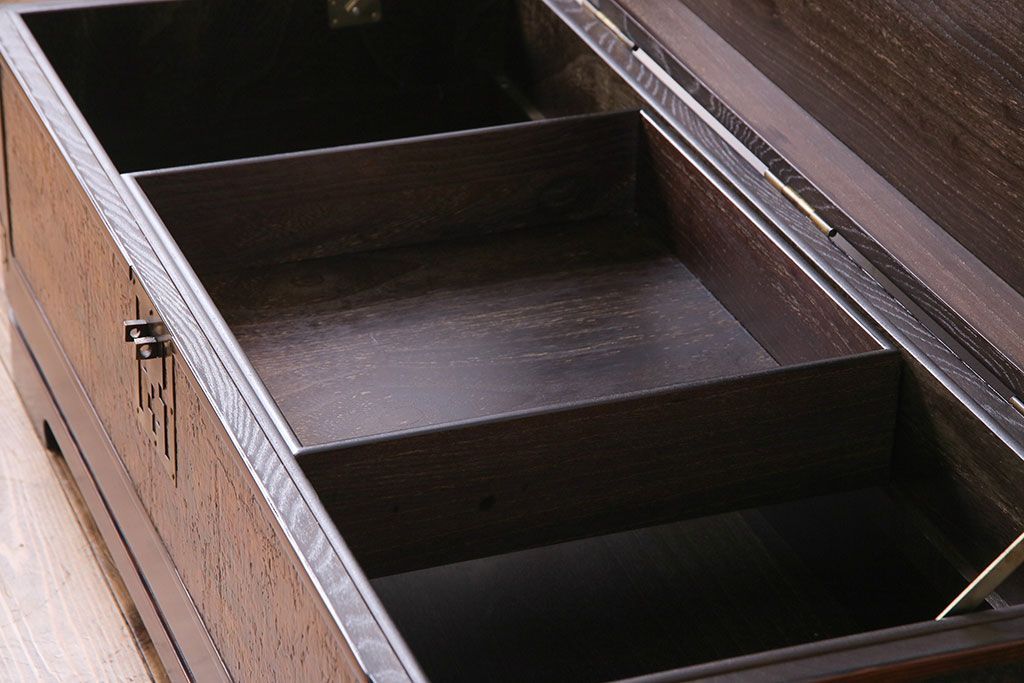 中古 海外製 ニレ材 重厚な佇まいが目を引くトランクケース(衣装箱、銭箱、センターテーブル)(定価約20万円)です。