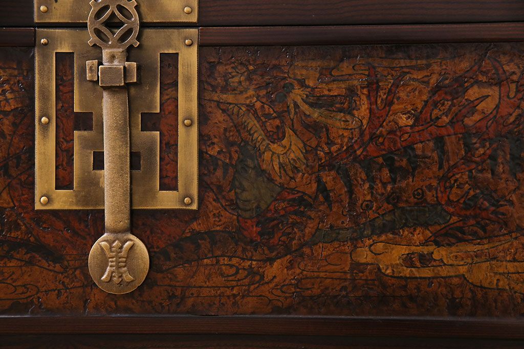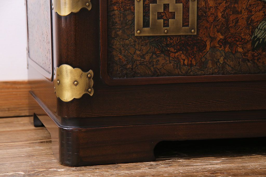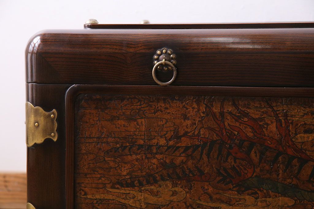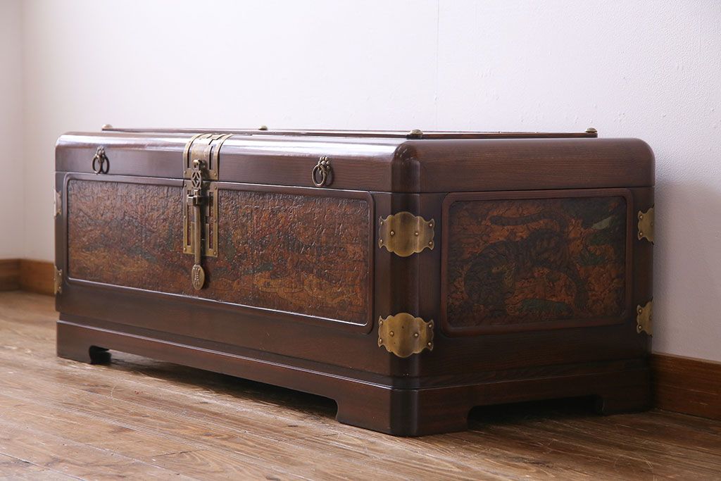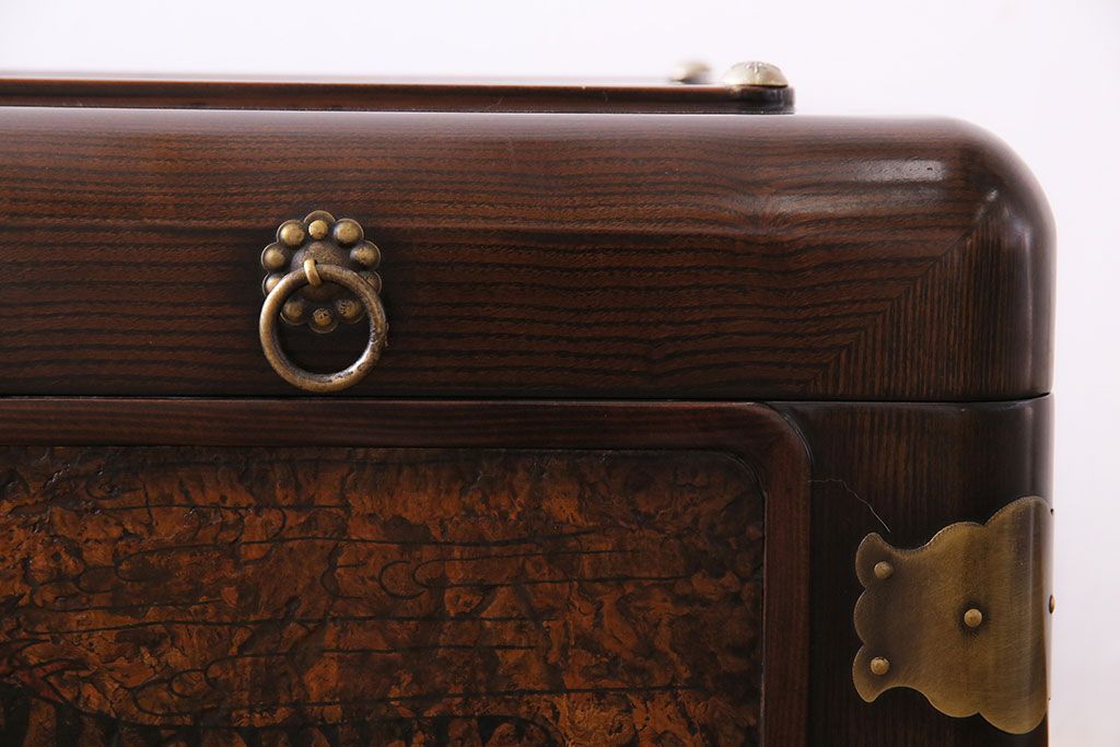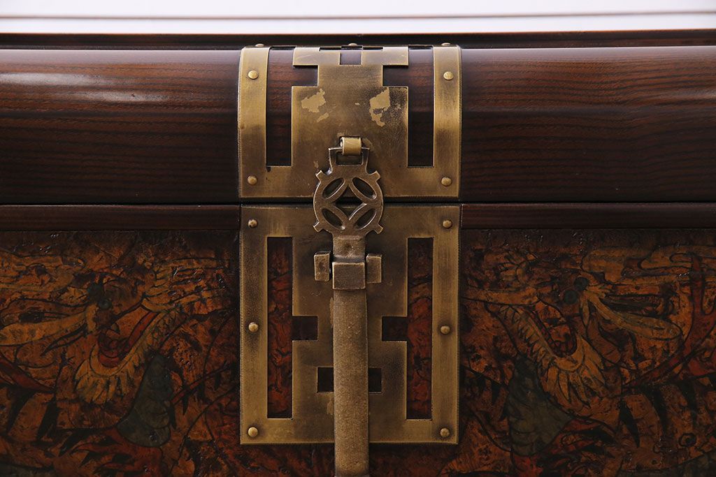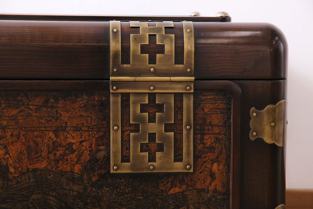 中古 海外製 ニレ材 重厚な佇まいが目を引くトランクケース(衣装箱、銭箱)(定価約20万円)