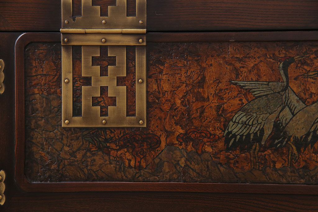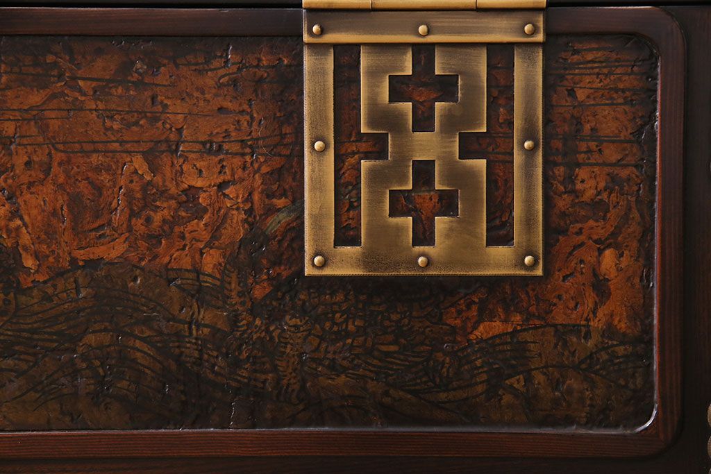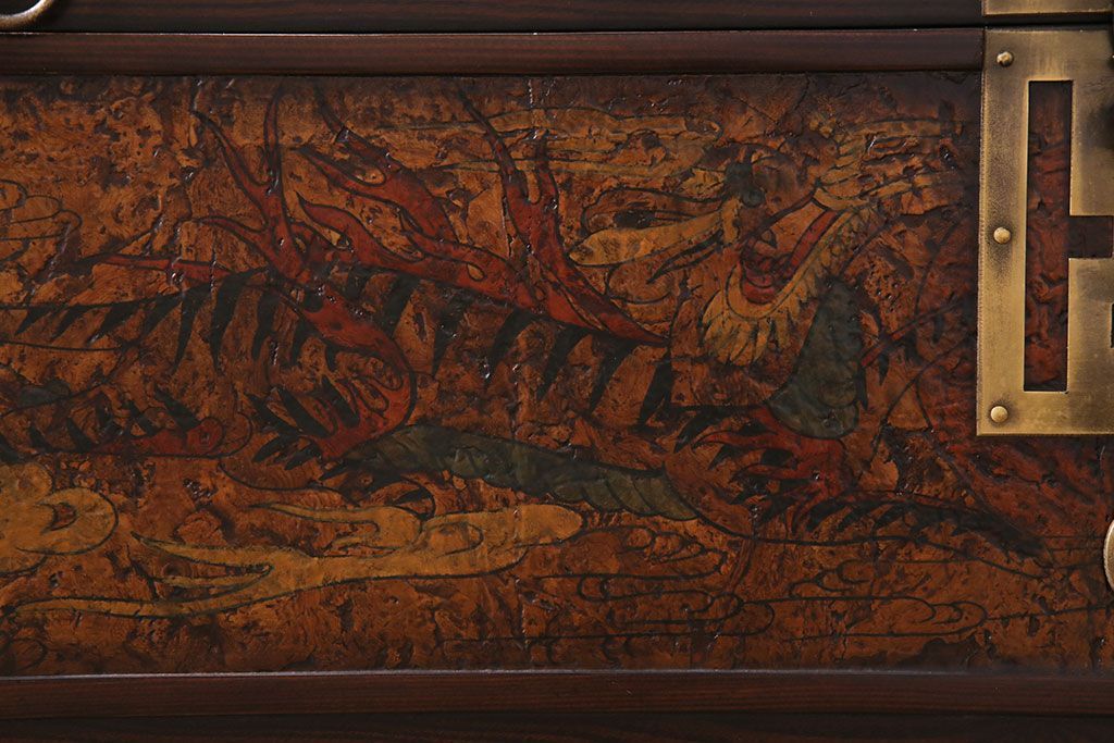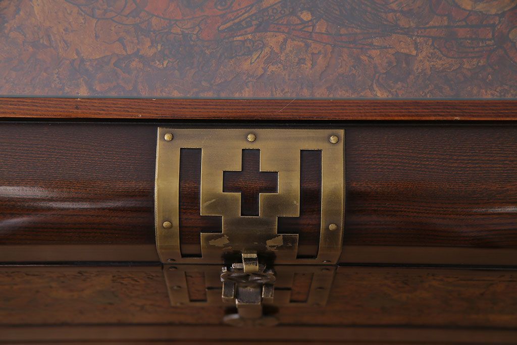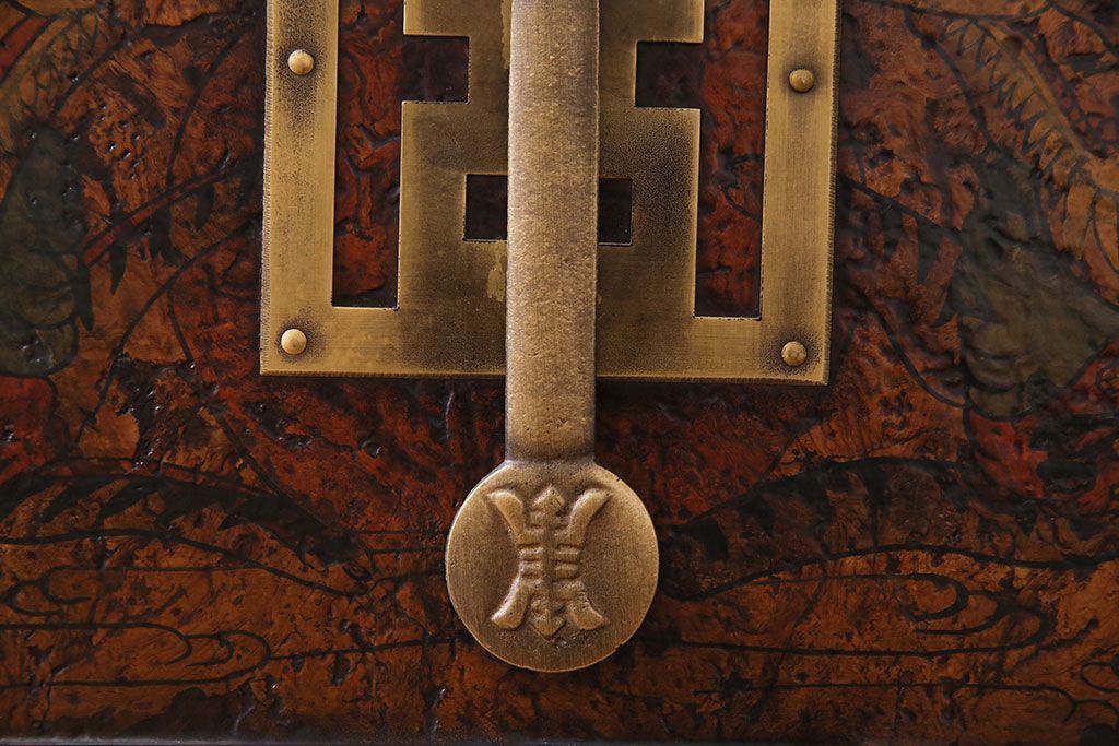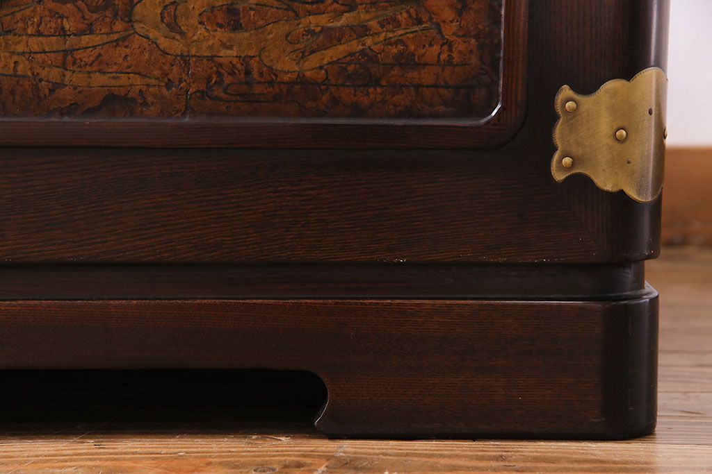 中古 海外製 ニレ材 重厚な佇まいが目を引くトランクケース(衣装箱、銭箱)(定価約20万円)