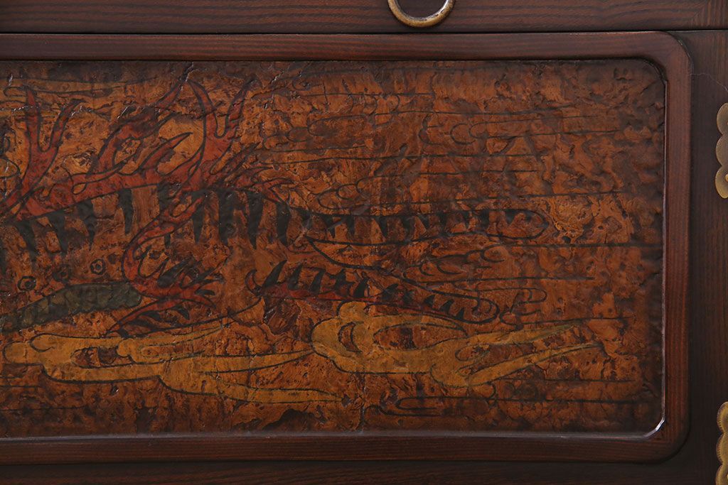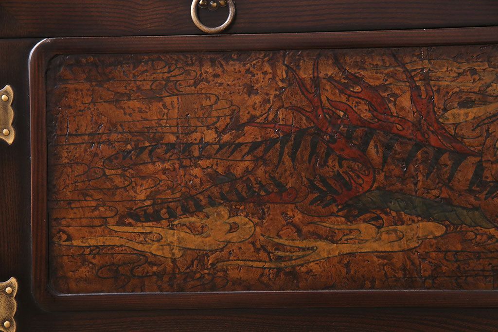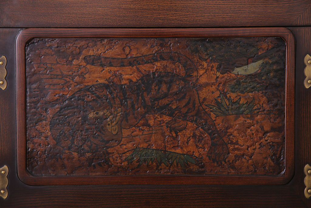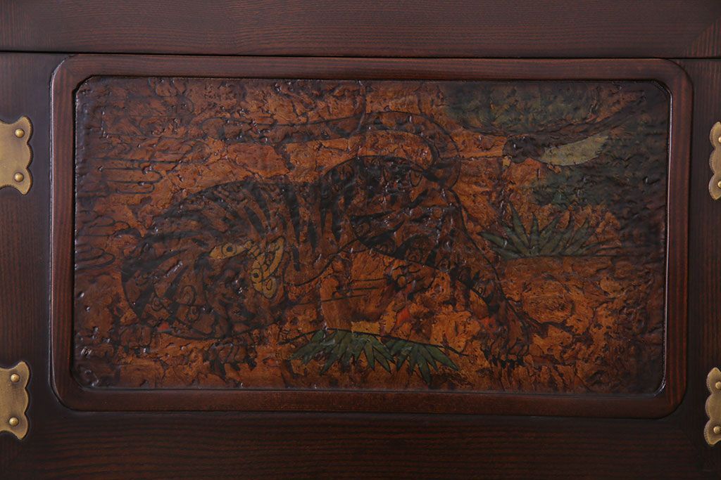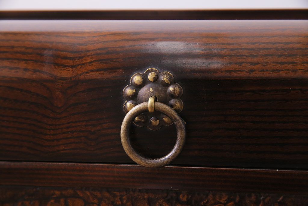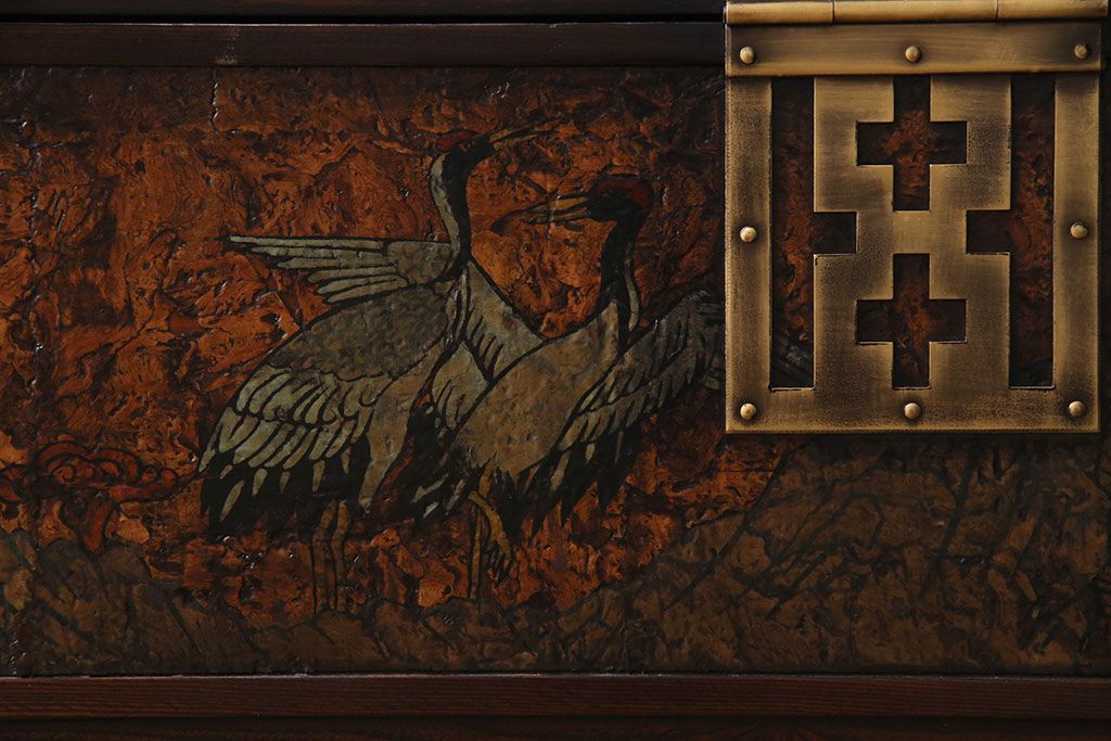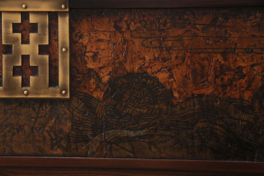 中古 海外製 ニレ材 重厚な佇まいが目を引くトランクケース(衣装箱、銭箱)(定価約20万円)