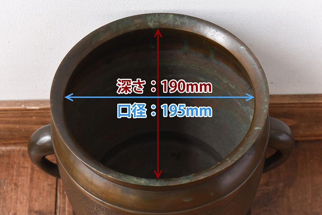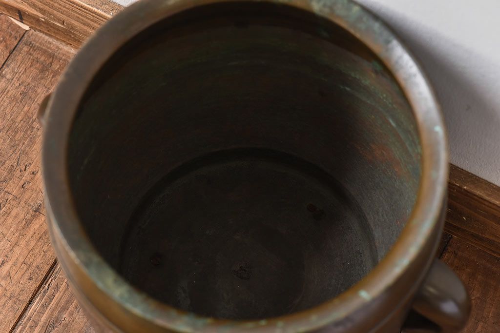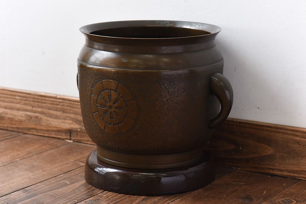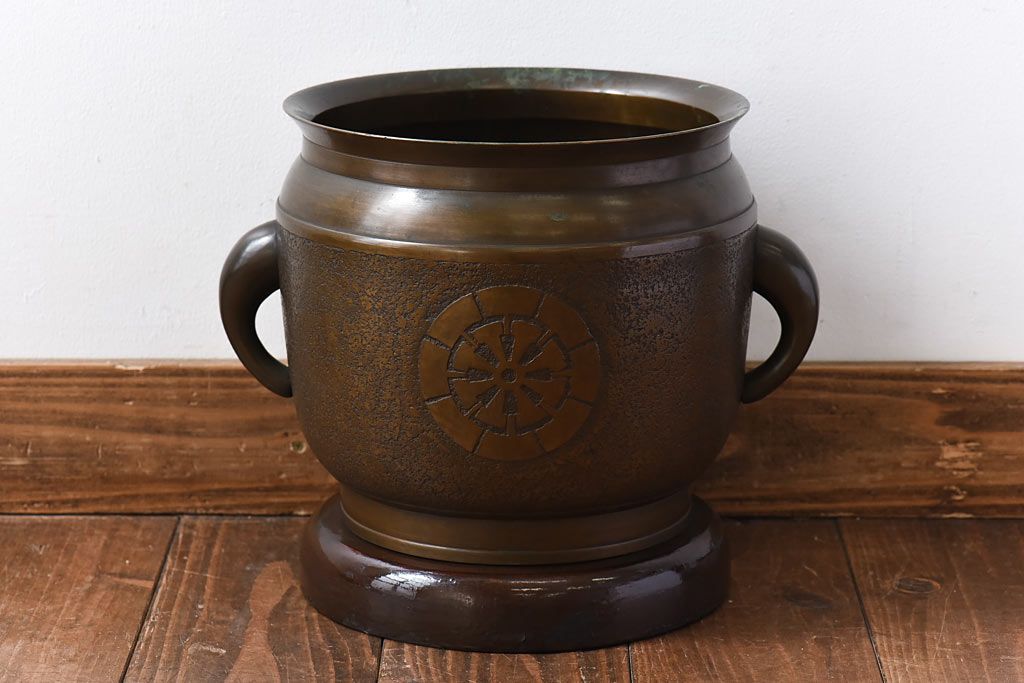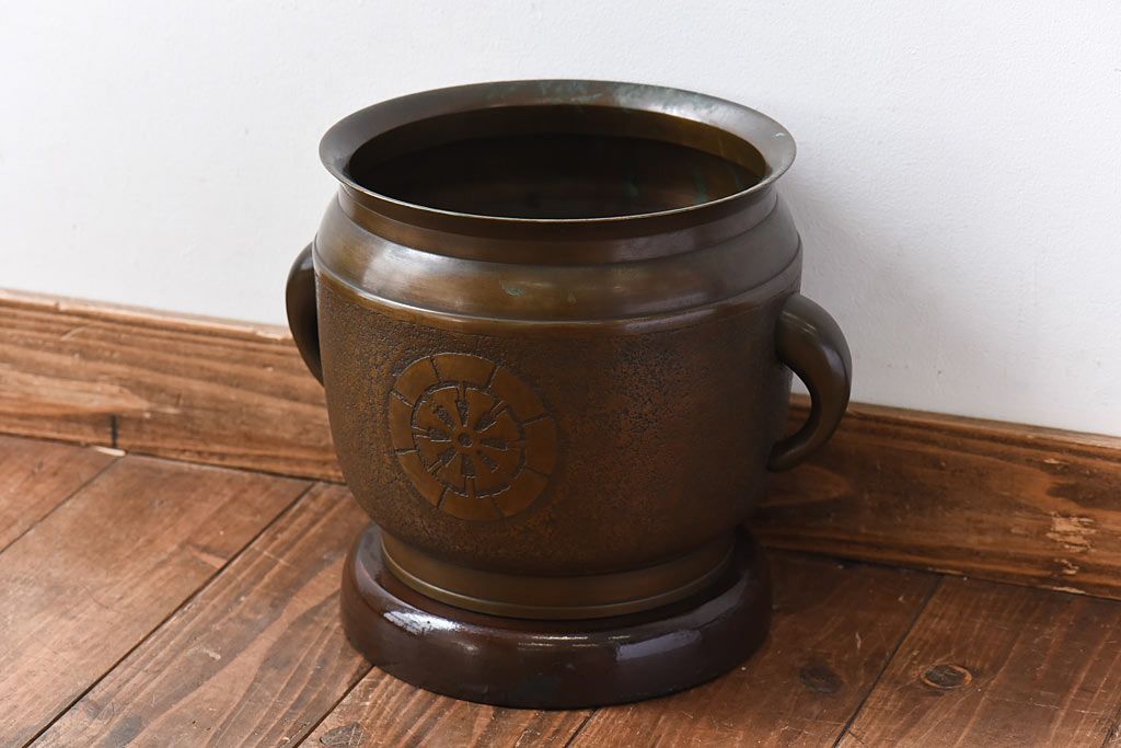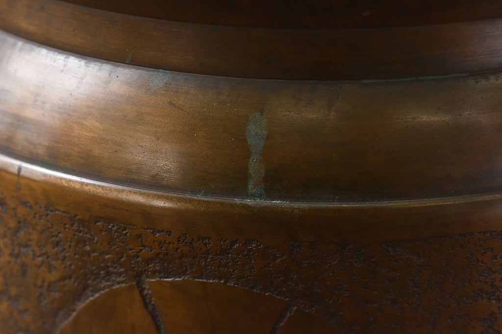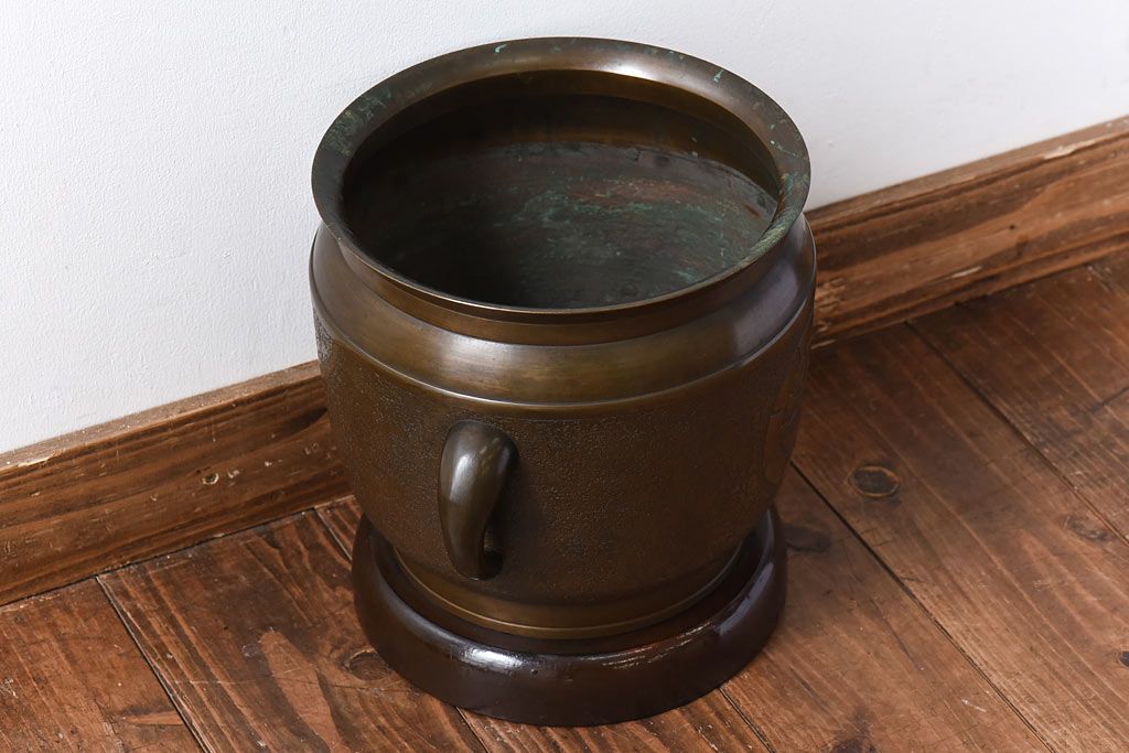 骨董・美術品 > アンティーク雑貨 骨董・古民具 明治大正期 上手物 源氏車紋様の耳付銅火鉢(鉢カバー、ディスプレイ)(2)(R-028637)