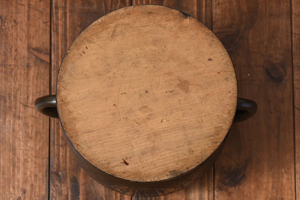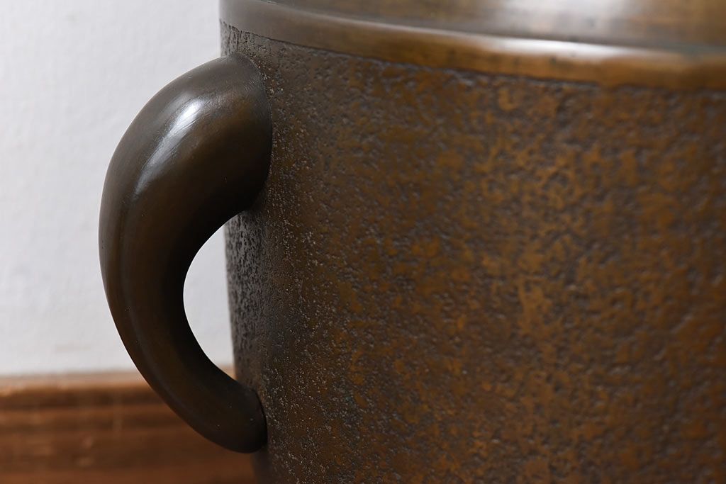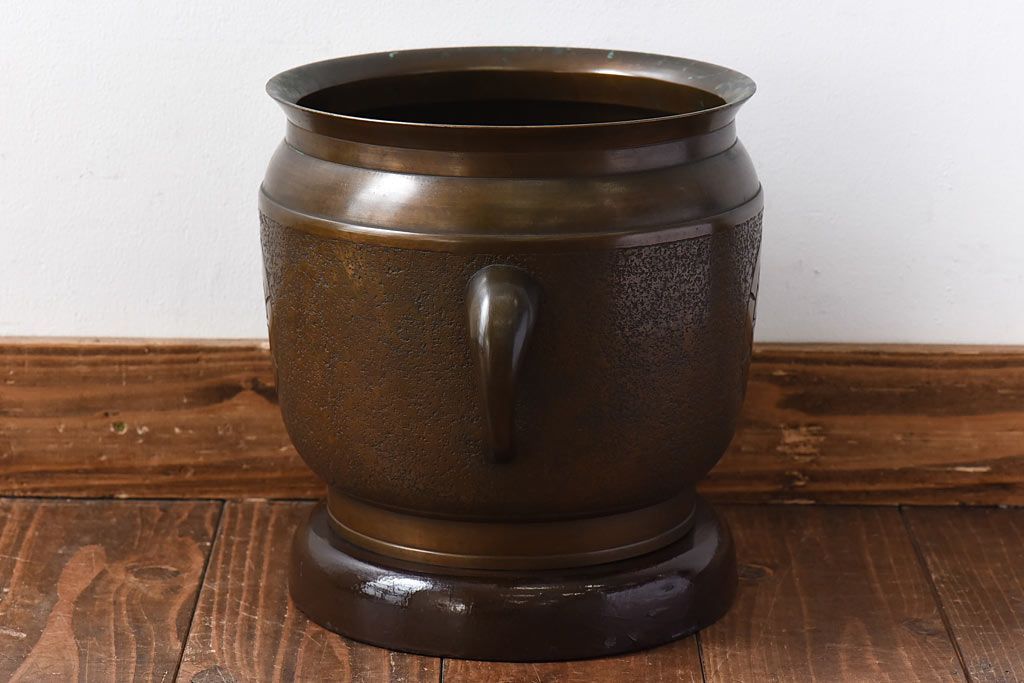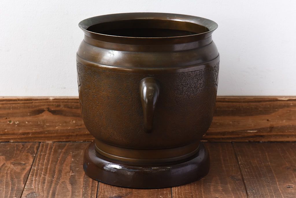 アンティーク雑貨 骨董・古民具 明治大正期 上手物 源氏車紋様の耳付銅火鉢(鉢カバー、ディスプレイ)(2)(R-028637)です。